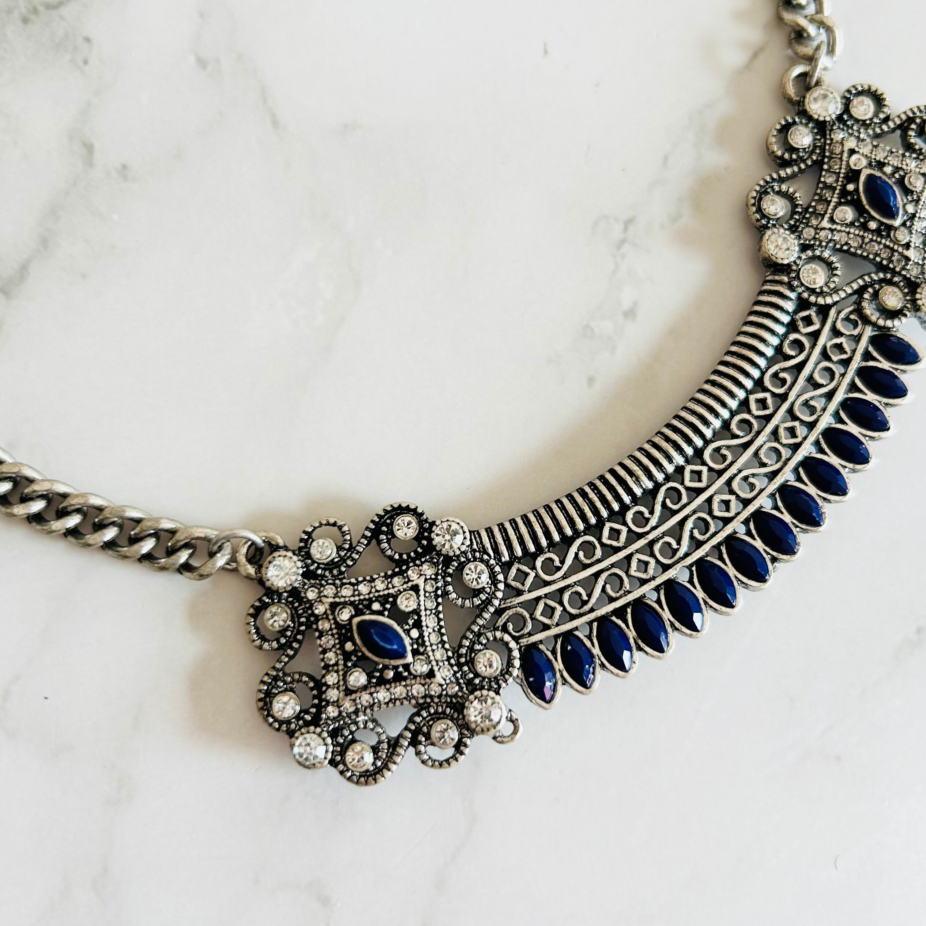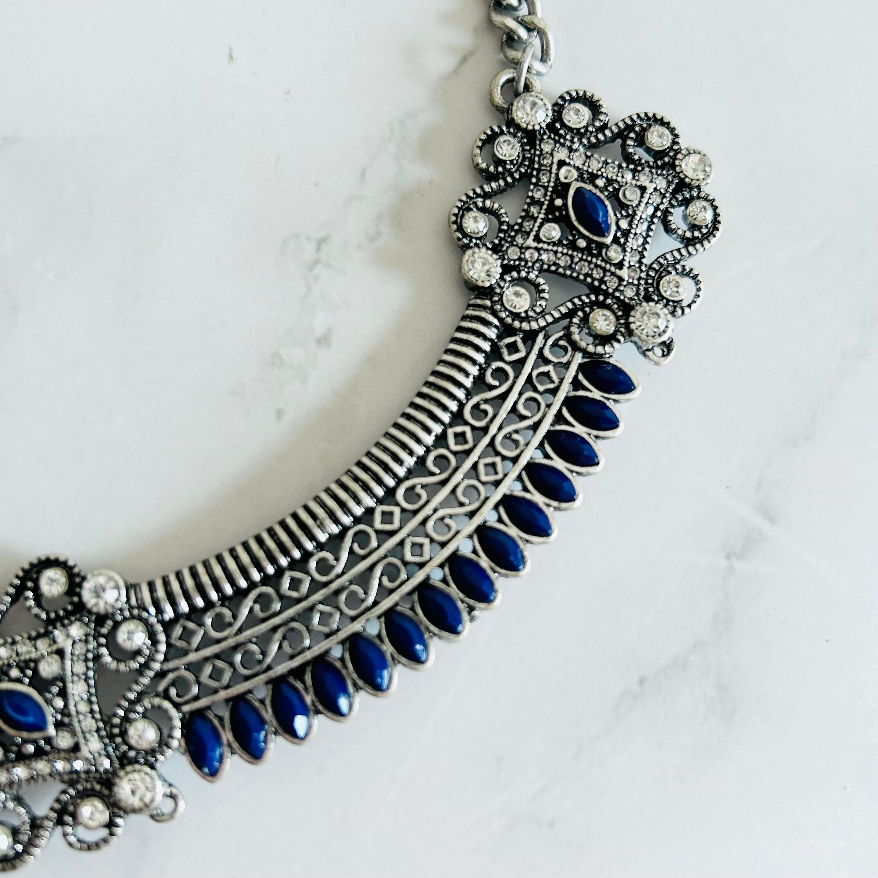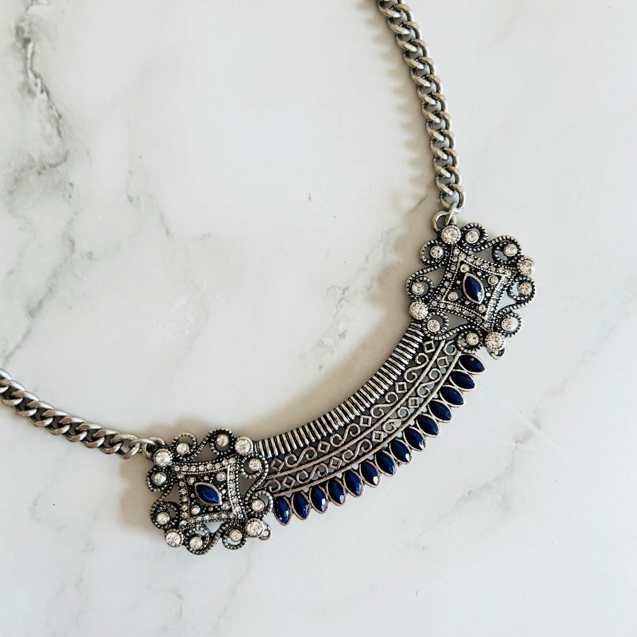 ネイビー✖️アンティークシルバーカラーのネックレスです。