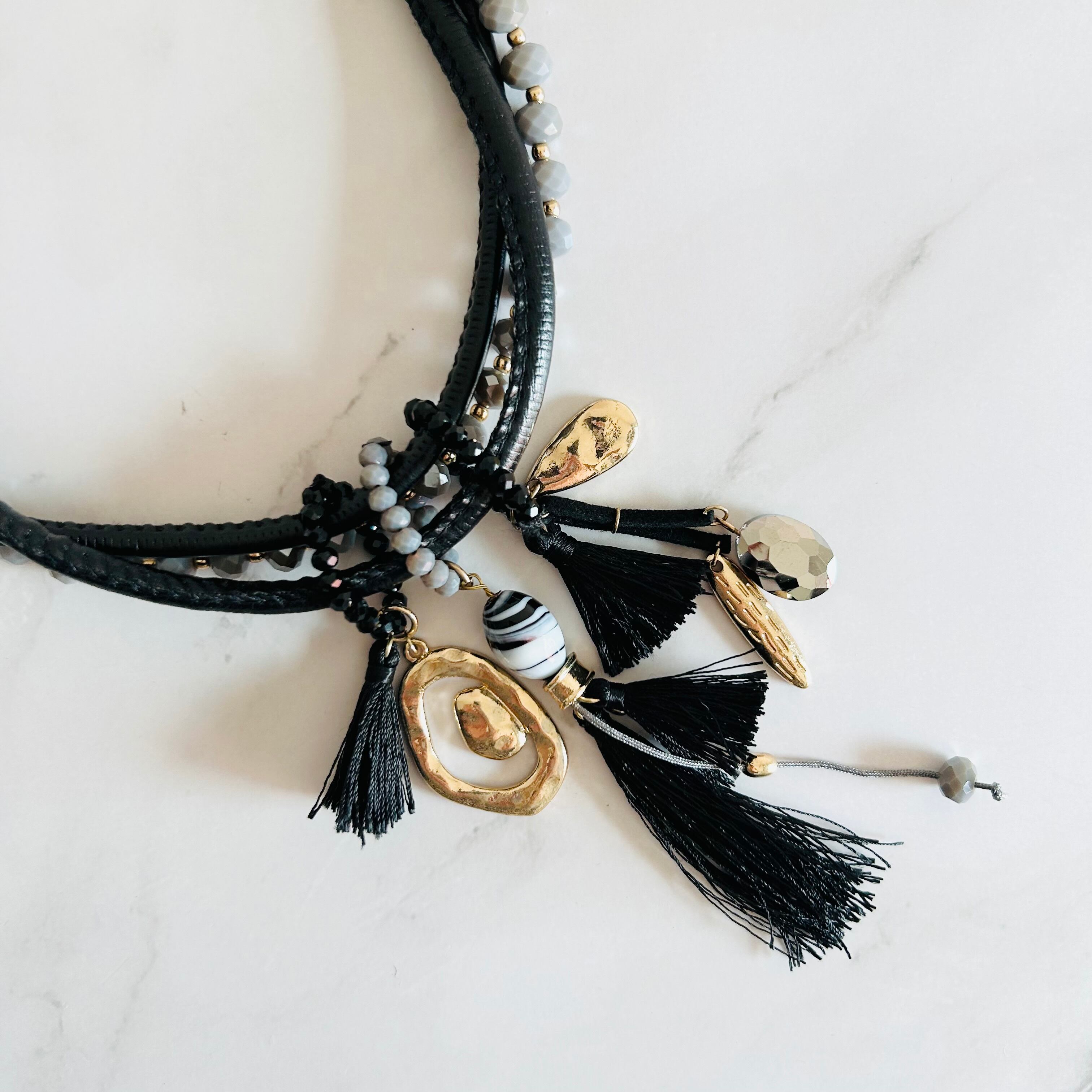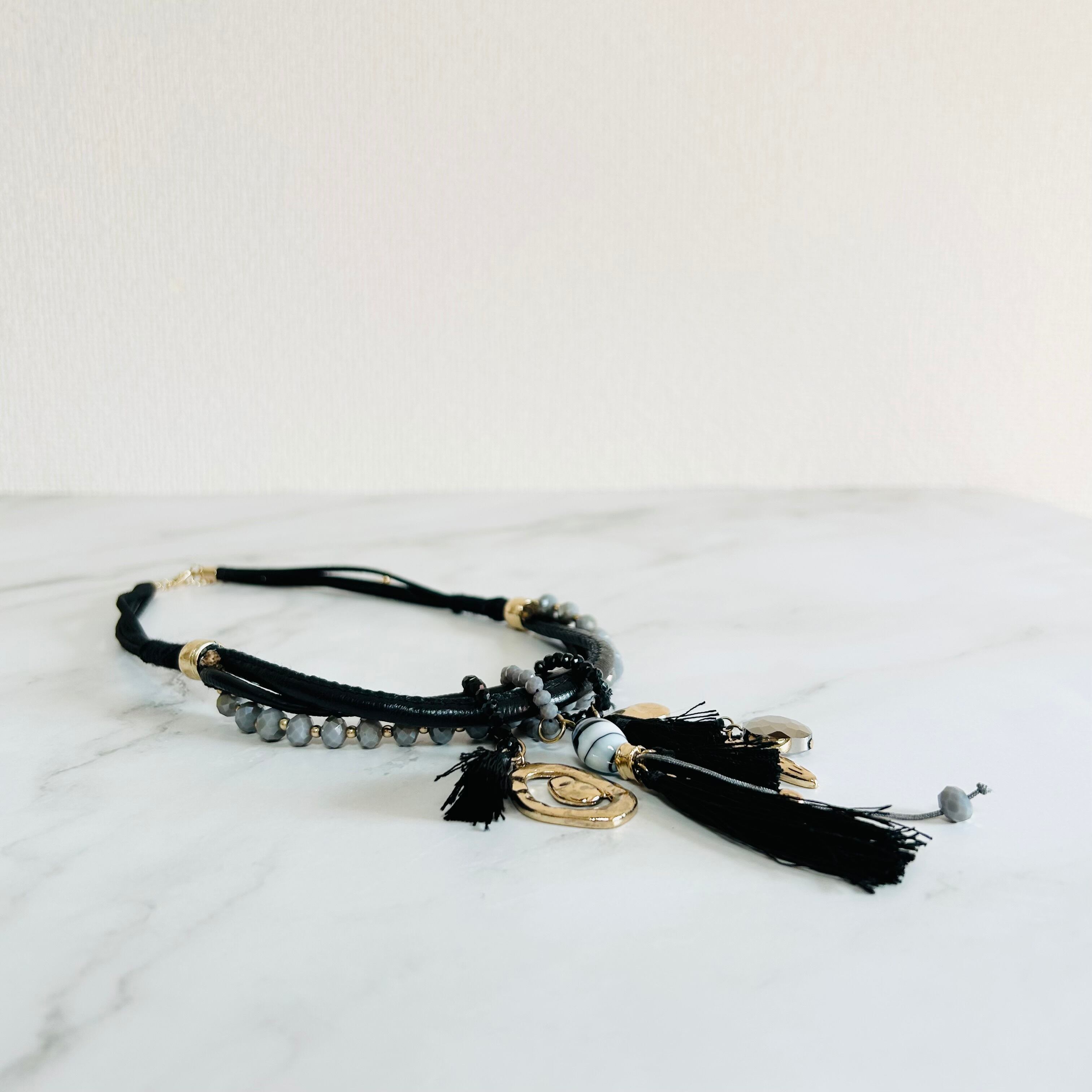 グレー、シルバー、ゴールド✖️ブラックカラーのネックレスです。