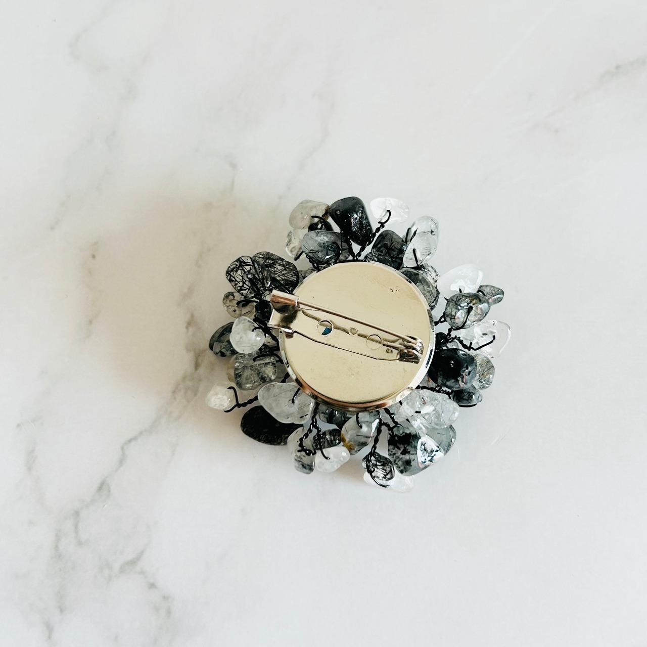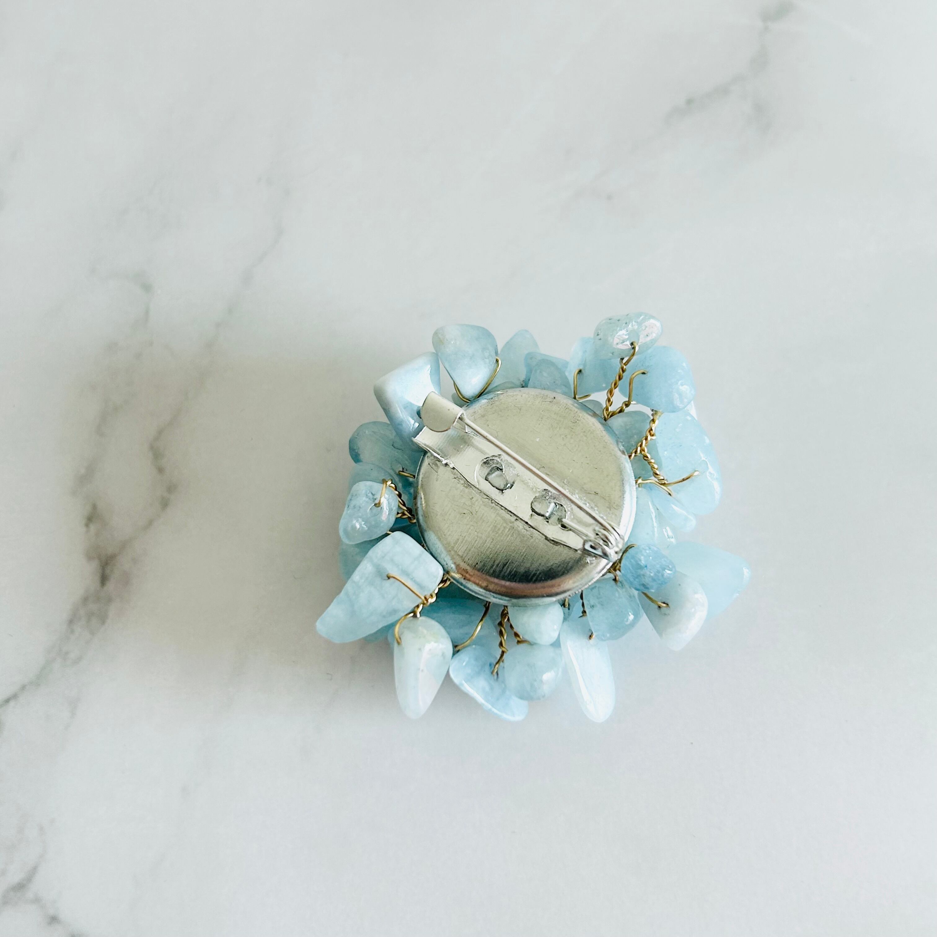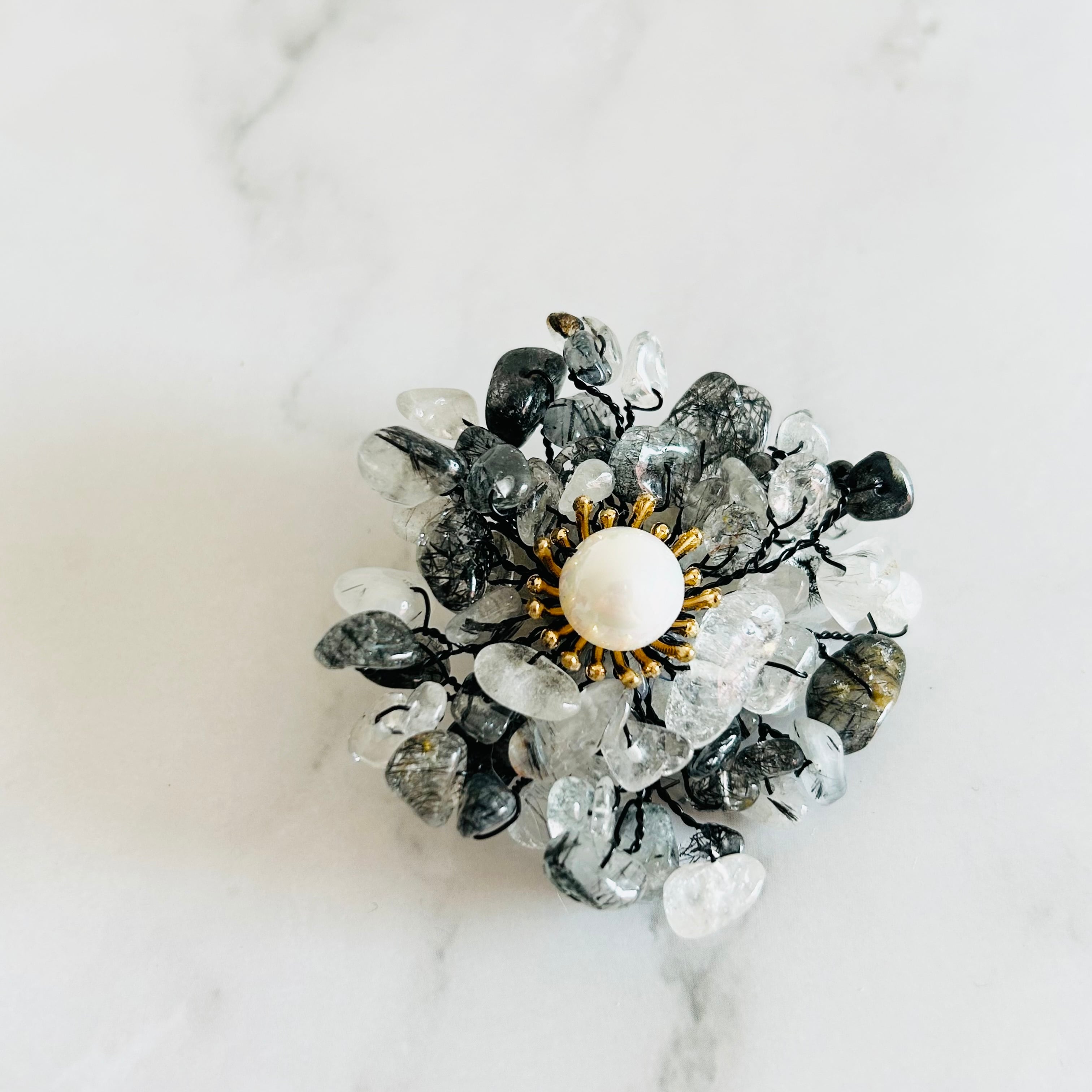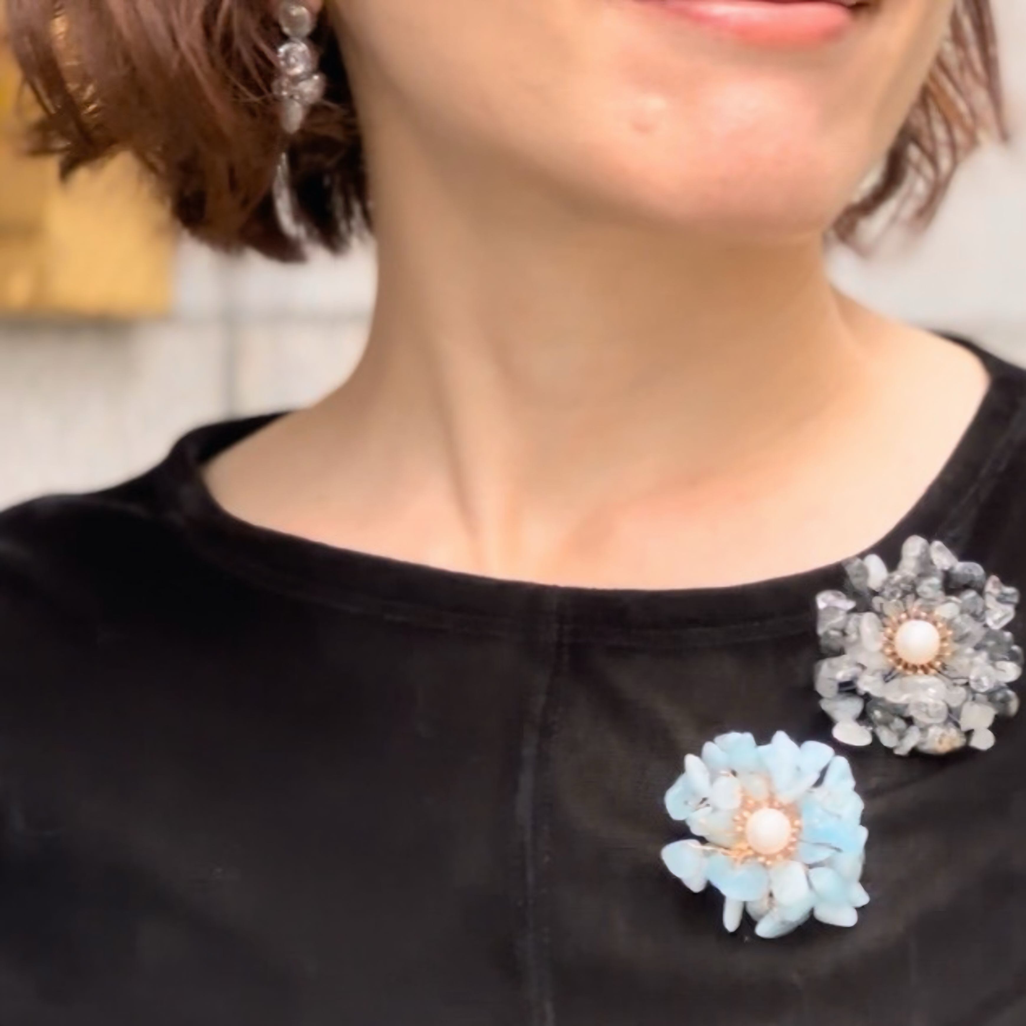 透明感のある天然石を使用し、ワイヤーで華やかなフラワーモチーフにしたデザインです。