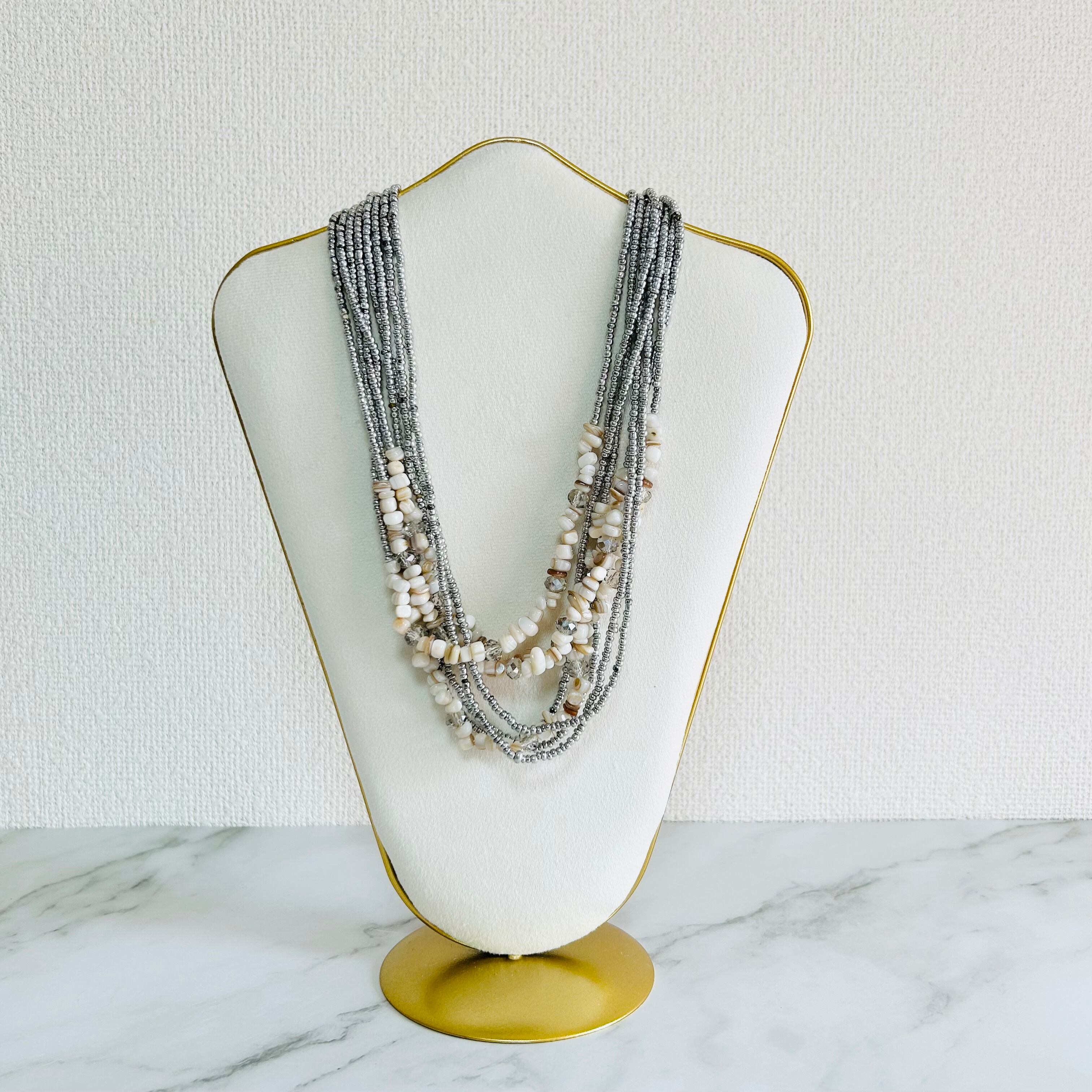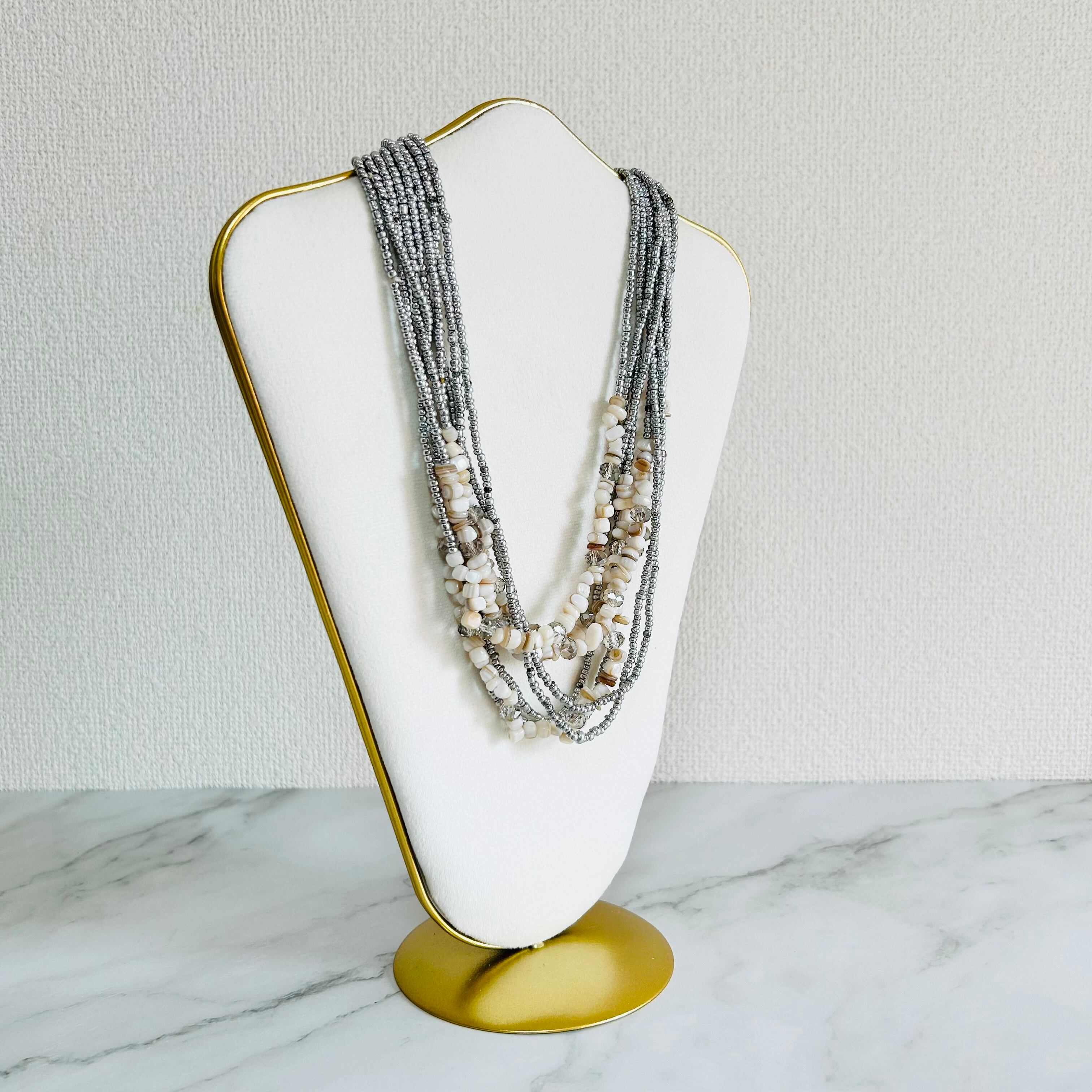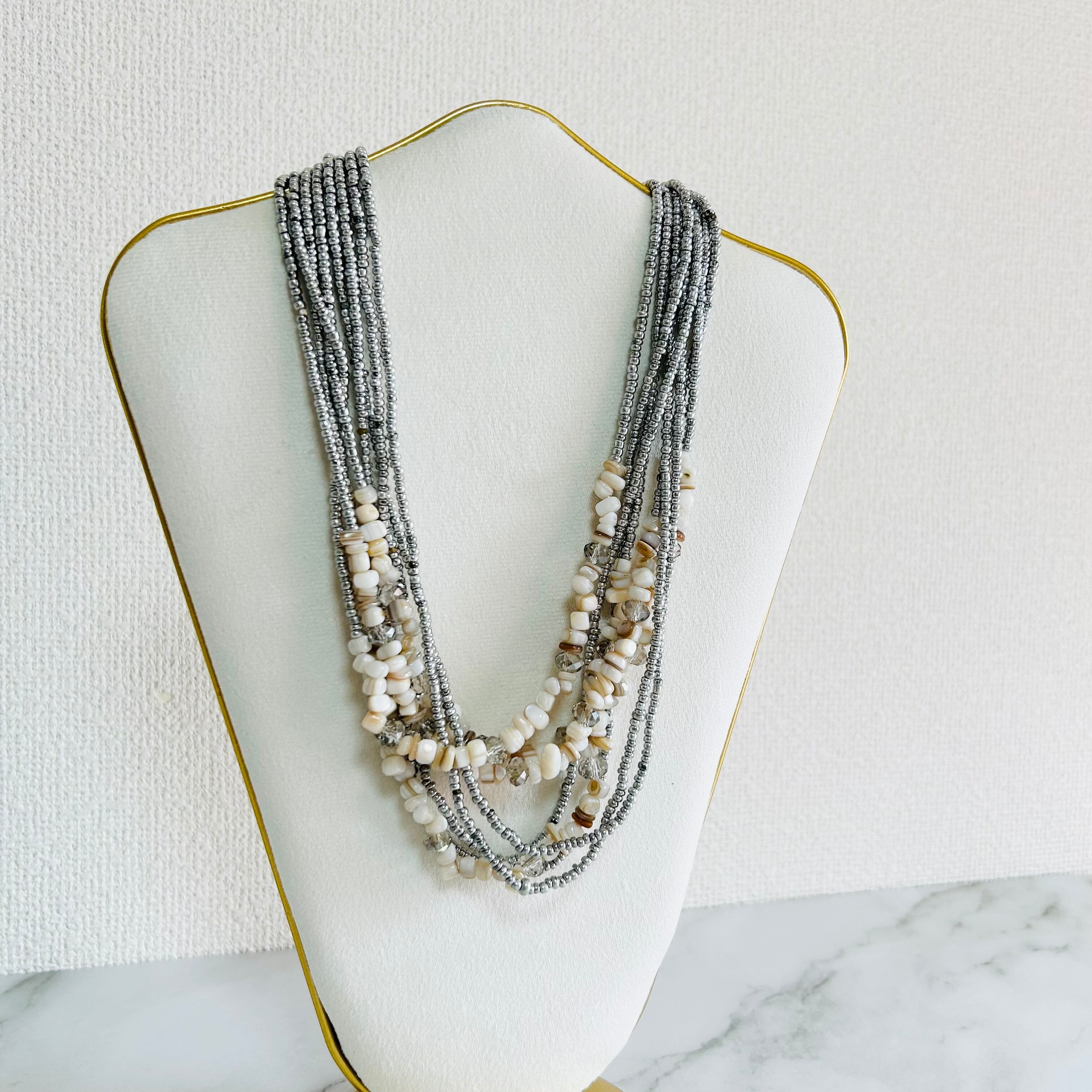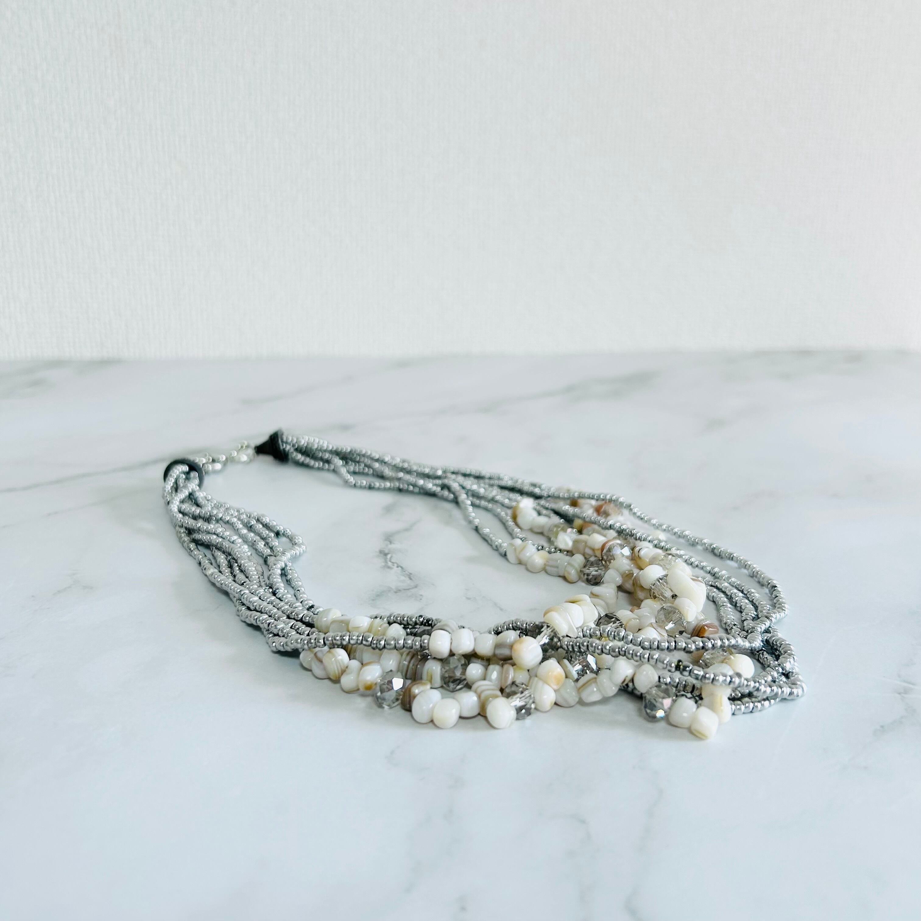 ナチュラルホワイト、メタリックシルバーカラー✖️アンティークシルバーカラーのネックレスです。