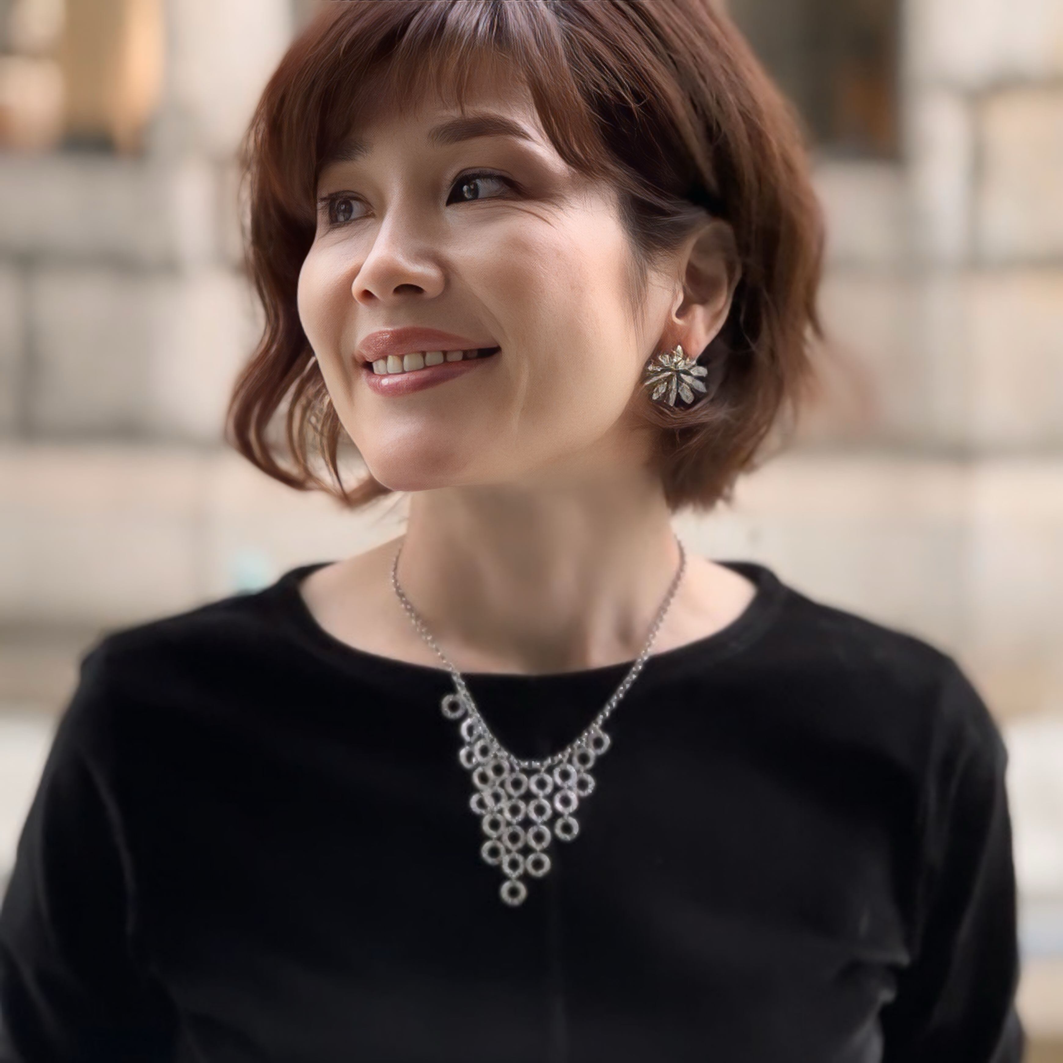 光の当たる角度でさまざまな表情に輝くオパール調の色味がなんとも言えず美しく、上品な華やかさを与えてくれます✨
