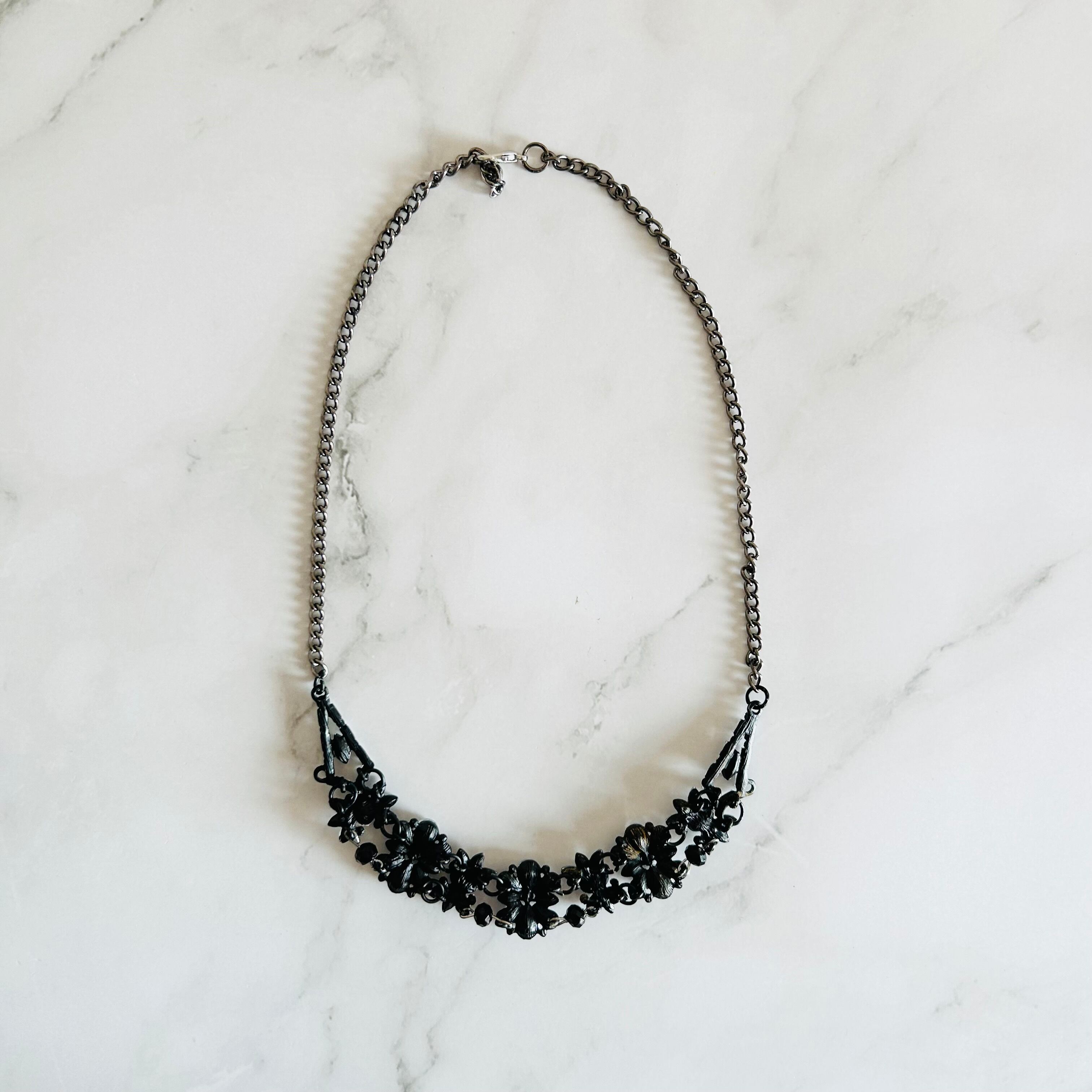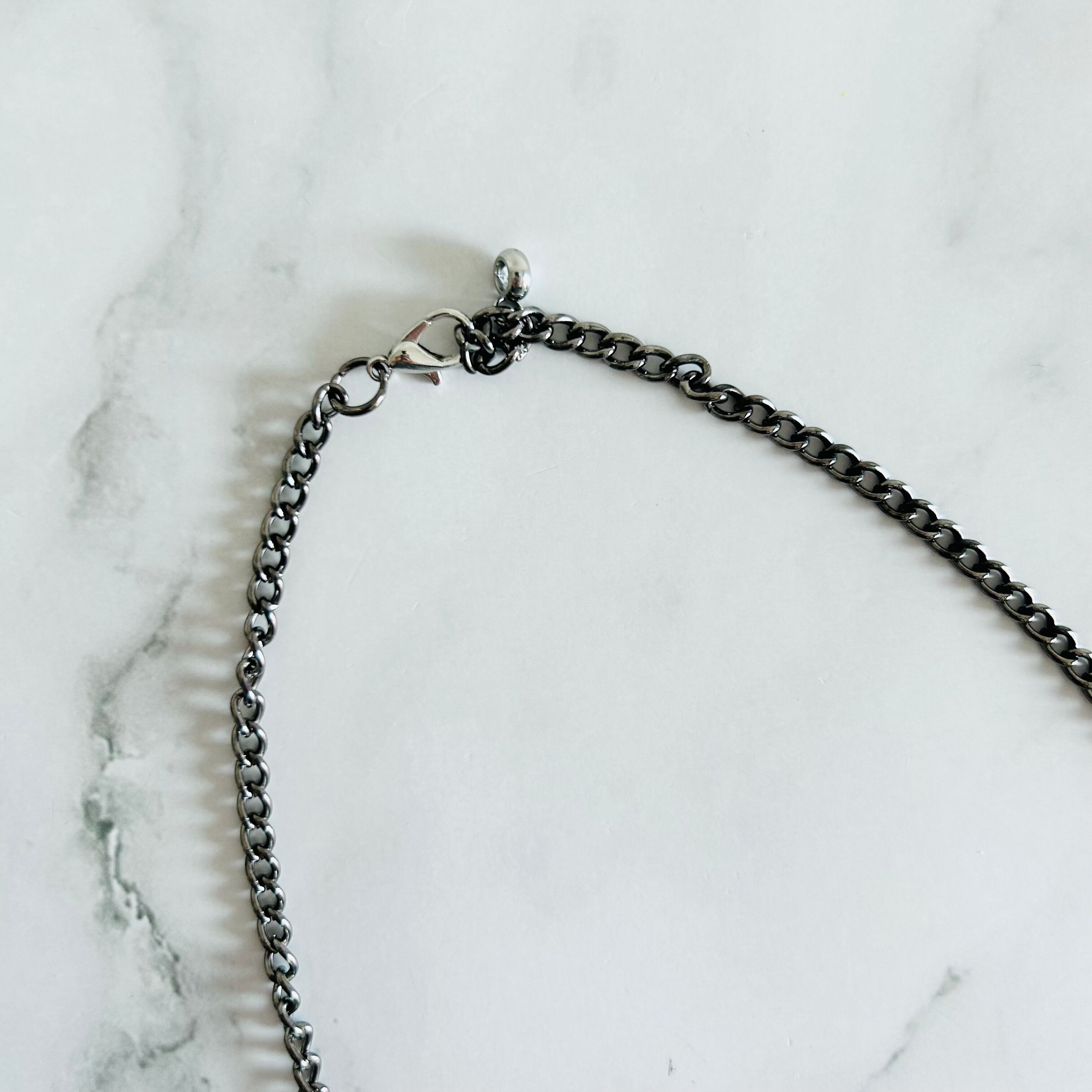 クリスタルカラー✖️ブラックメタルカラーのネックレスです。