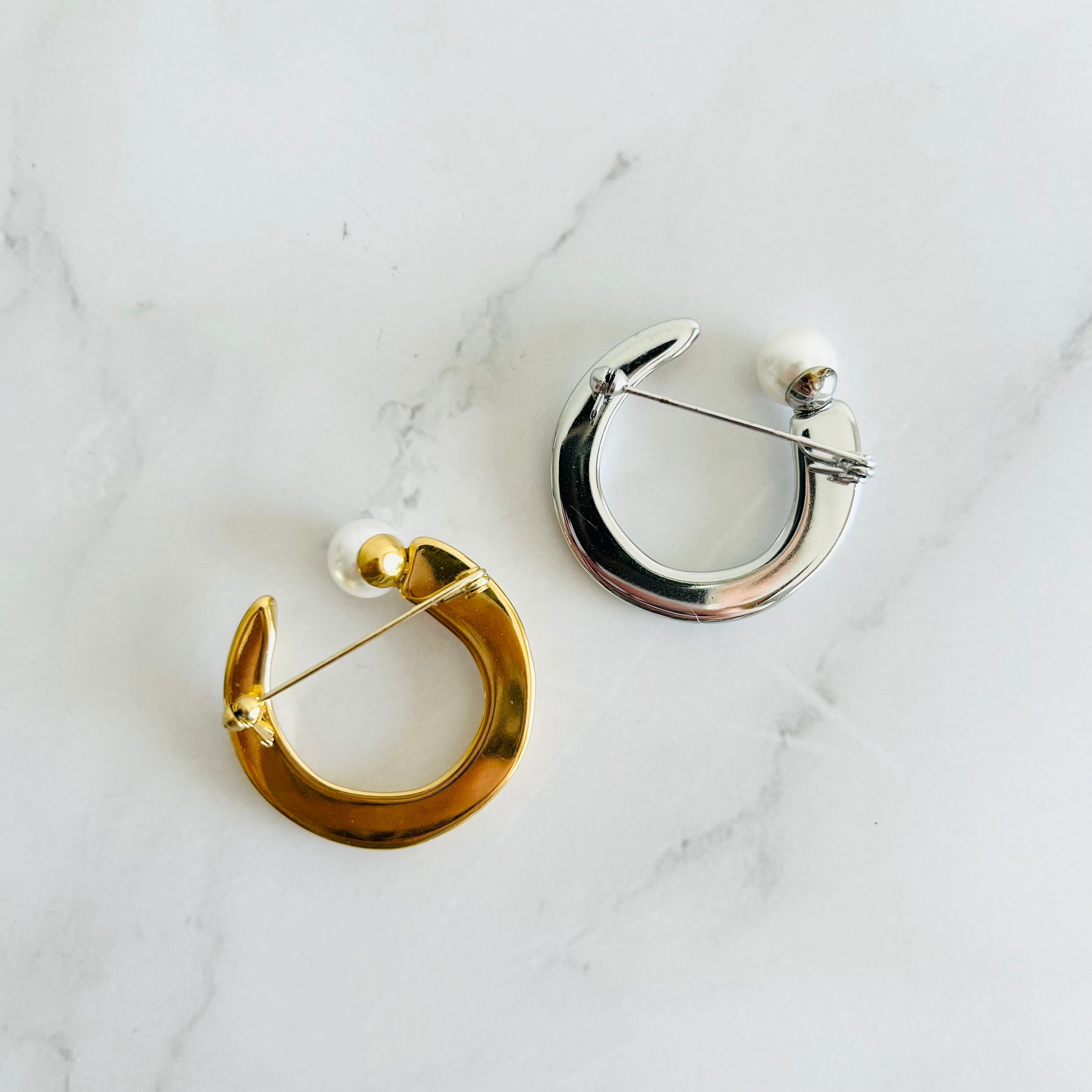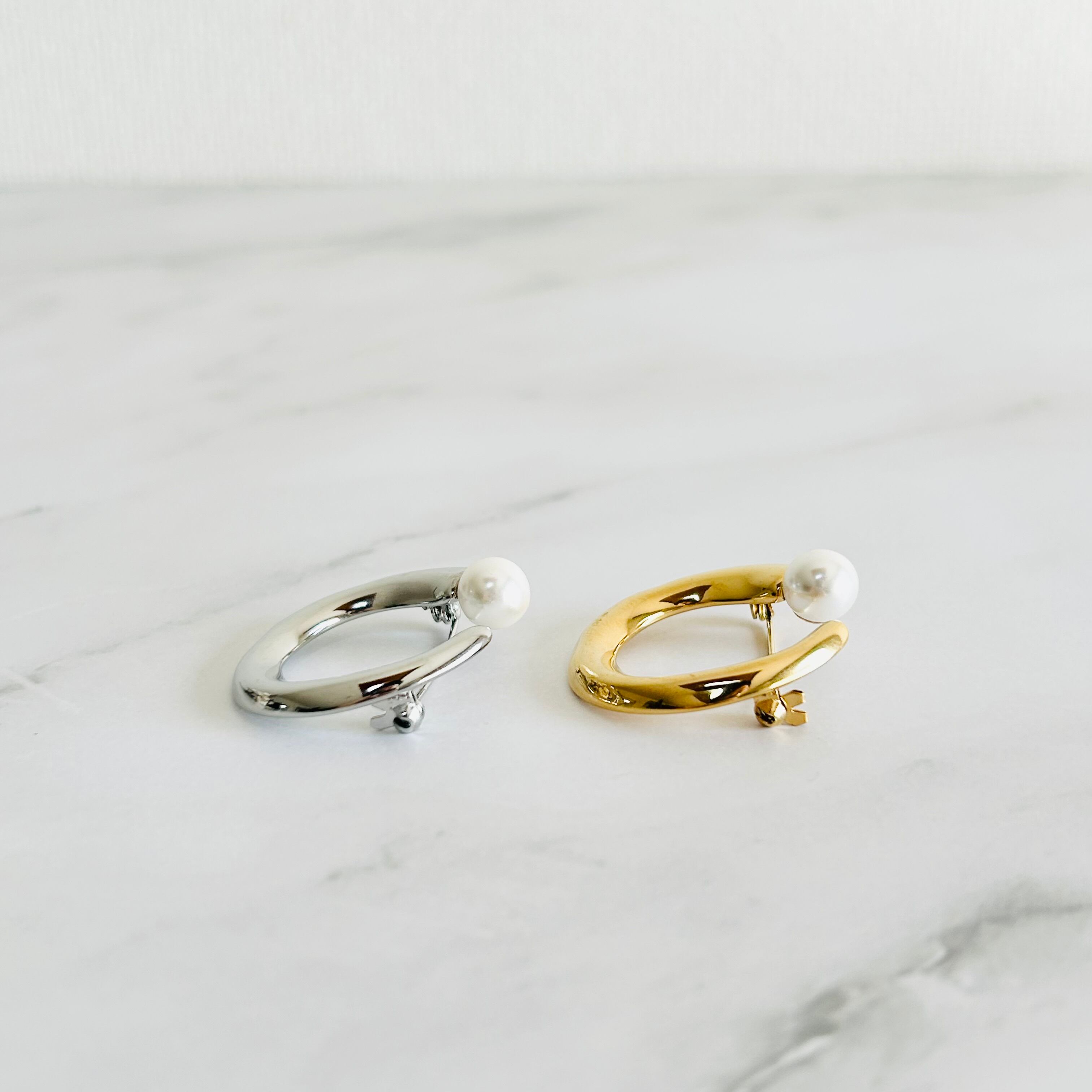 シンプルなU字のモチーフにパールをあしらったデザインです。