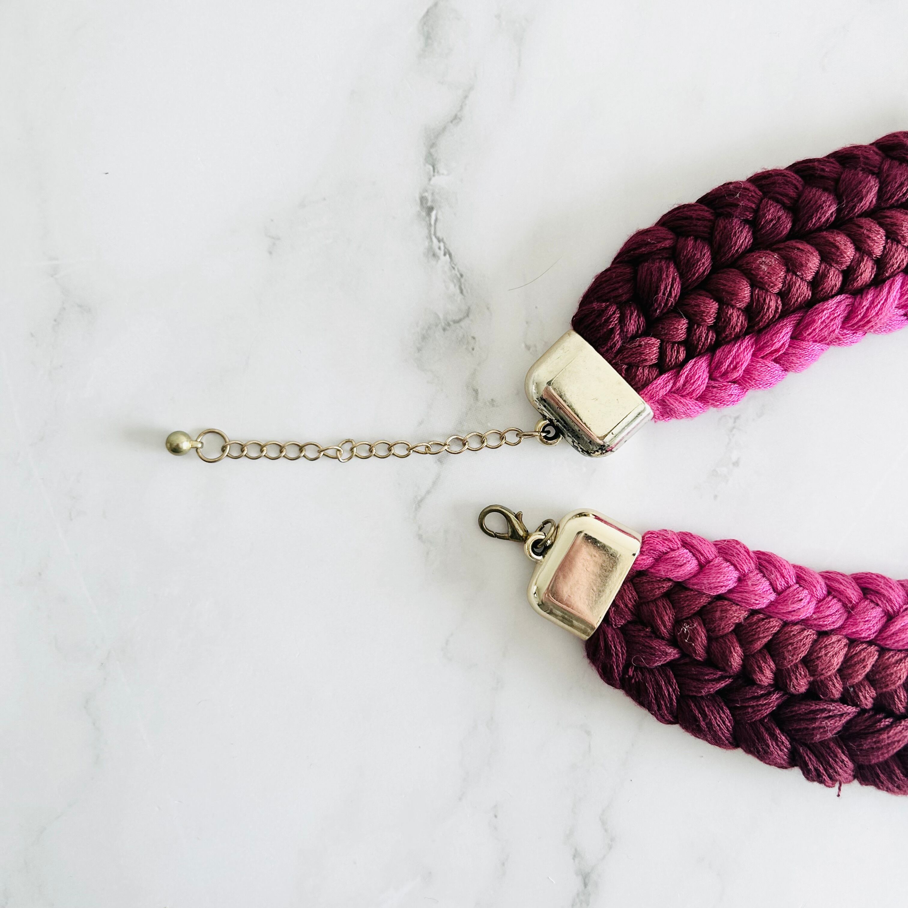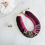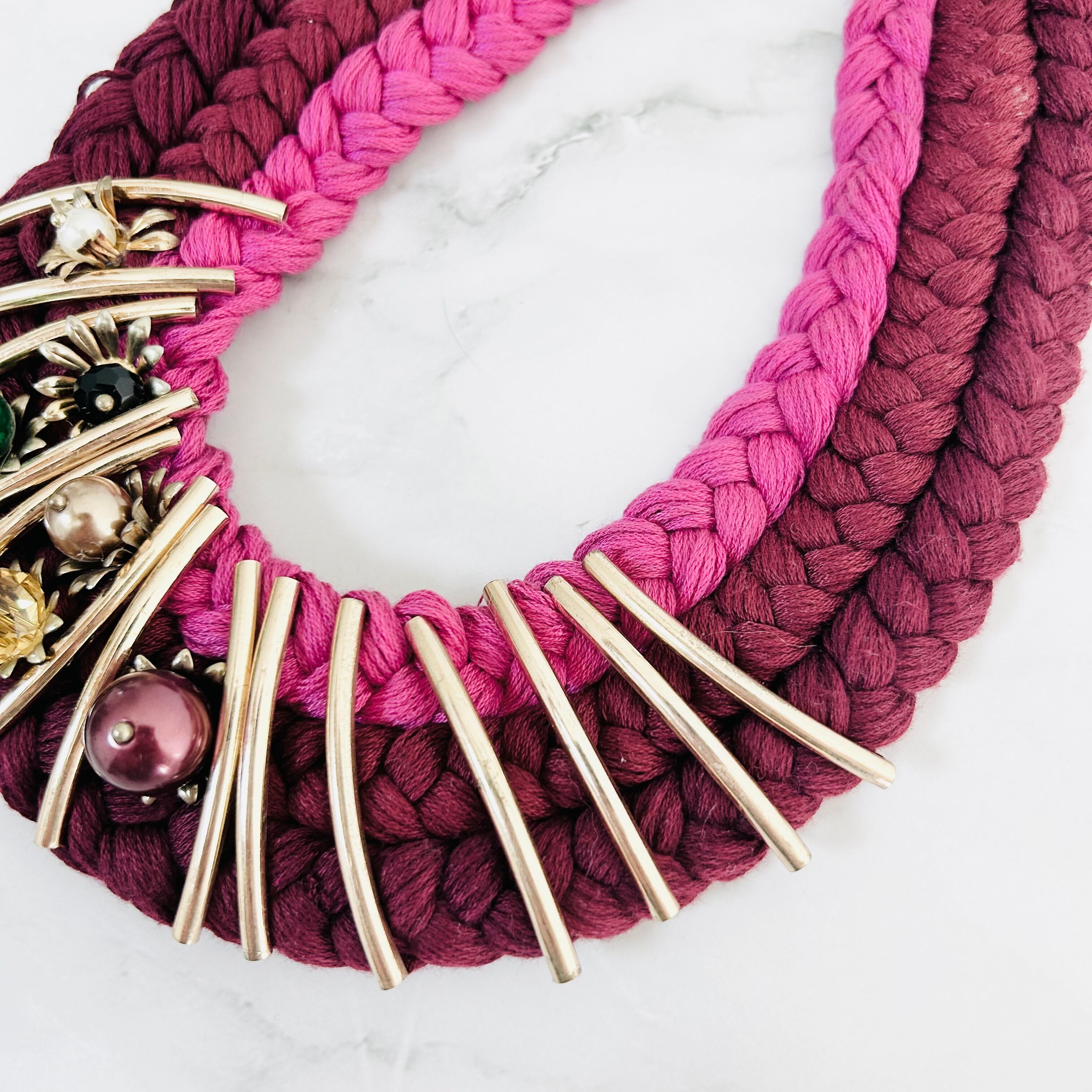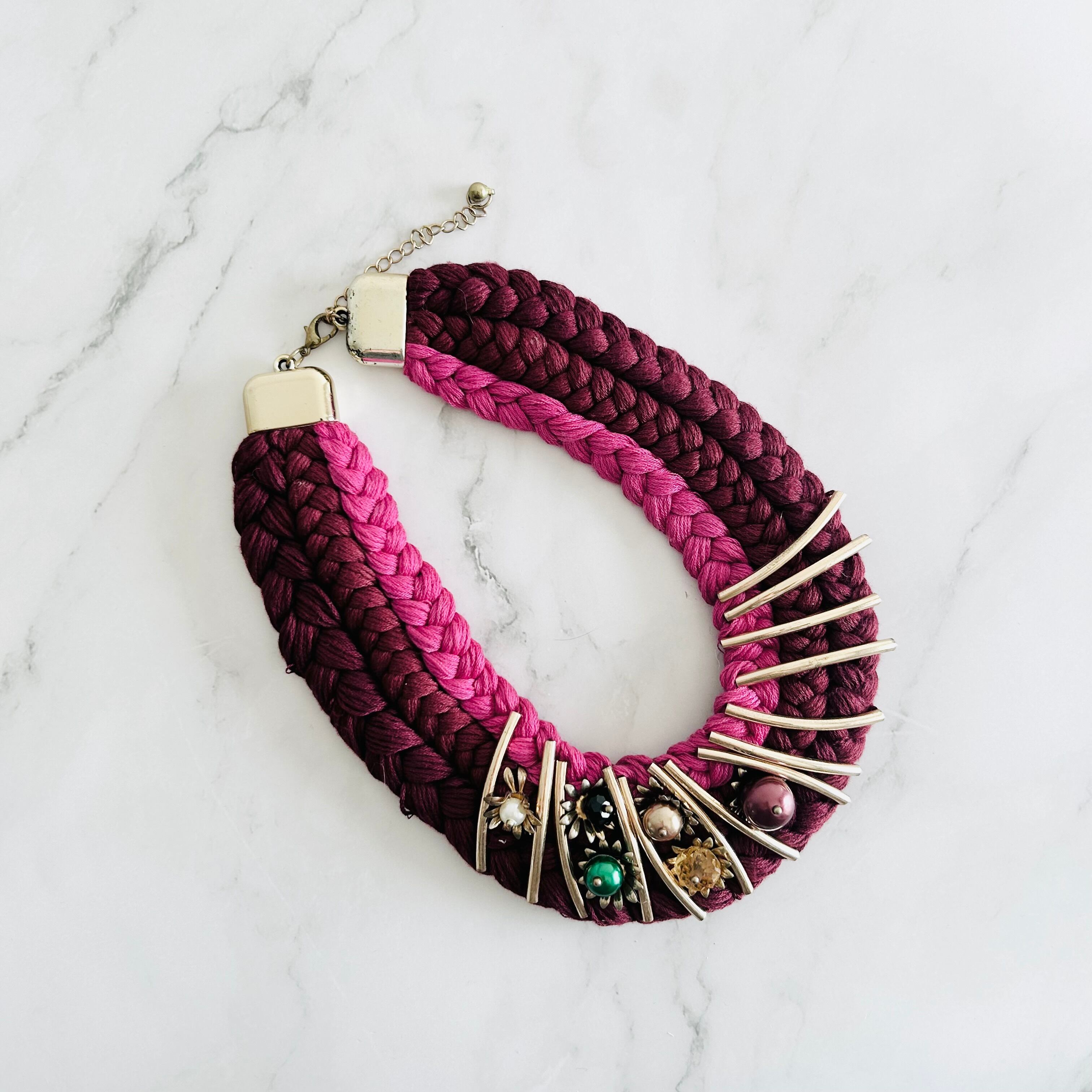 ワインレッド、ピンク+マルチカラー✖️アンティークゴールドカラーのネックレスです。