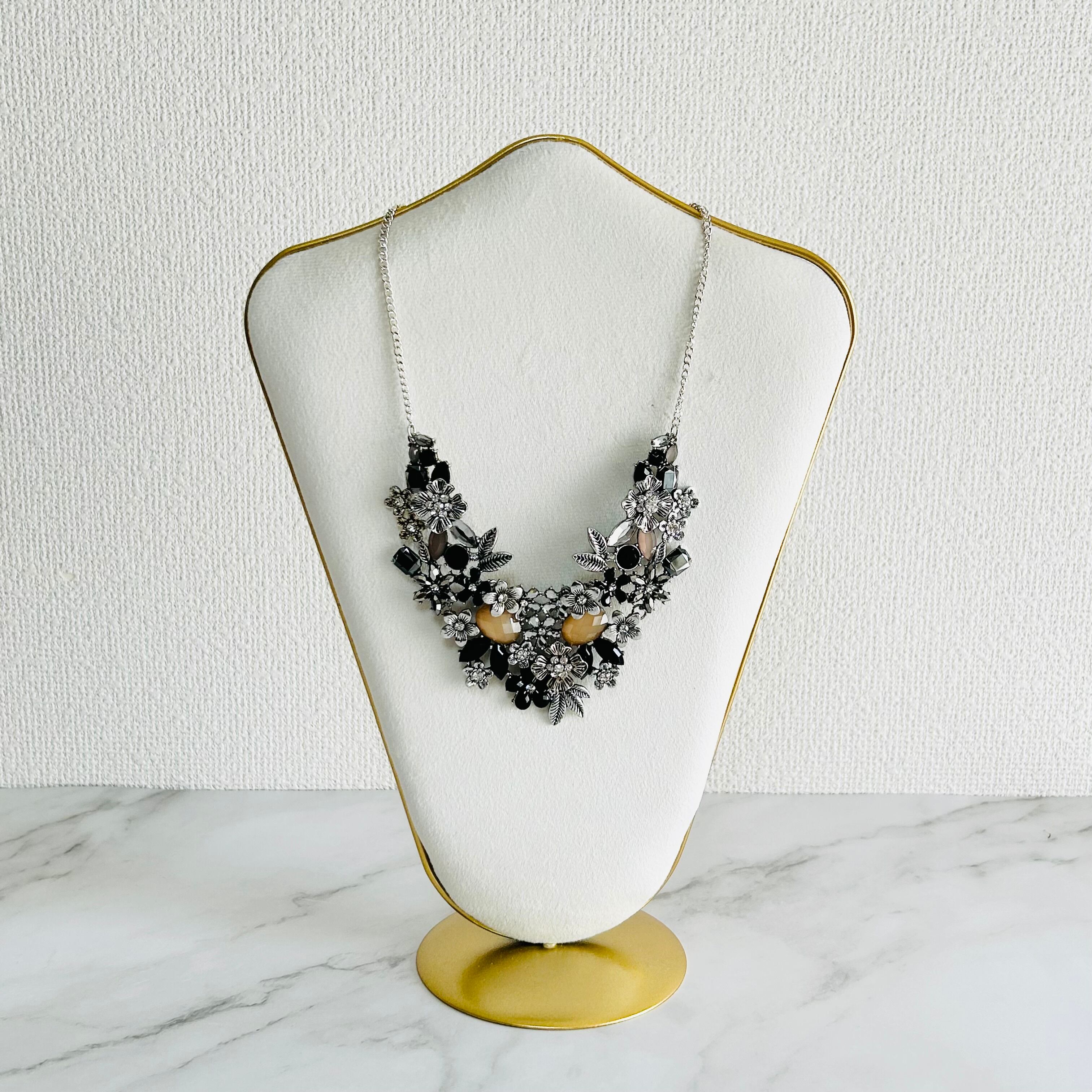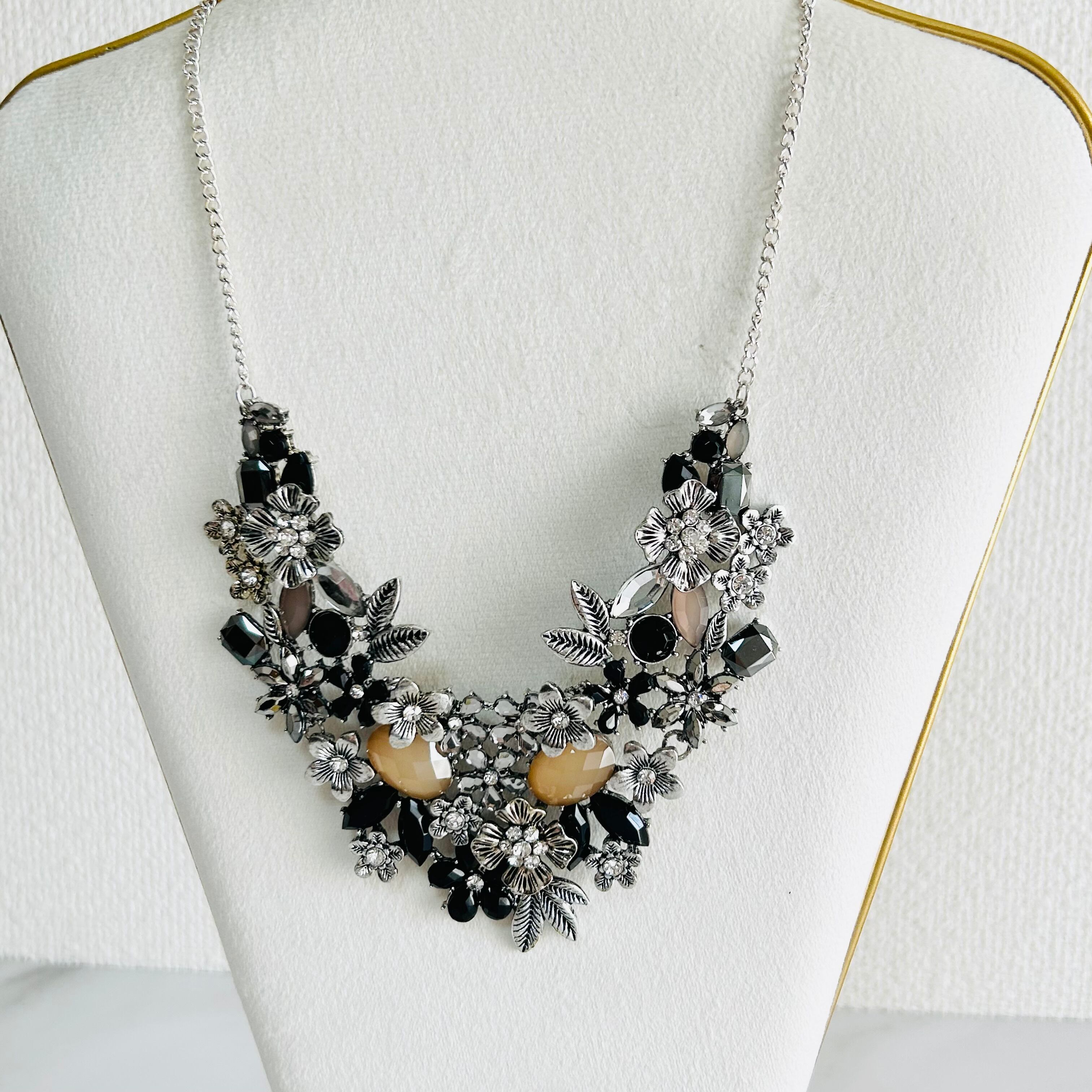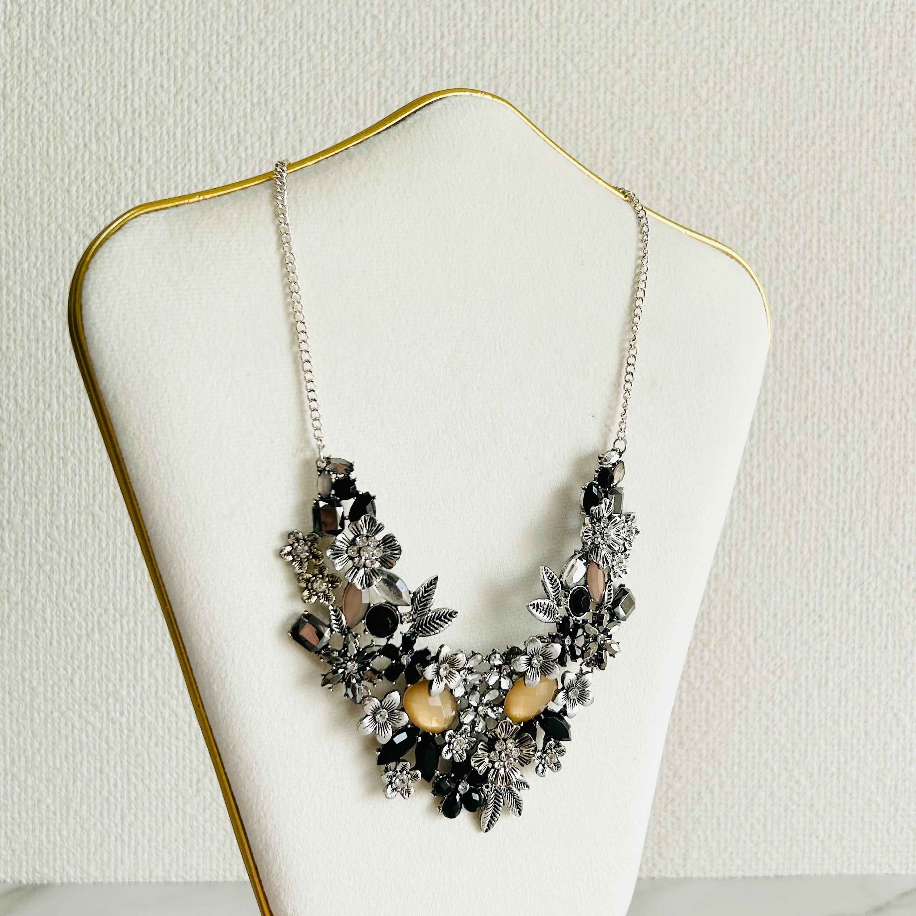 クリスタル、クリアベージュ、ブラックカラー✖️シルバーカラーのネックレスです。