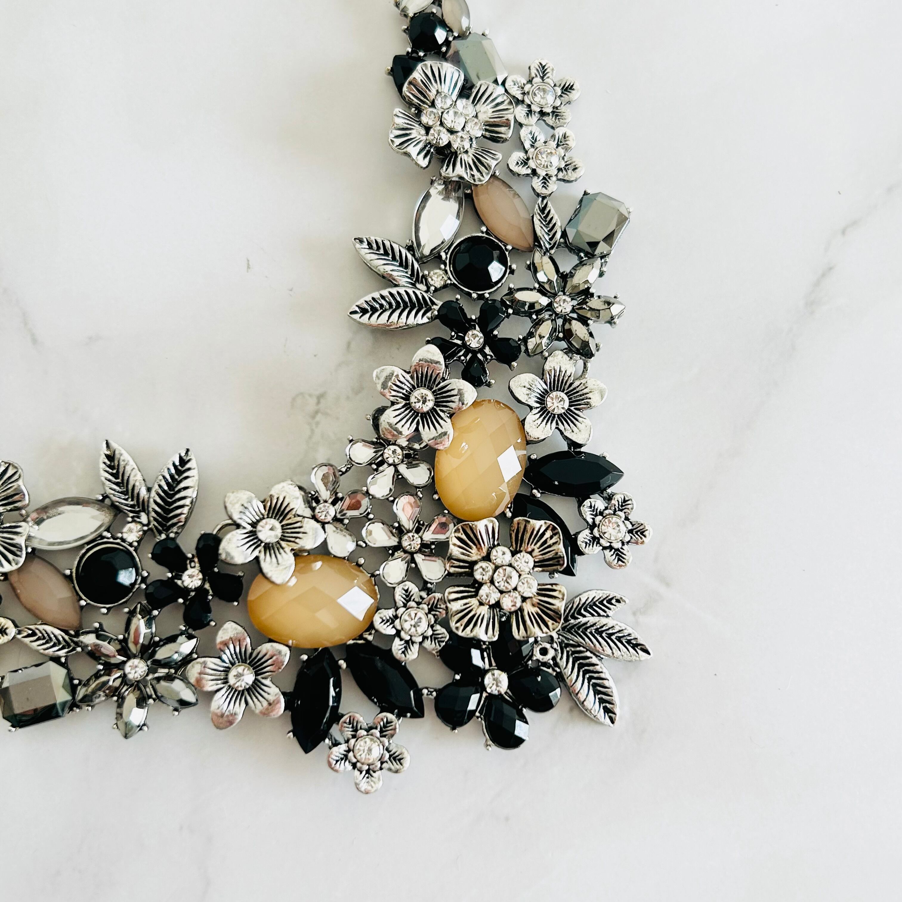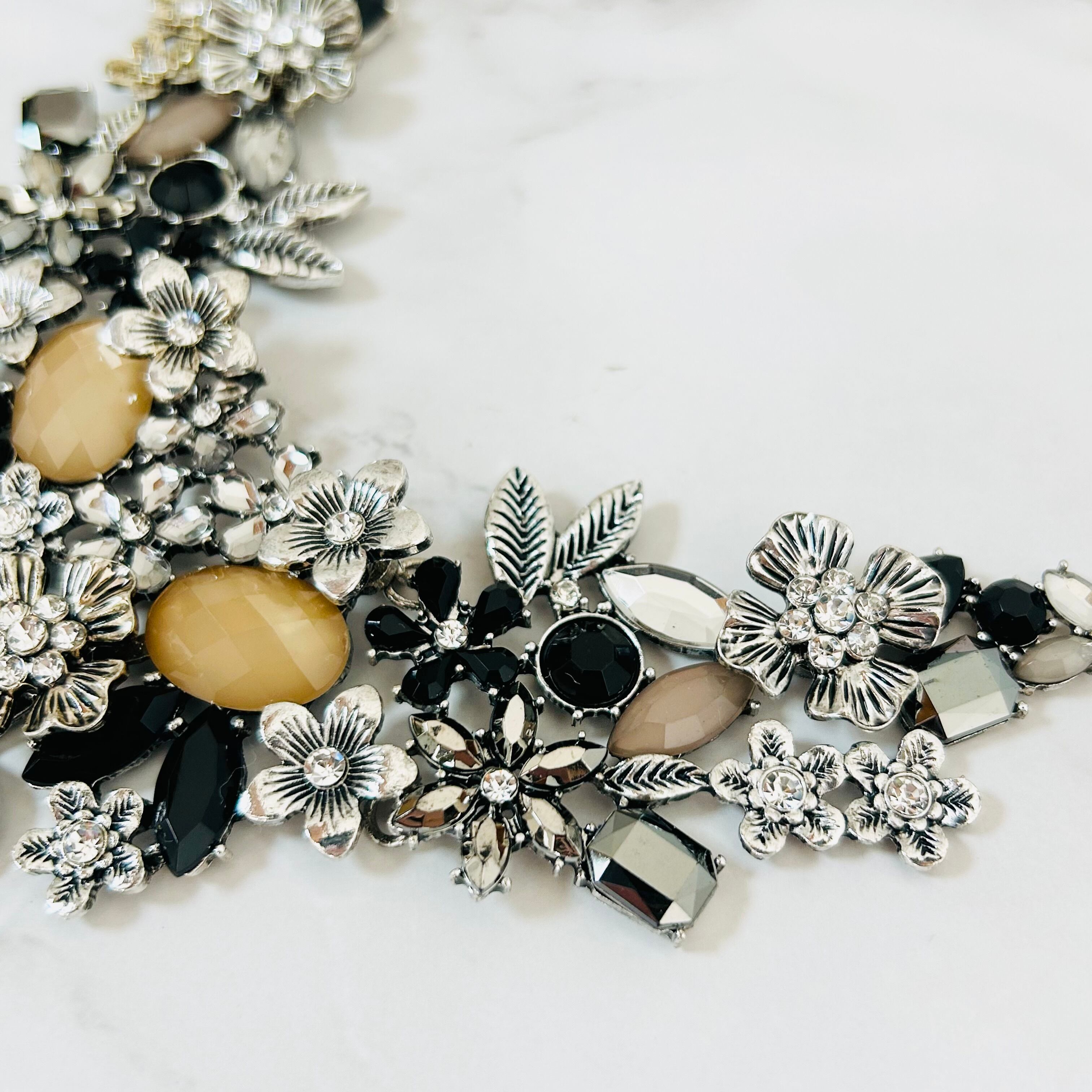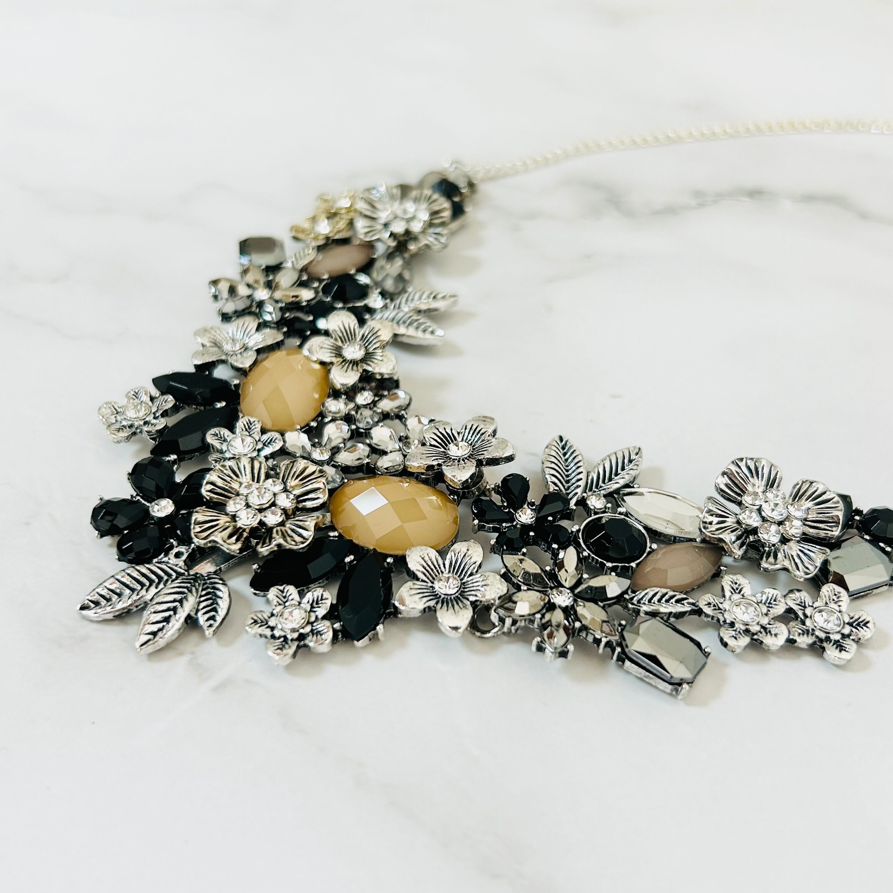 クリスタル、クリアベージュ、ブラックカラー✖️シルバーカラーのネックレスです。