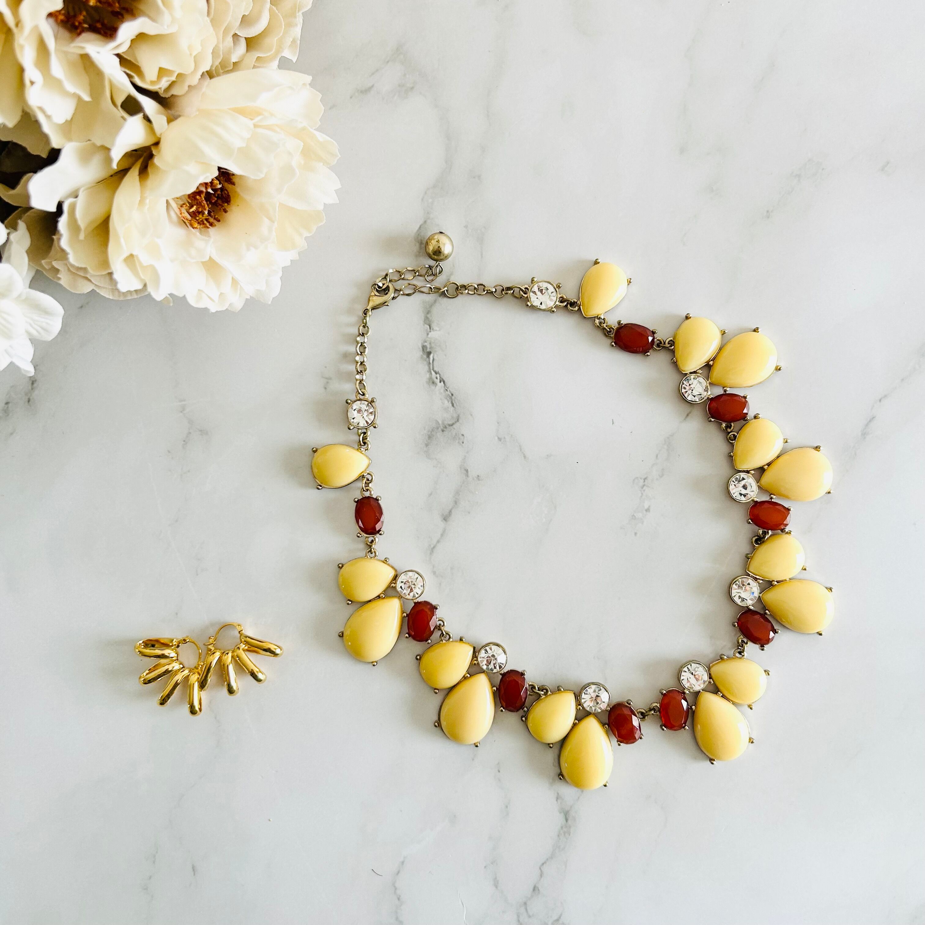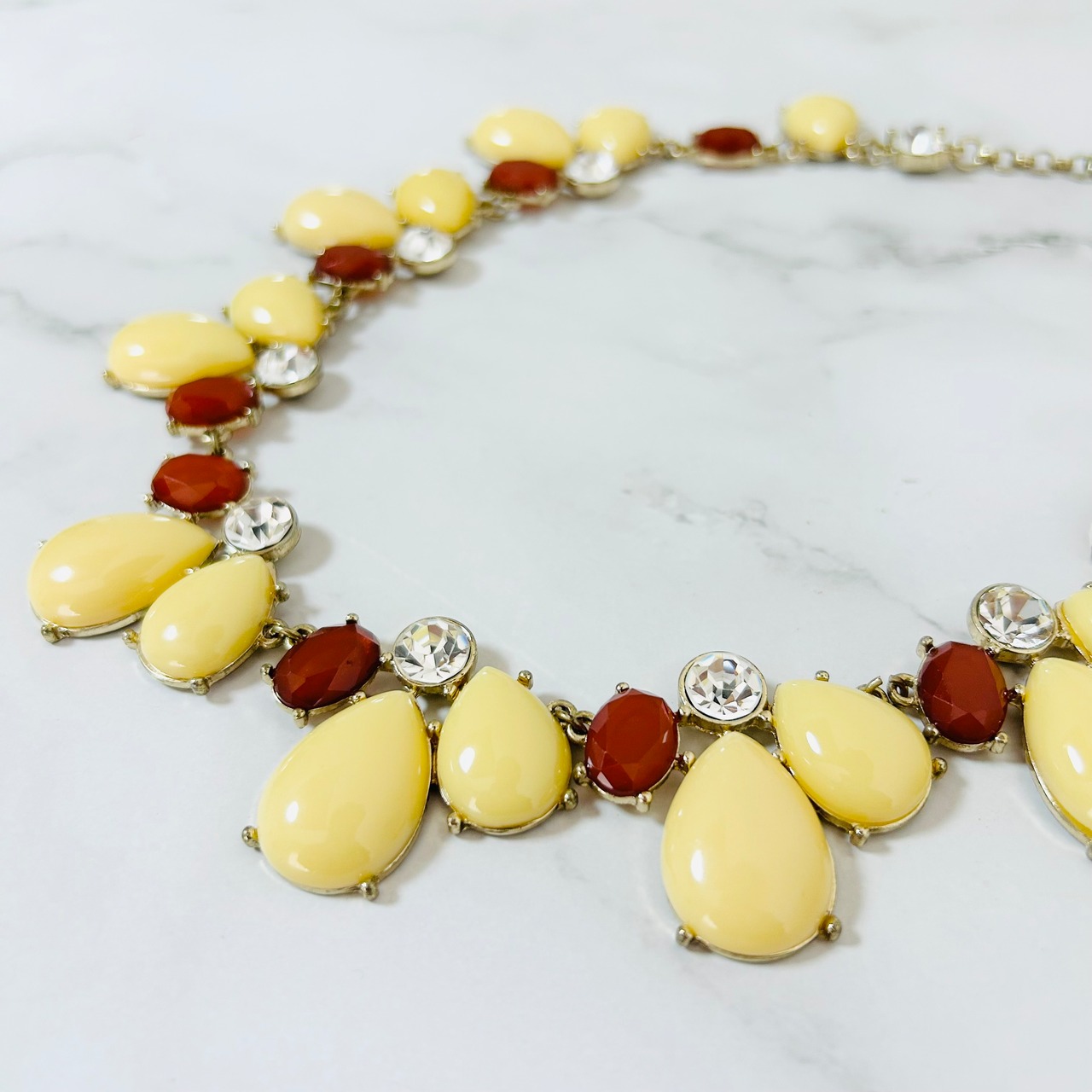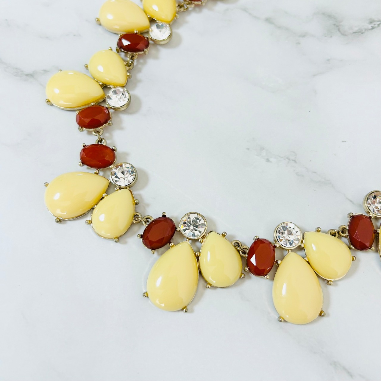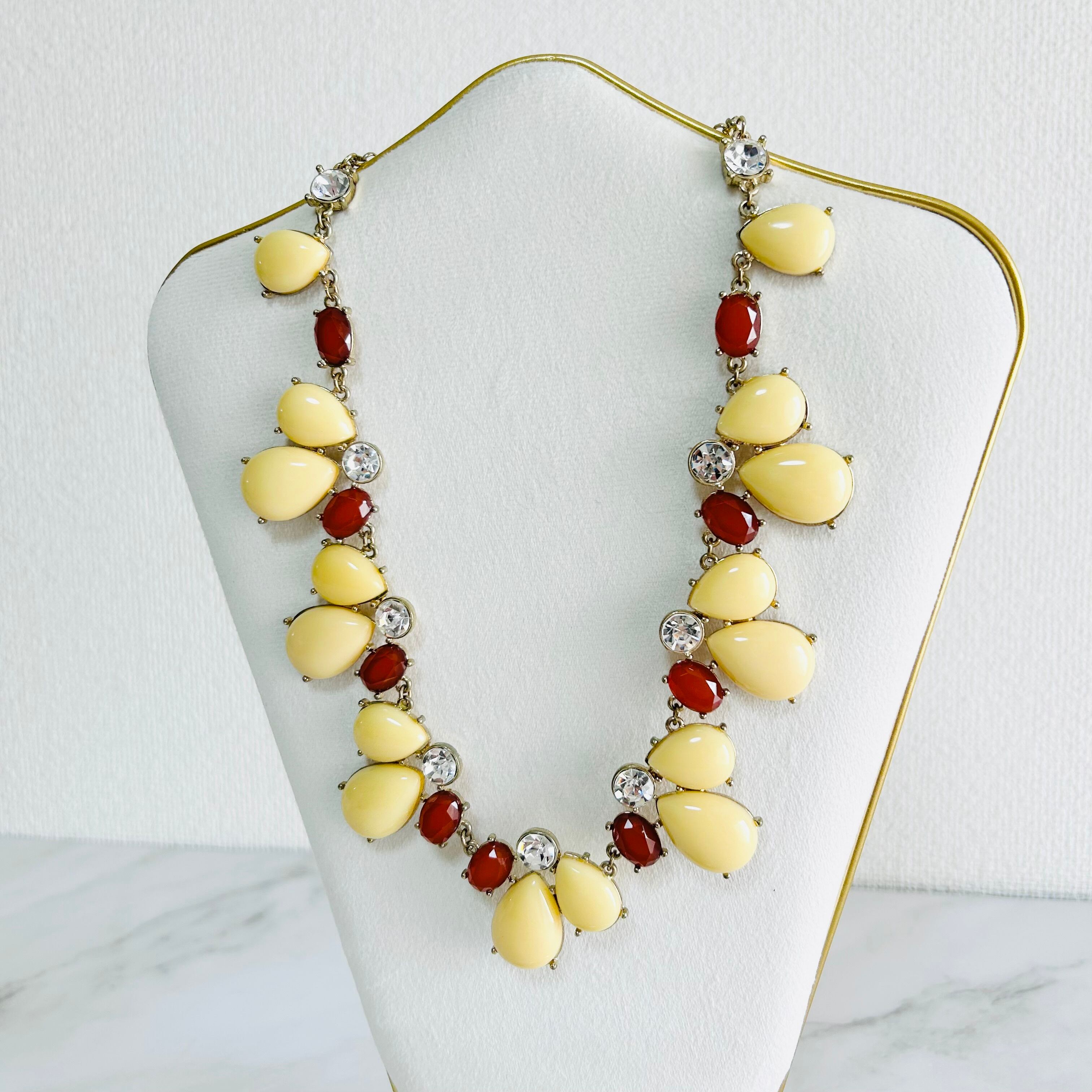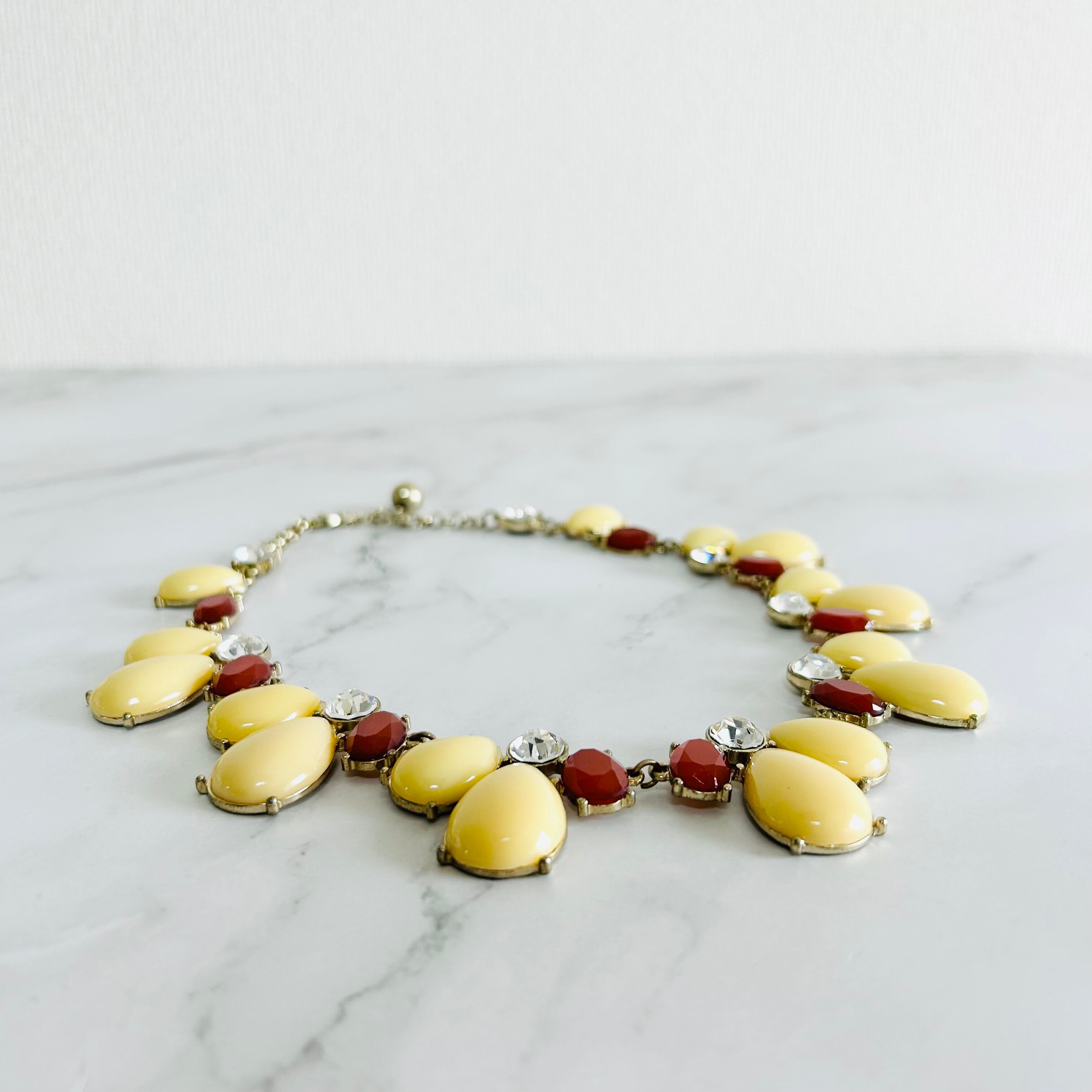 クリームイエロー、カッパー、クリスタル✖️アンティークゴールドカラーのネックレスです。