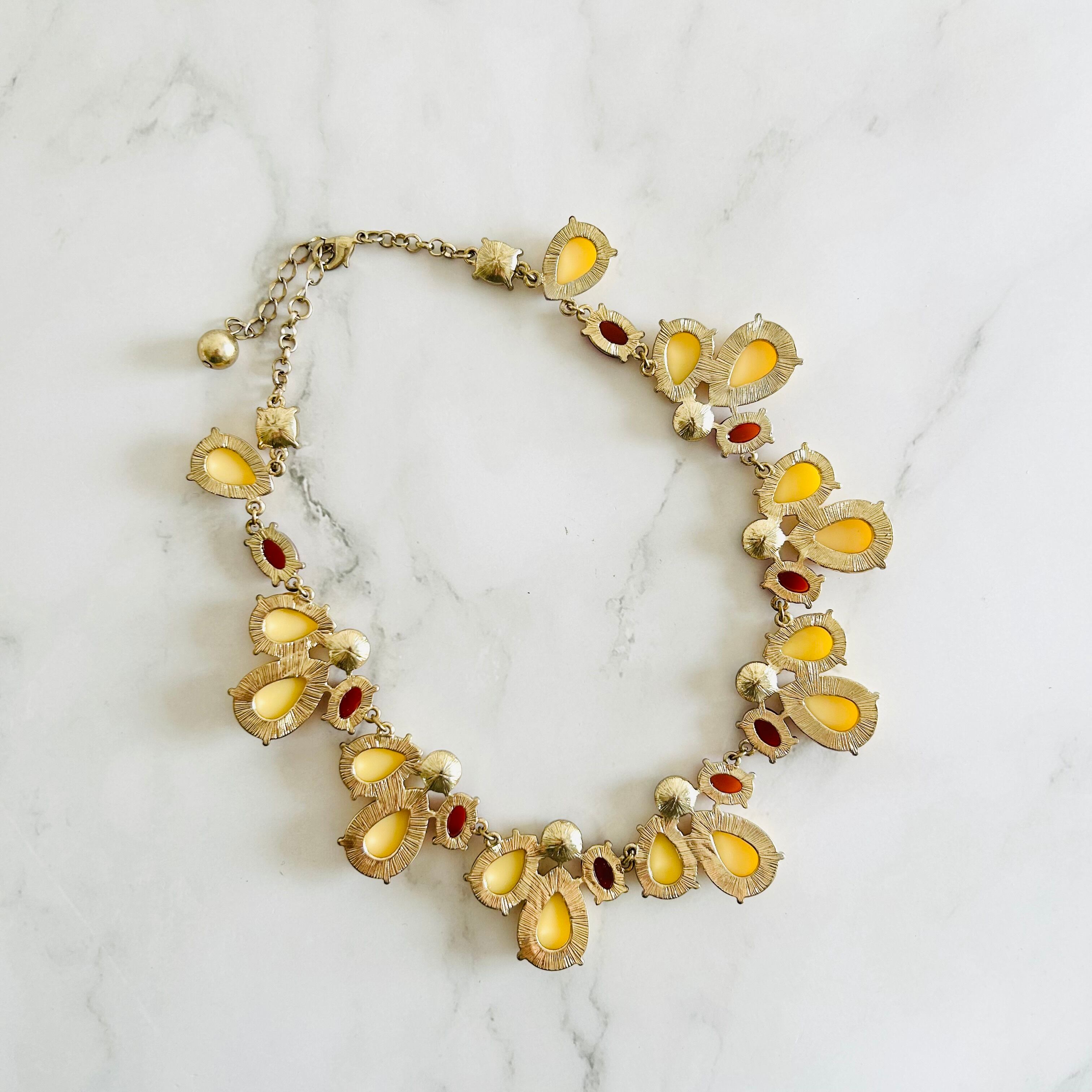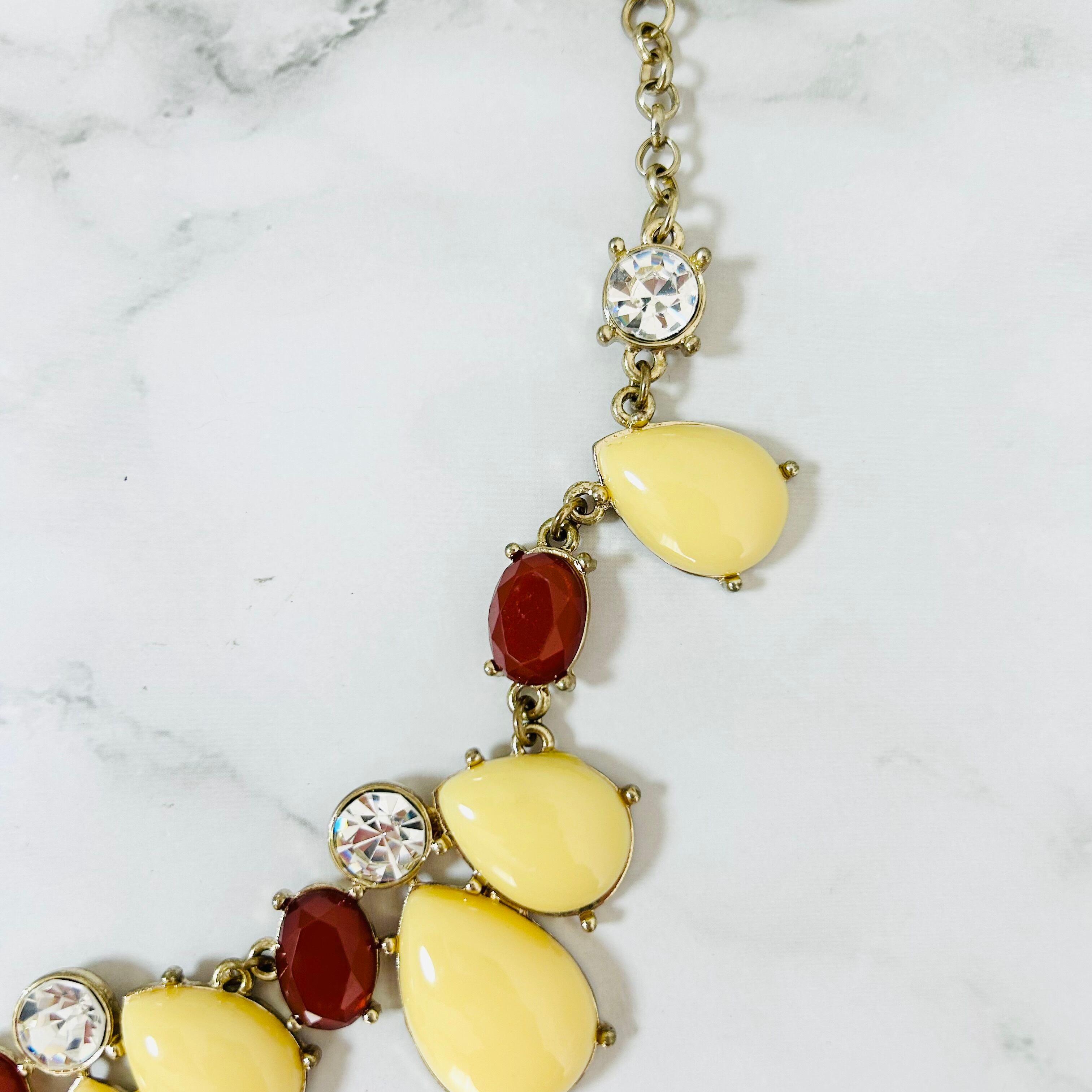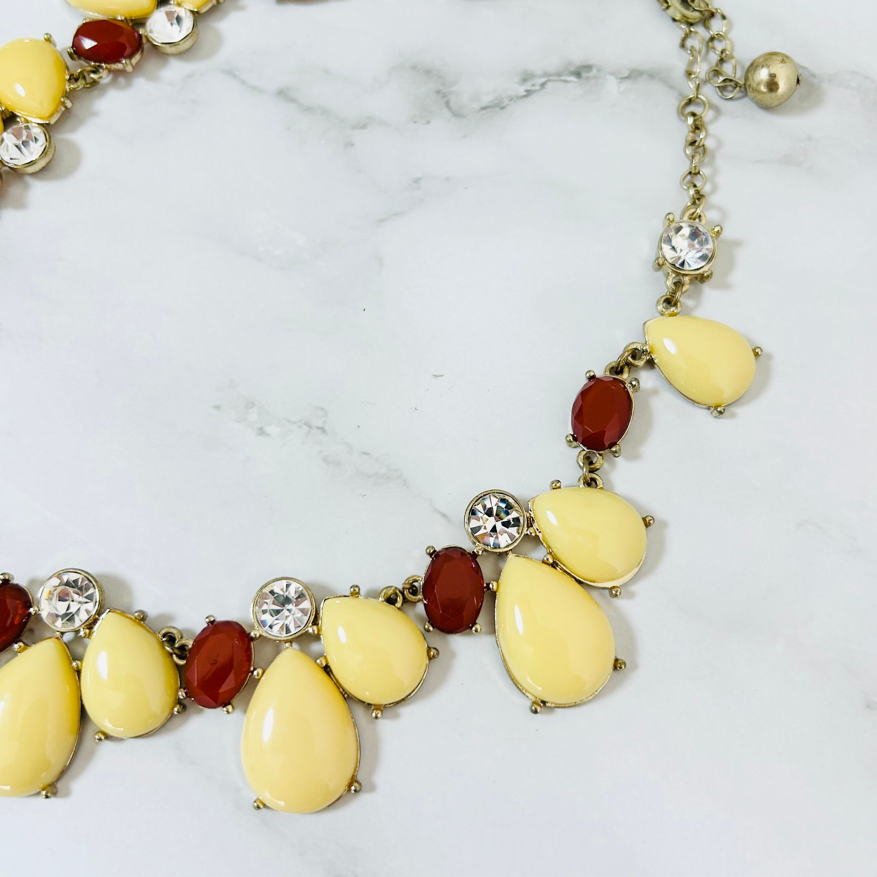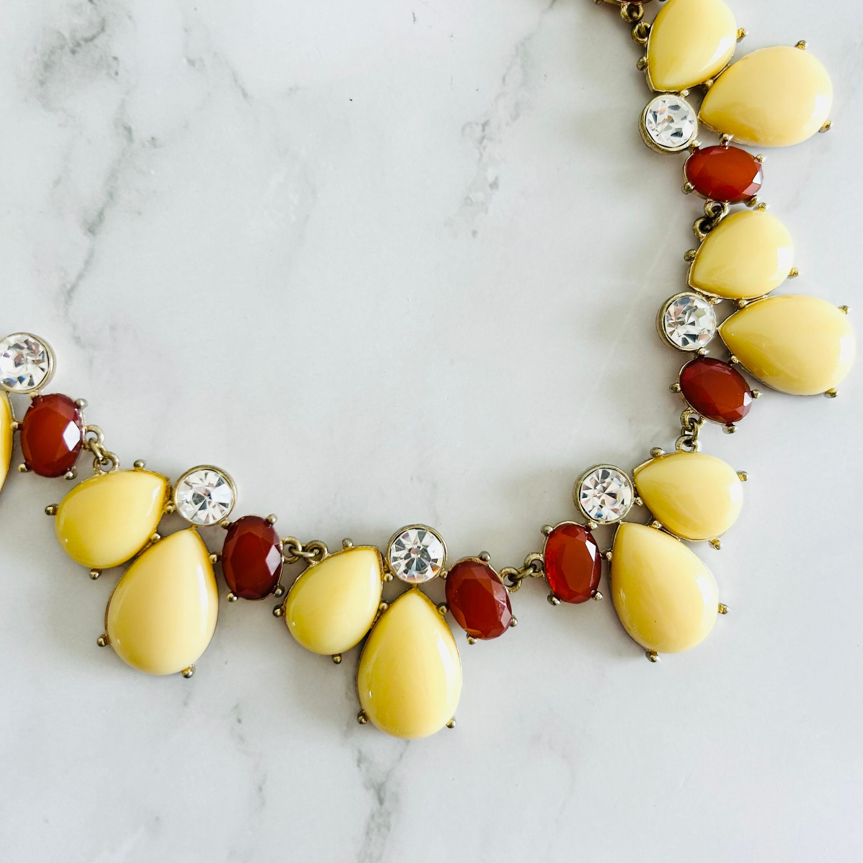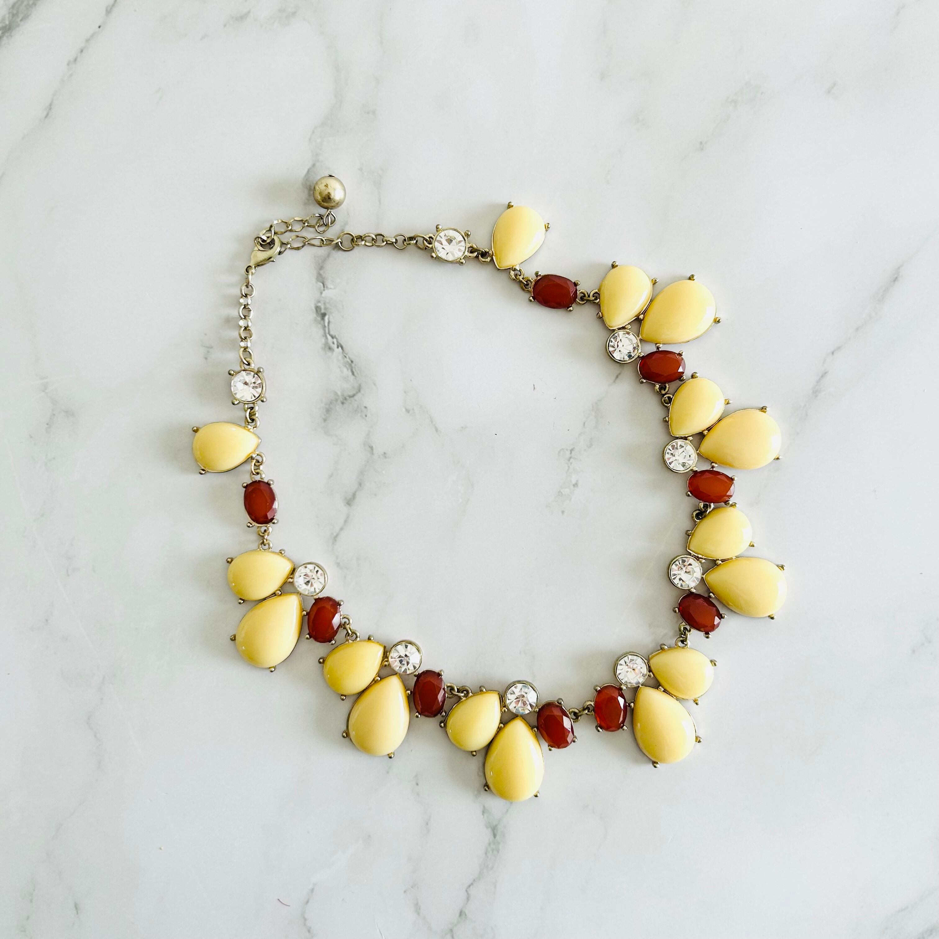 クリームイエロー、カッパー、クリスタル✖️アンティークゴールドカラーのネックレスです。