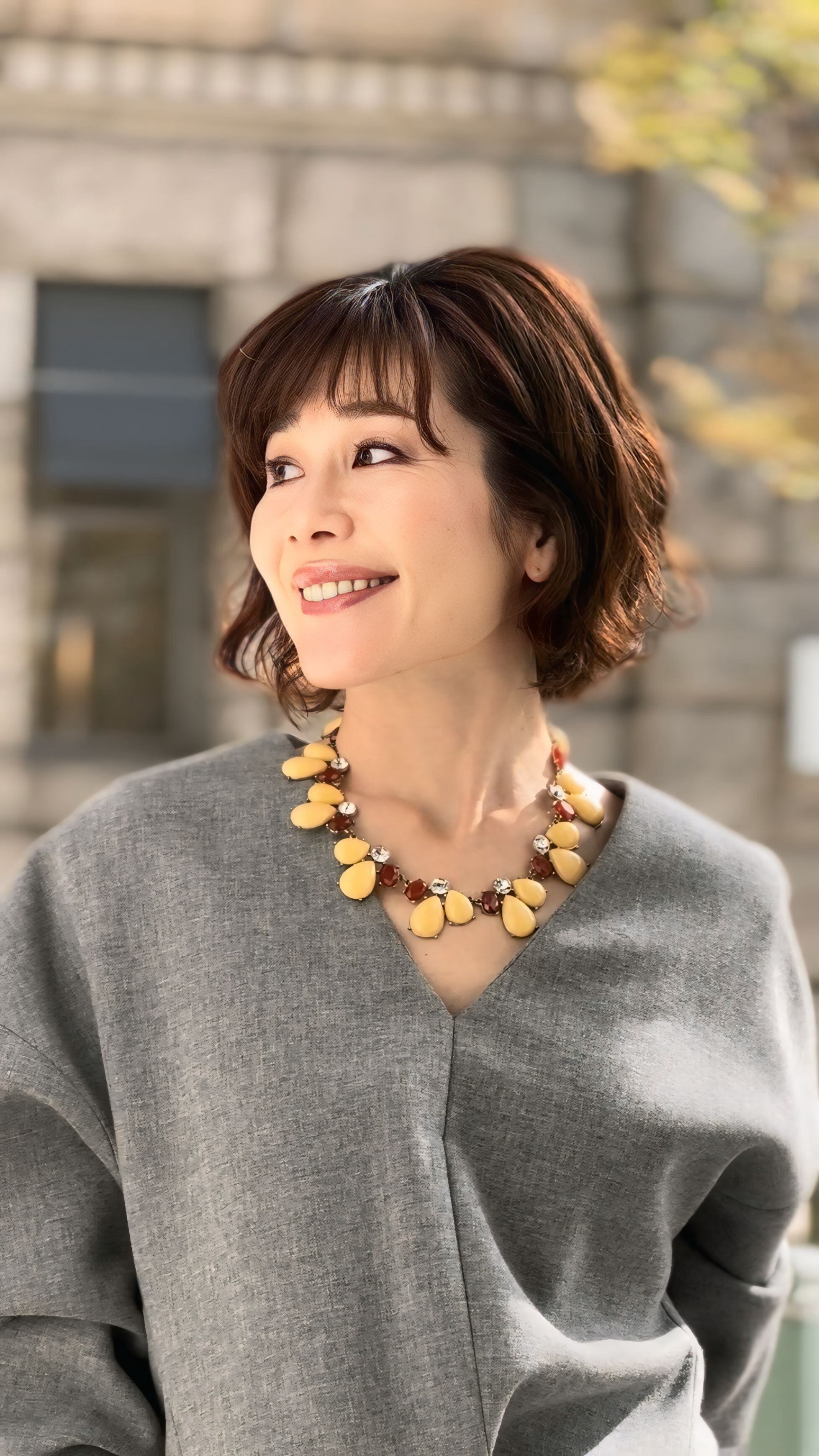 コート下につけても存在感のあるボリュームと華やぎは、着けるシーンを選ばずカジュアルから特別な日の装いまで、いつものコーディネートに彩りと若々しいアクセントをプラスします♪