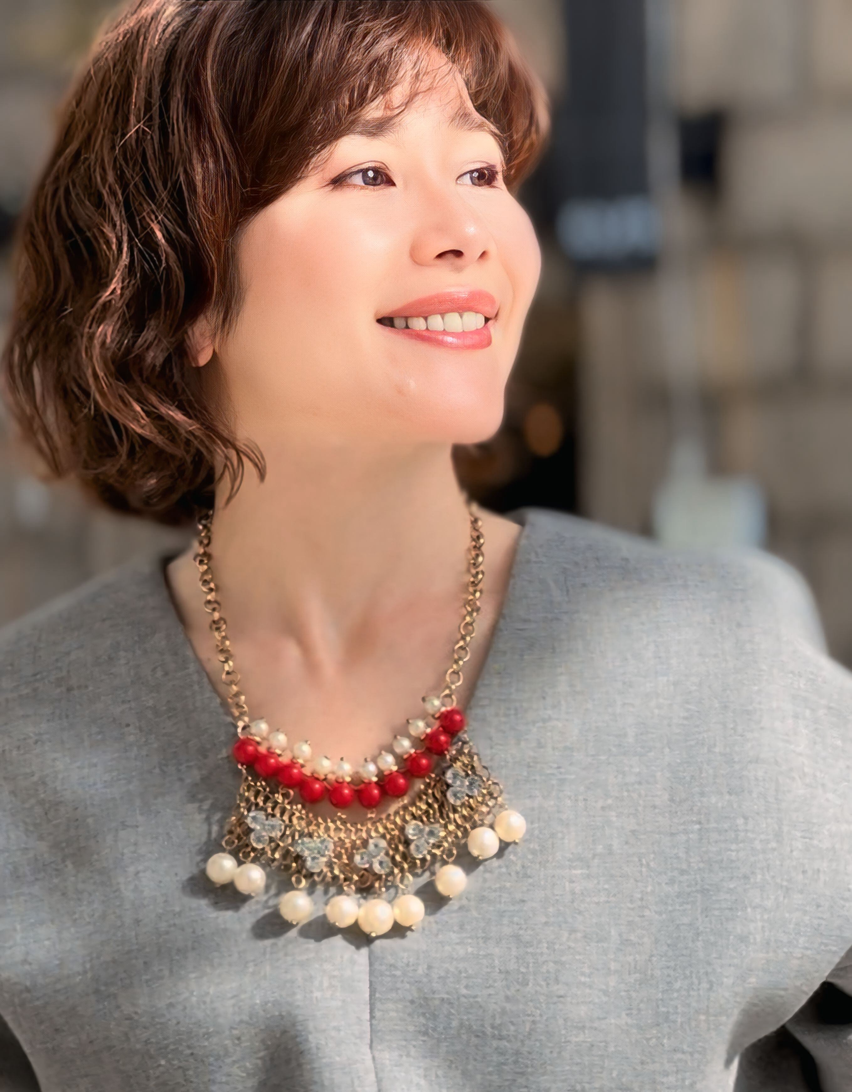 長めにつけてワンピースやチュニックとあわせても素敵ですし、お首まわりに短めにつけても雰囲気がでます。