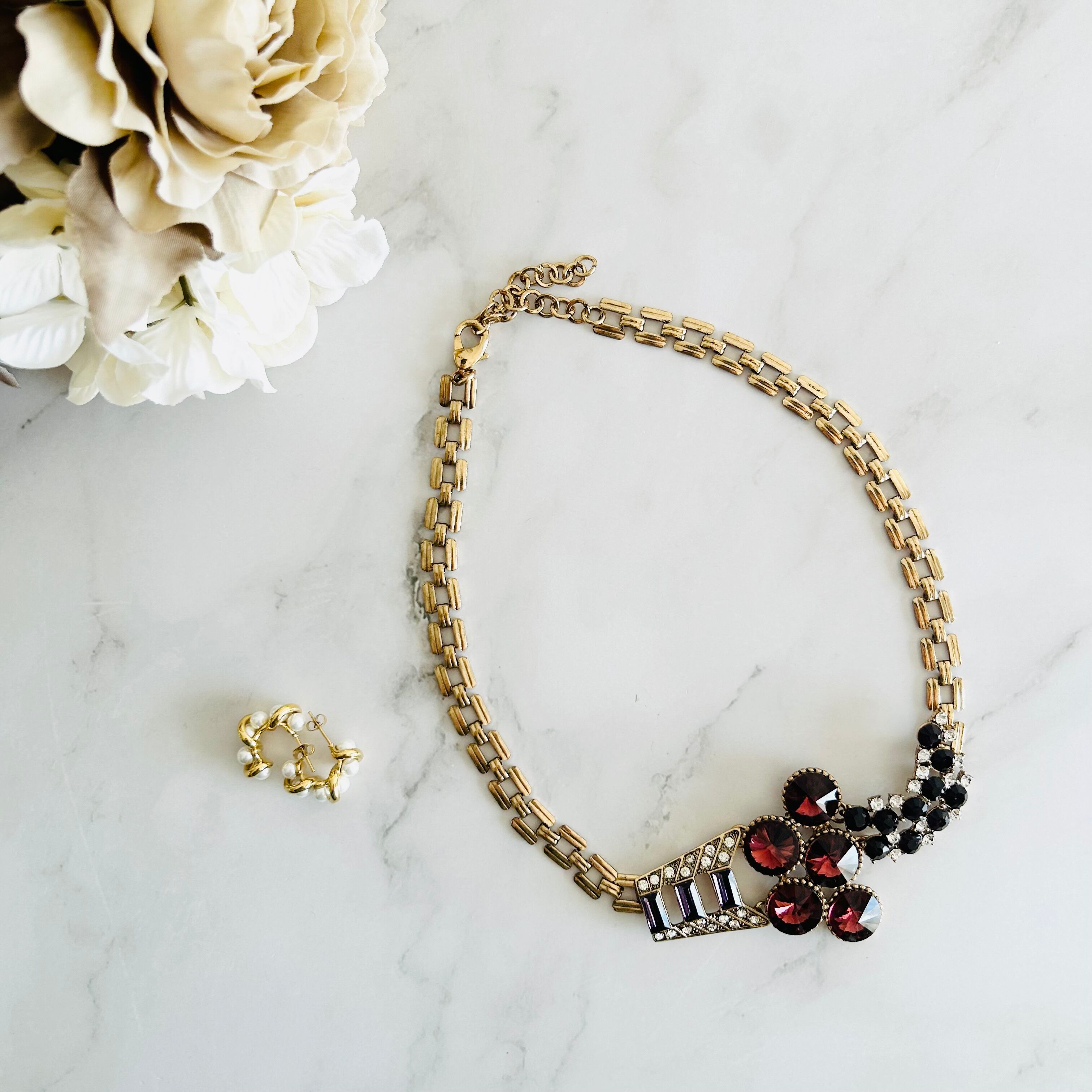 バーガンディやパープルのクリスタルパーツとラインストーンあしらった、それぞれデザインの違うモチーフがポイントのデザインです。