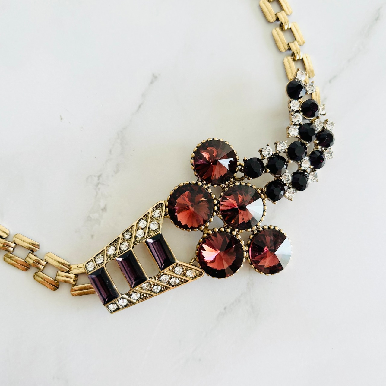 パープル系✖️アンティークゴールドカラーのネックレスです。