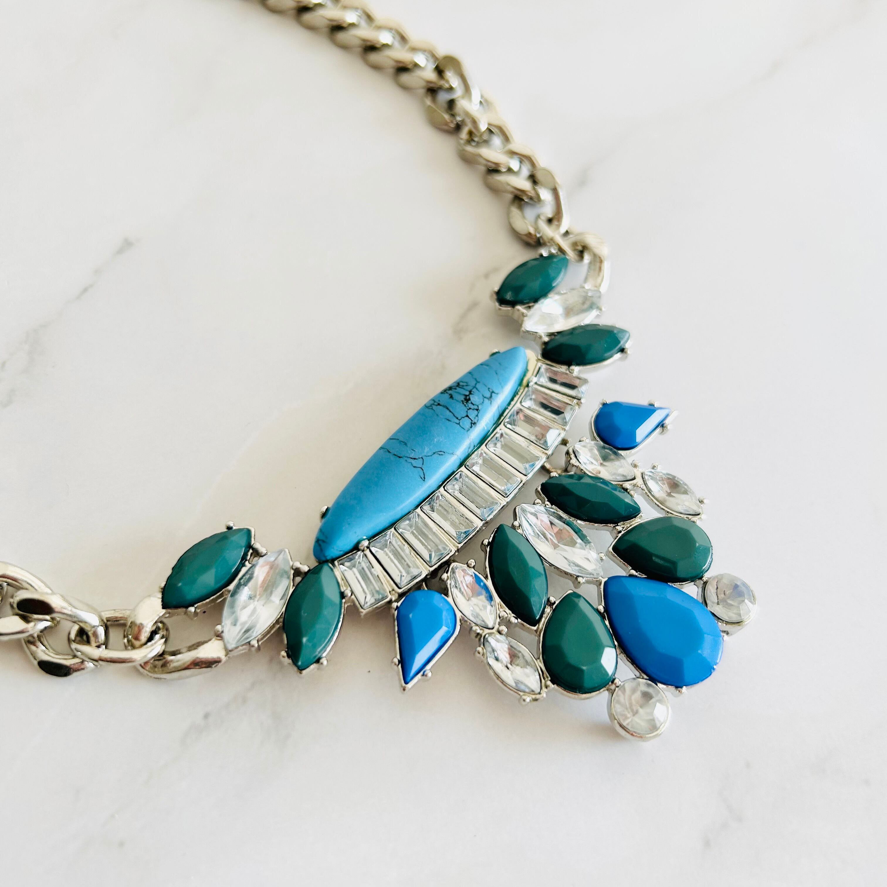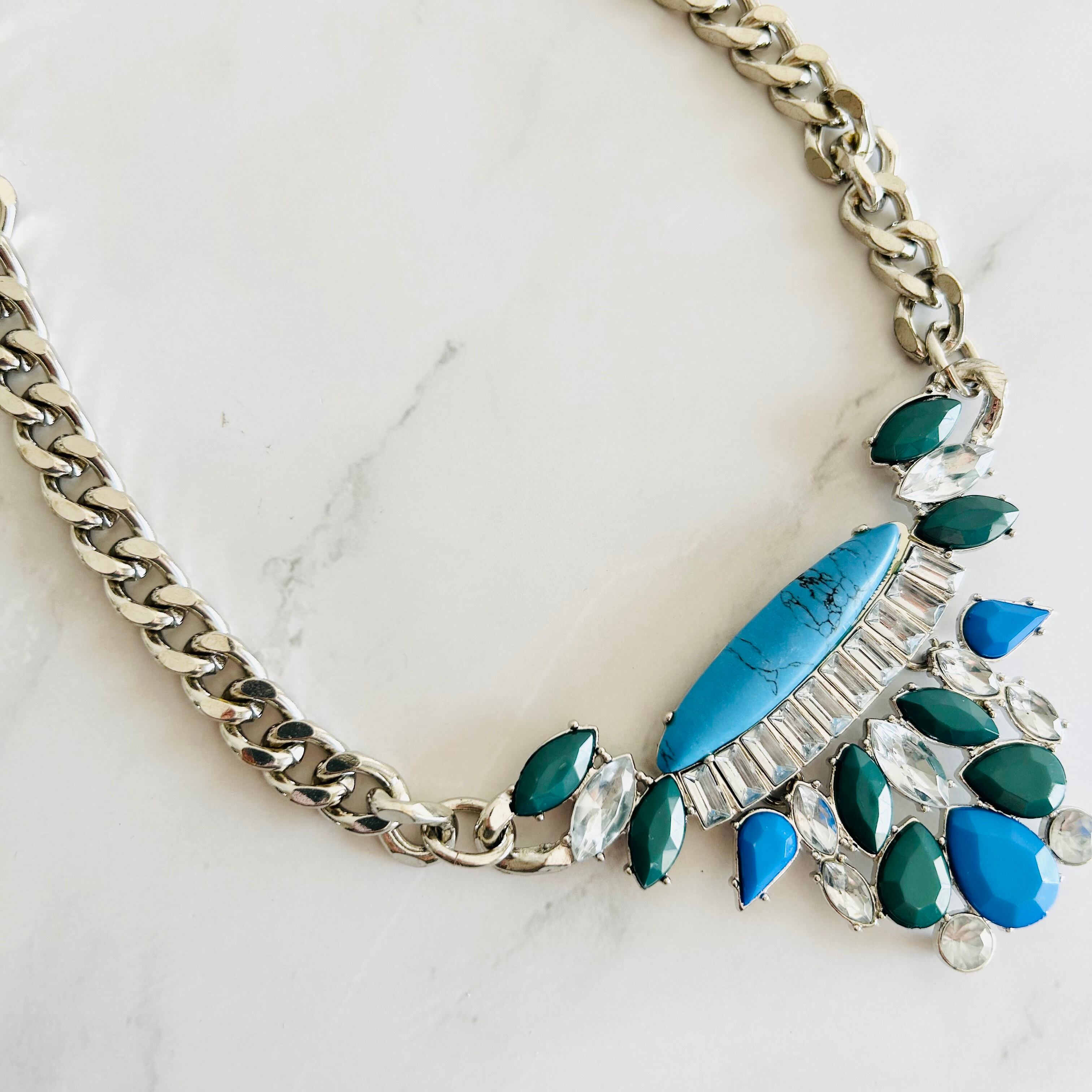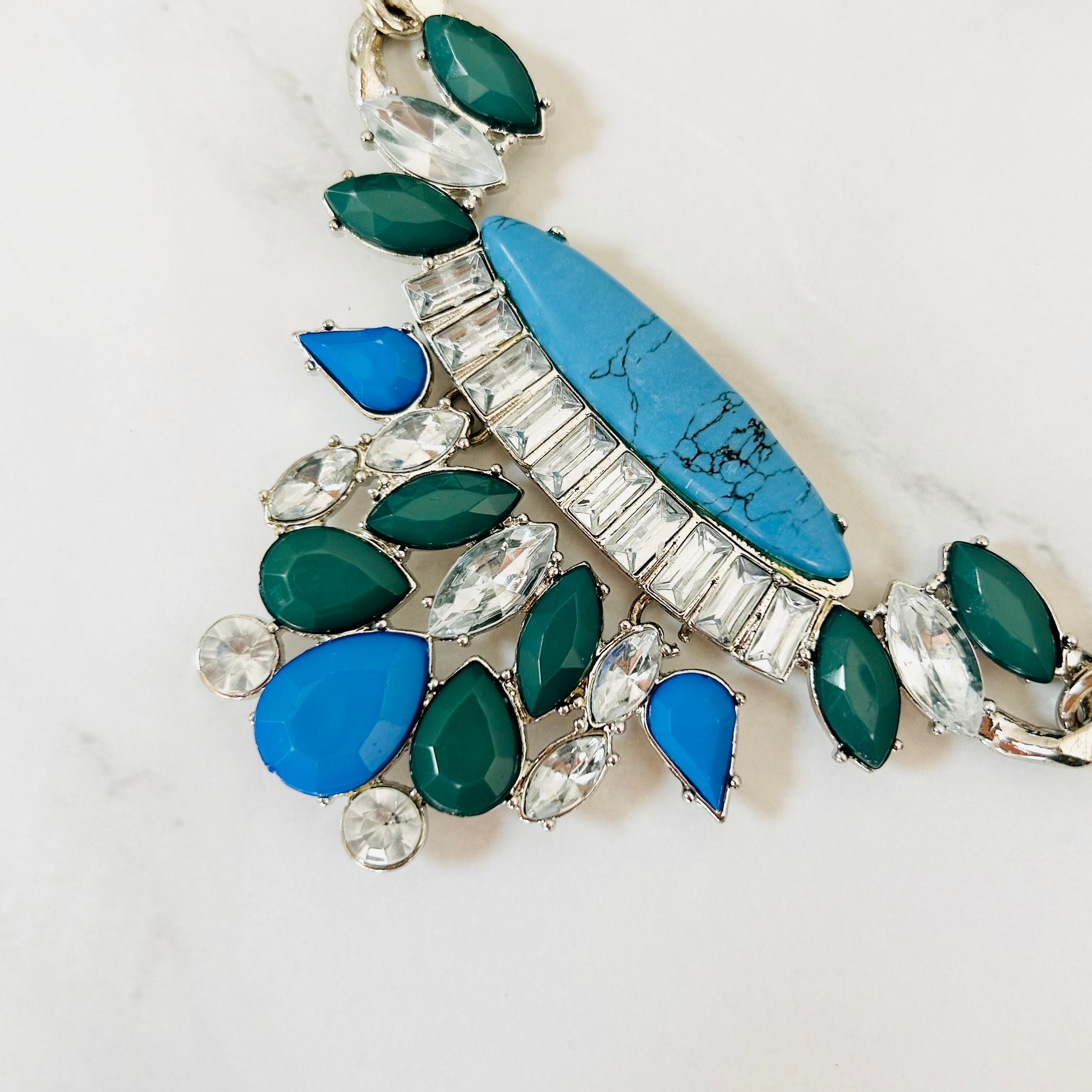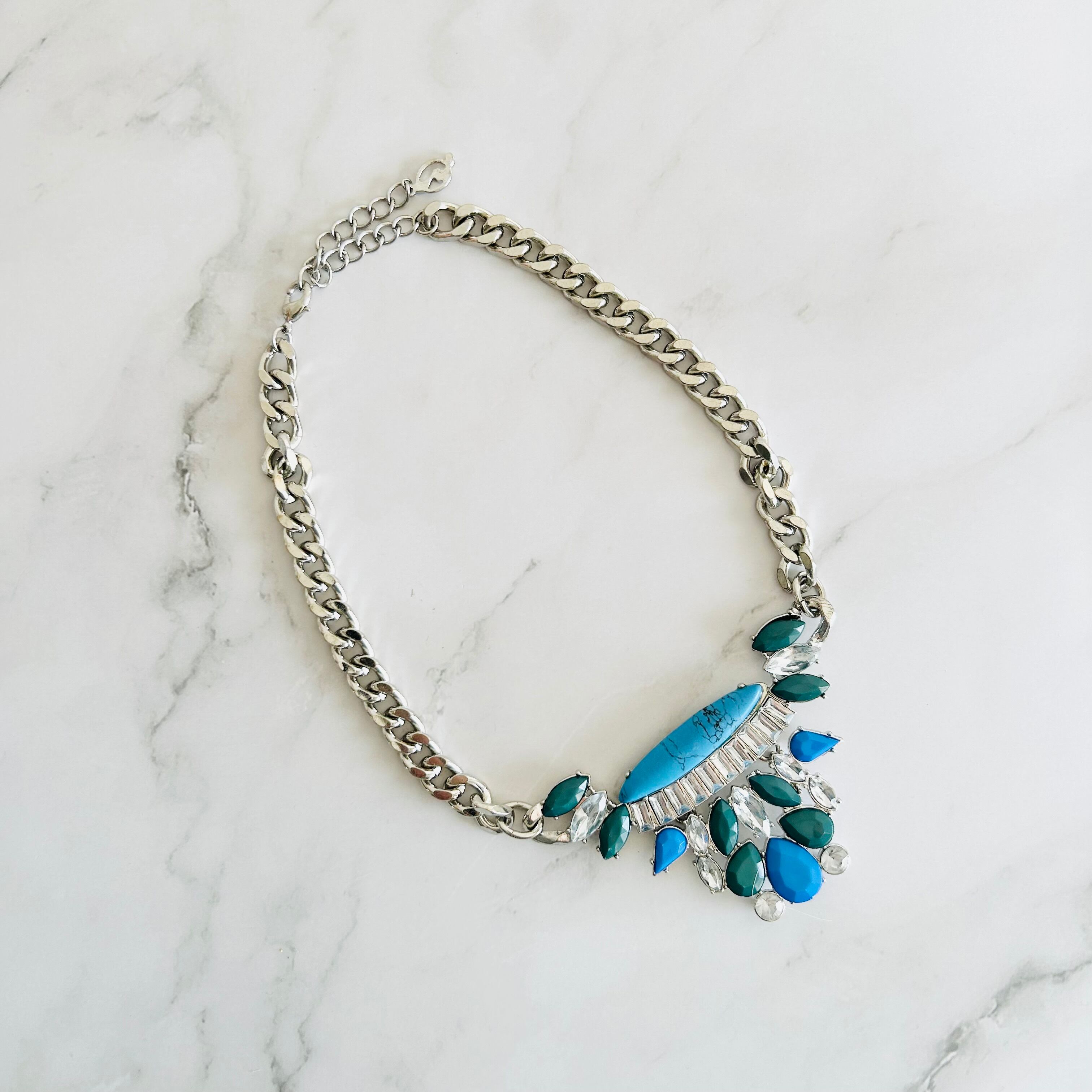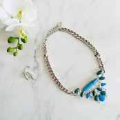 ブルー系、グリーン、クリスタル✖️シルバーカラーのネックレスです。