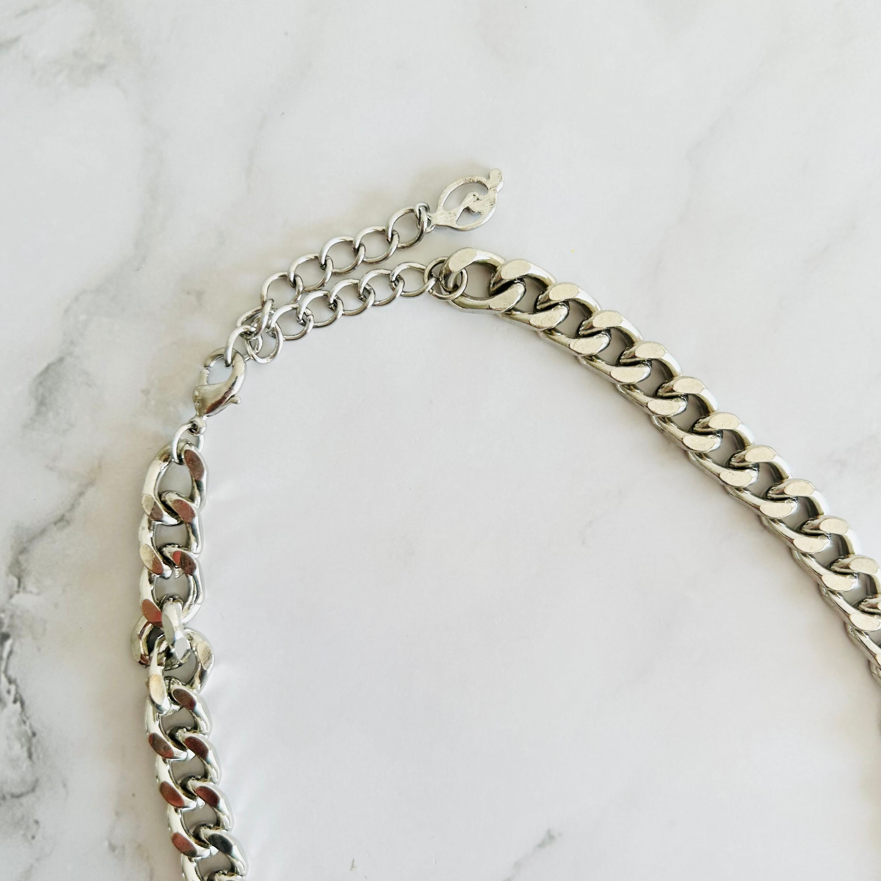 洗練されたシルバーカラーのチャンキーチェーンは上品さの中にクールなカッコ良さをプラスします。