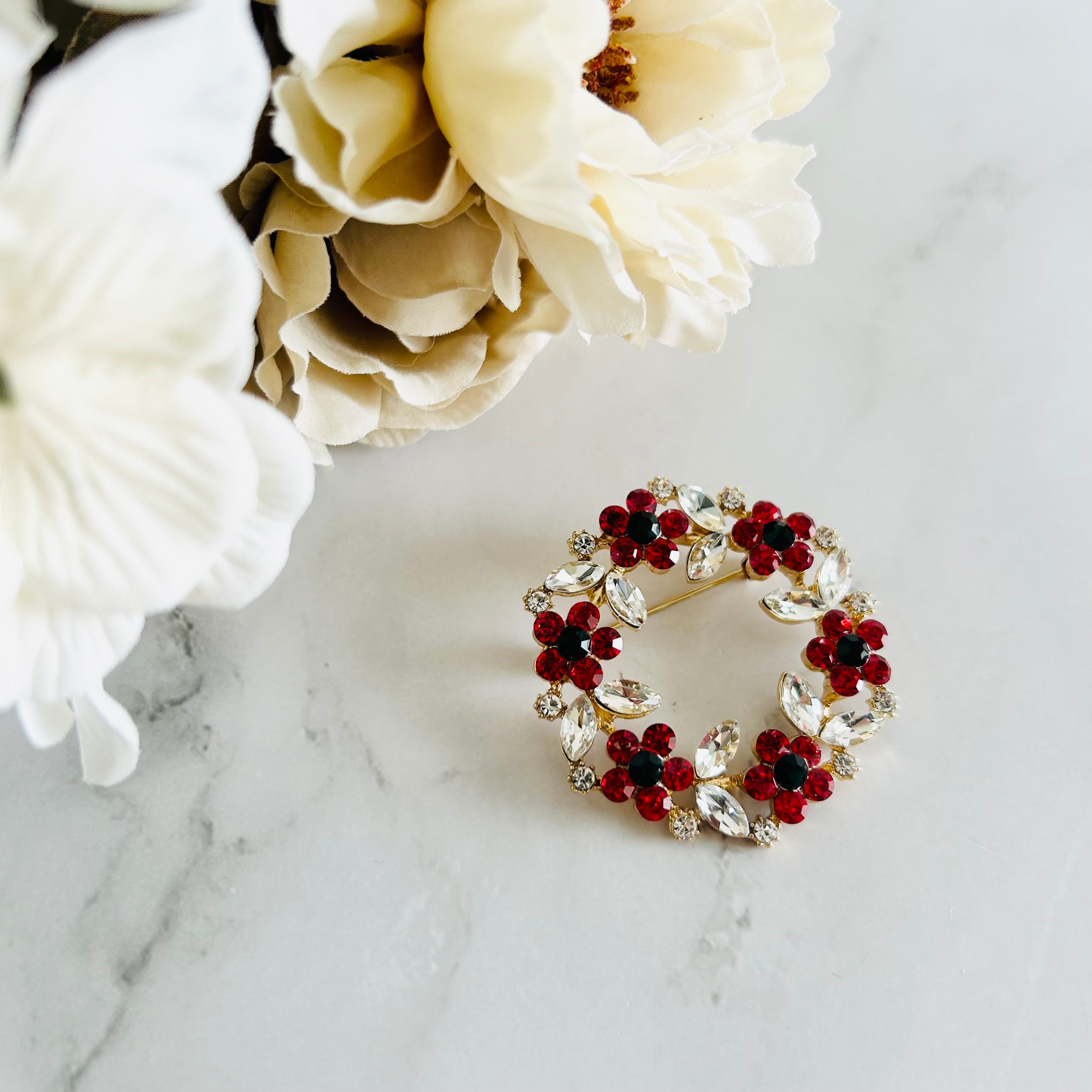 クリスタル、レッド、ブラックカラー✖️ゴールドカラーのブローチです。