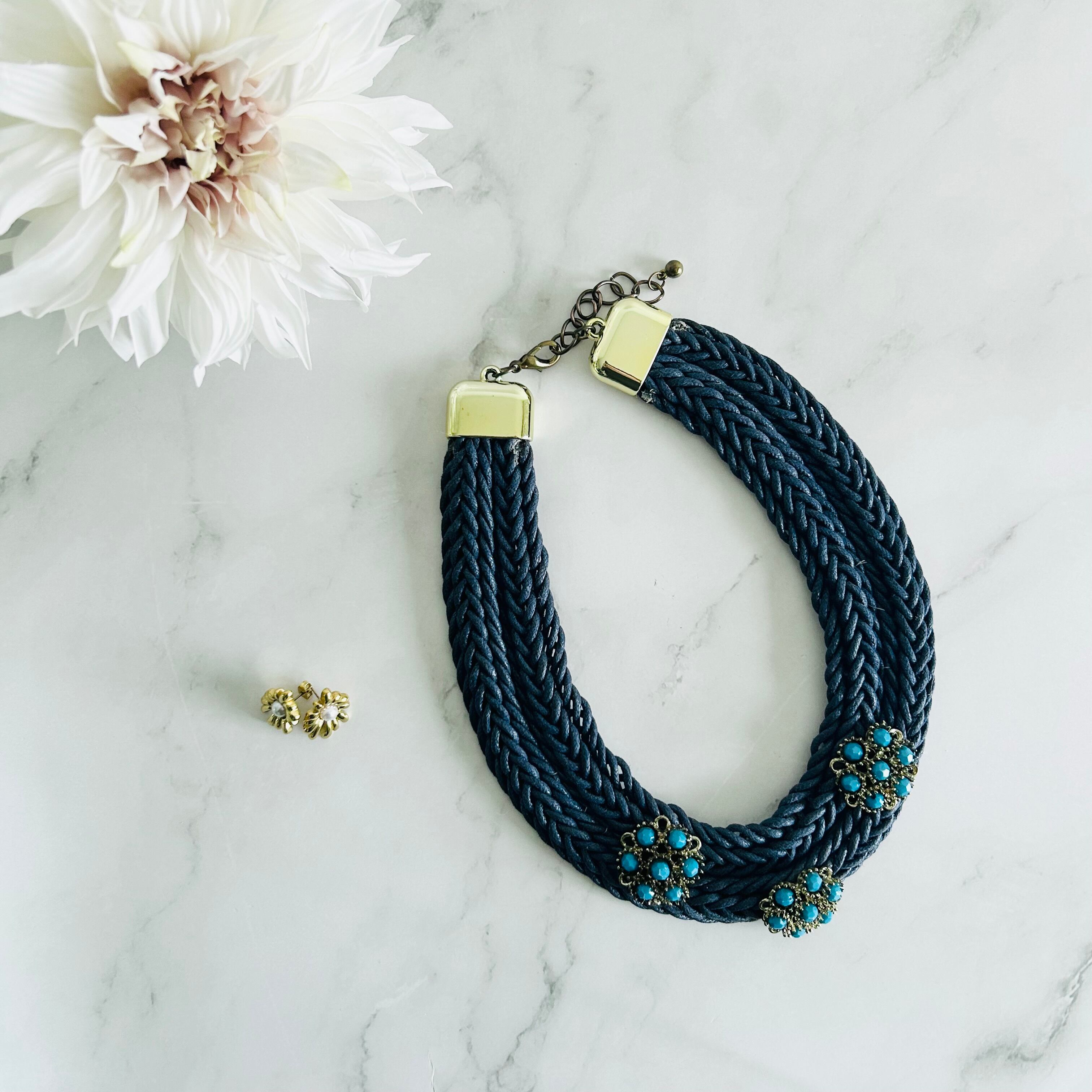 ネイビー、ブルー✖️アンティークゴールカラーのネックレスです。