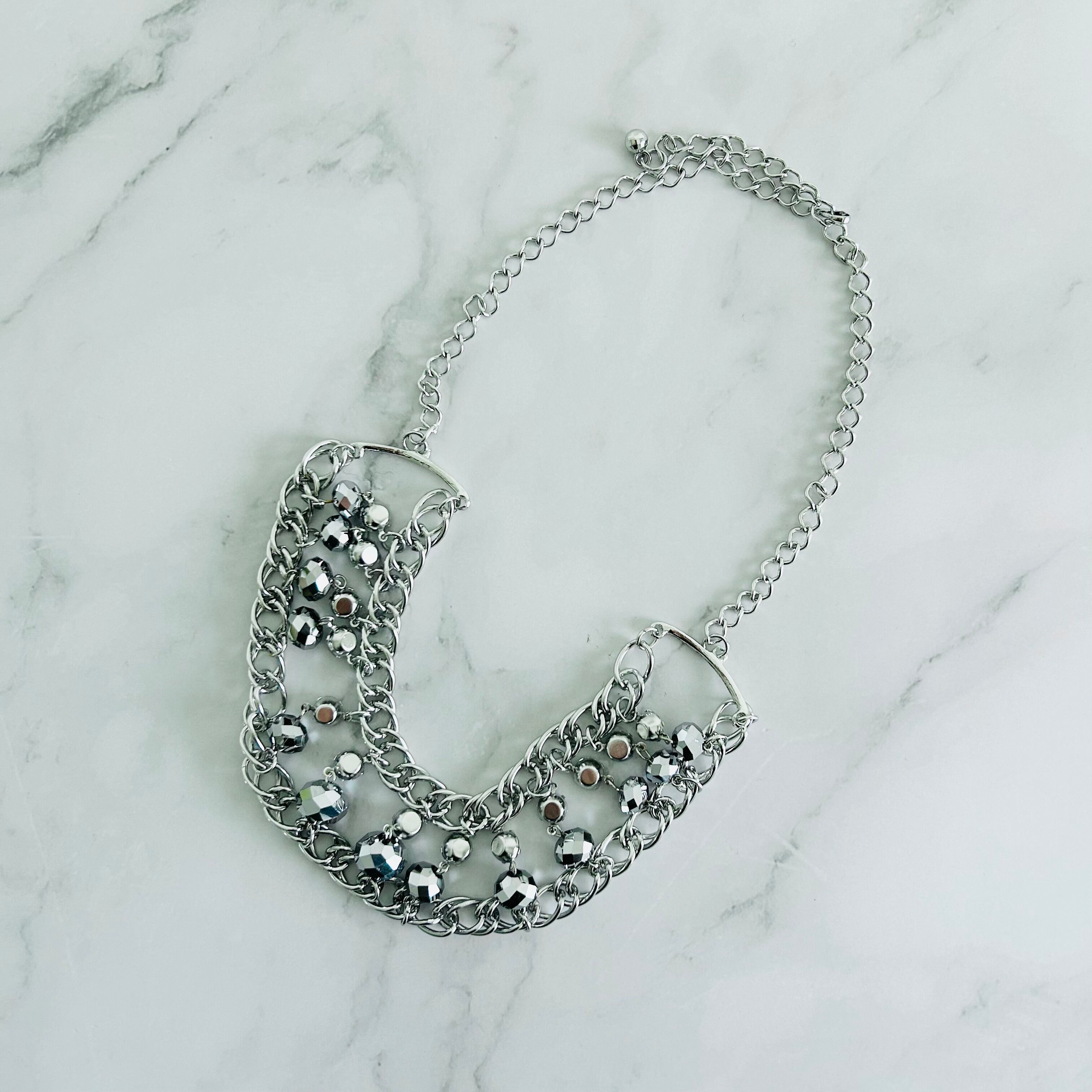 クリスタカラー、メタルカラー✖️シルバーカラーのネックレスです。
