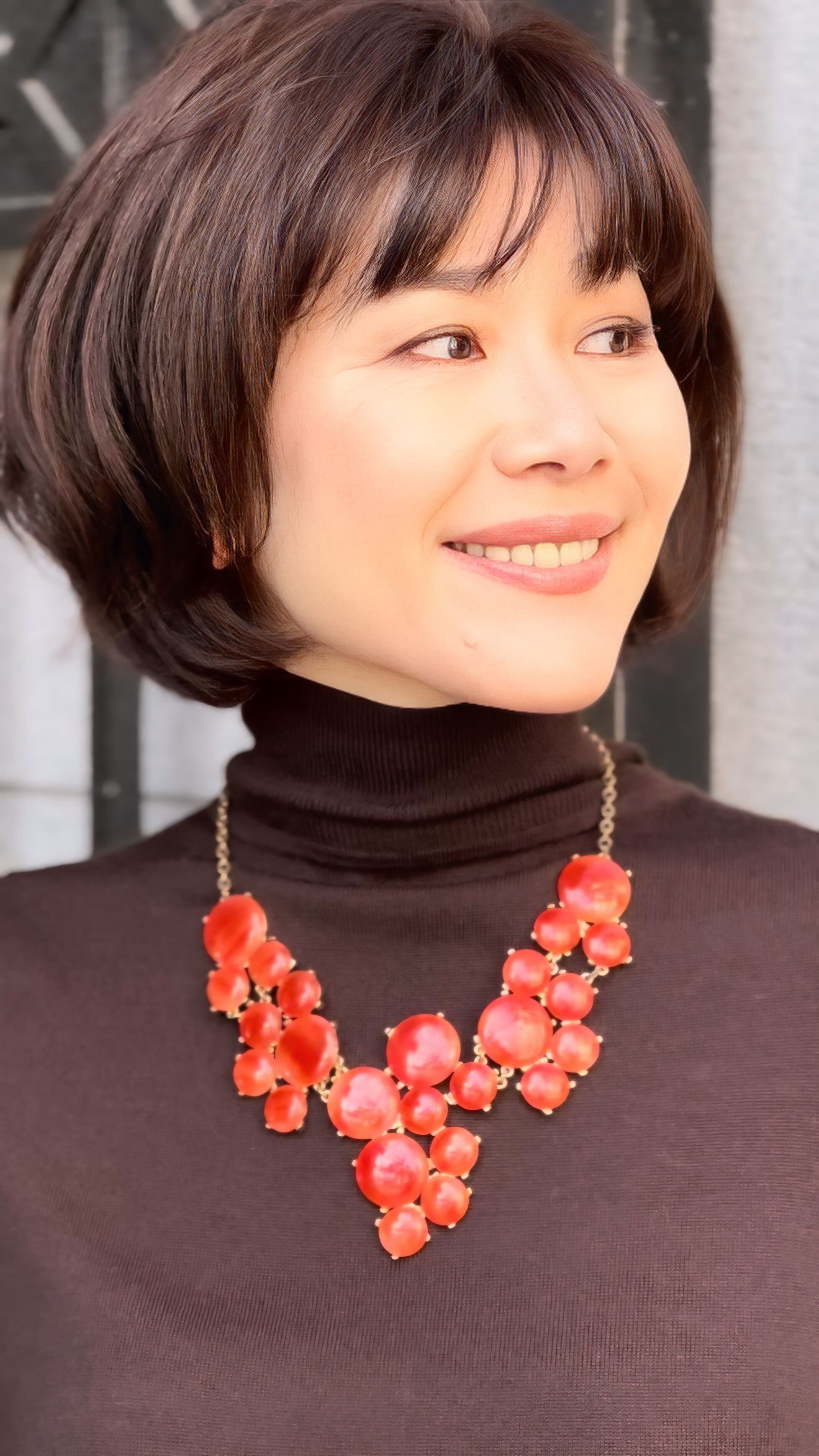 グラデーションになった透明感のあるアクリル素材のレッドパーツを組み合わせた彩りあるデザインです。