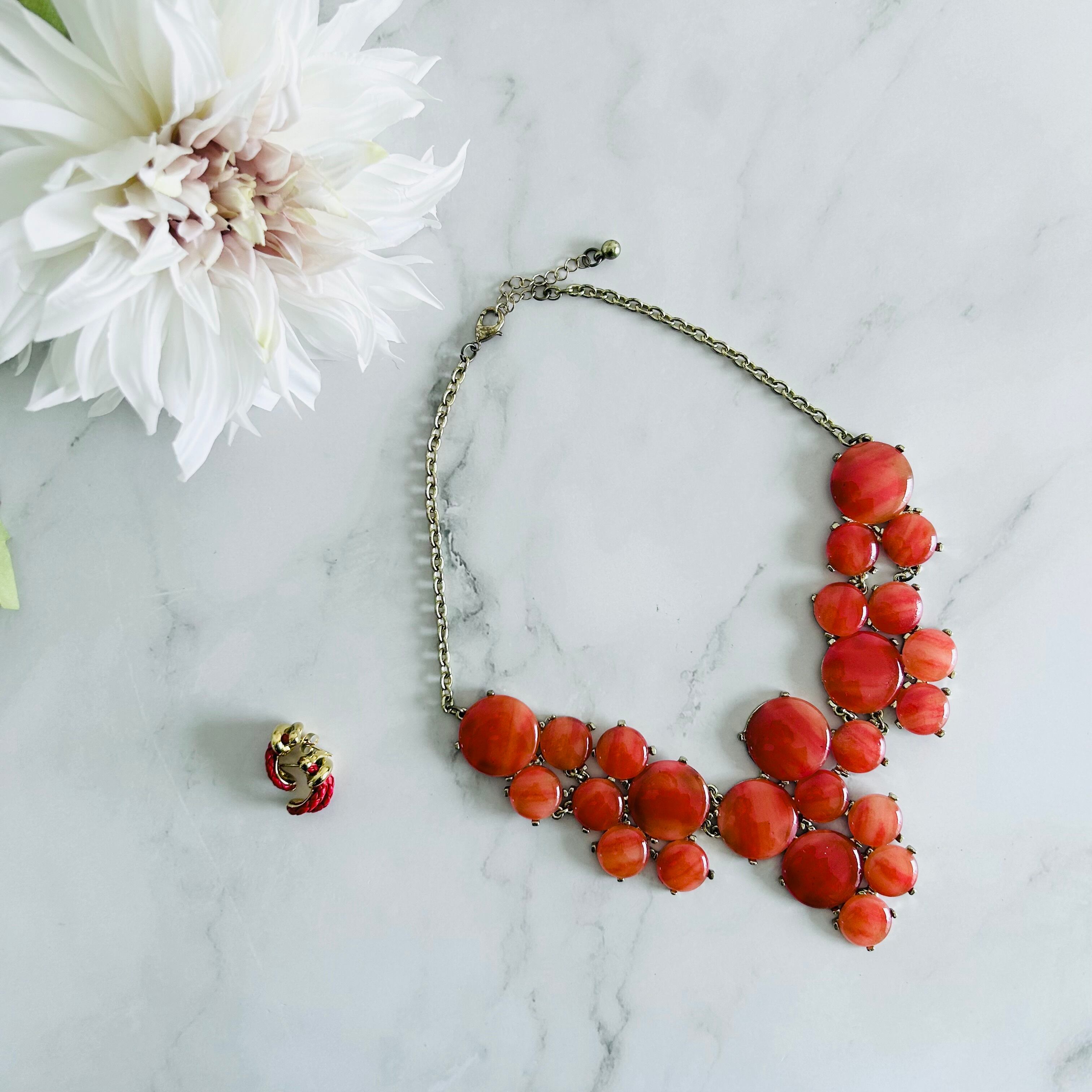 クリアレッド✖️アンティークゴールドカラーのネックレスです。