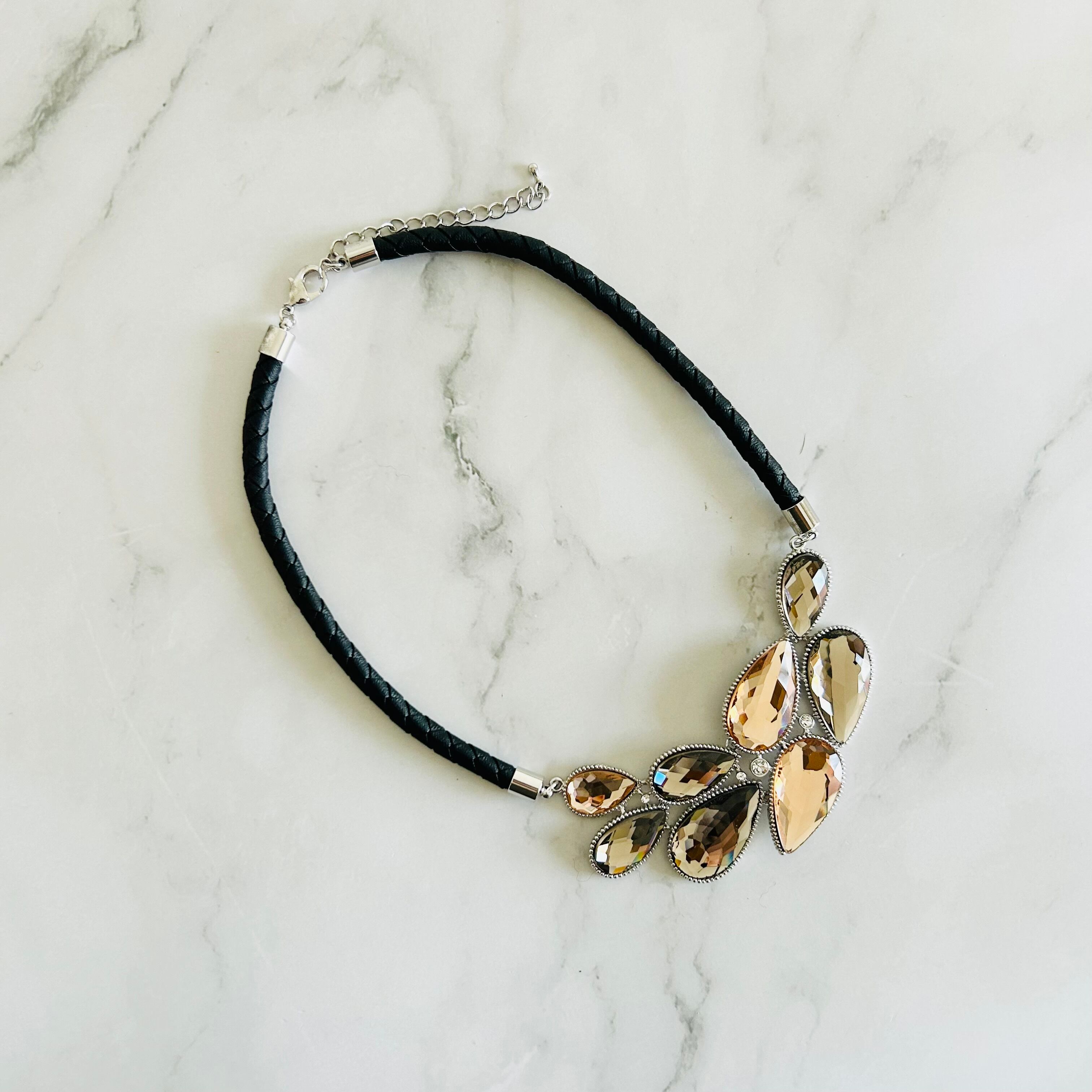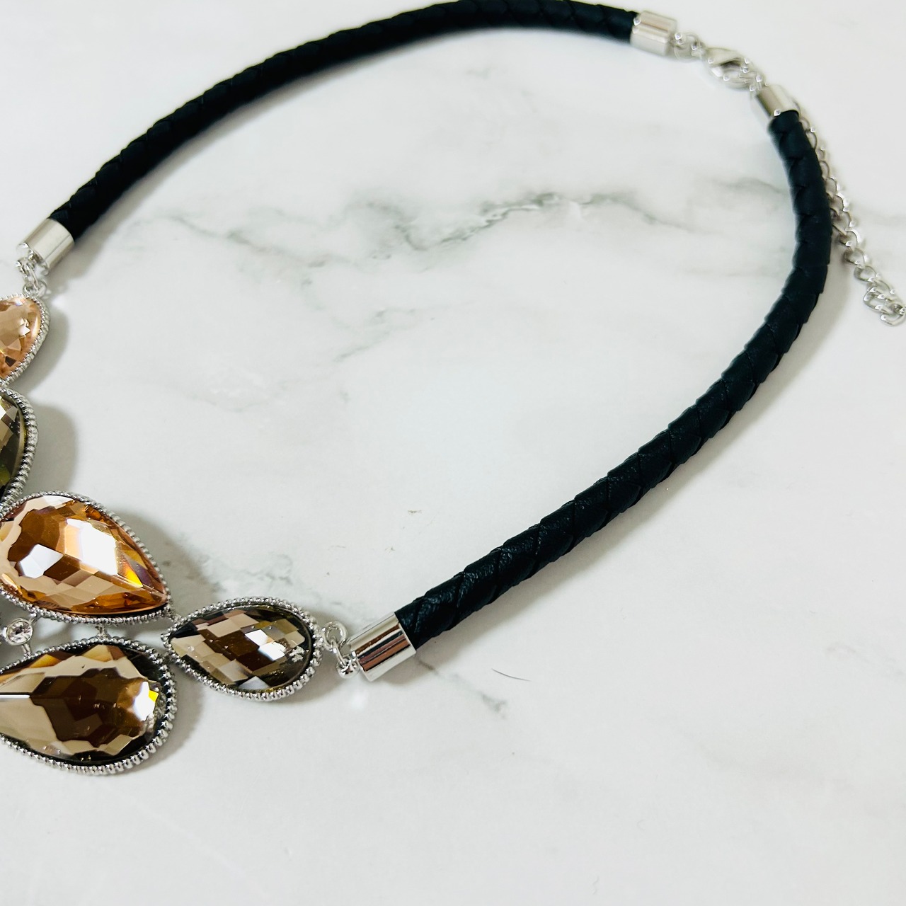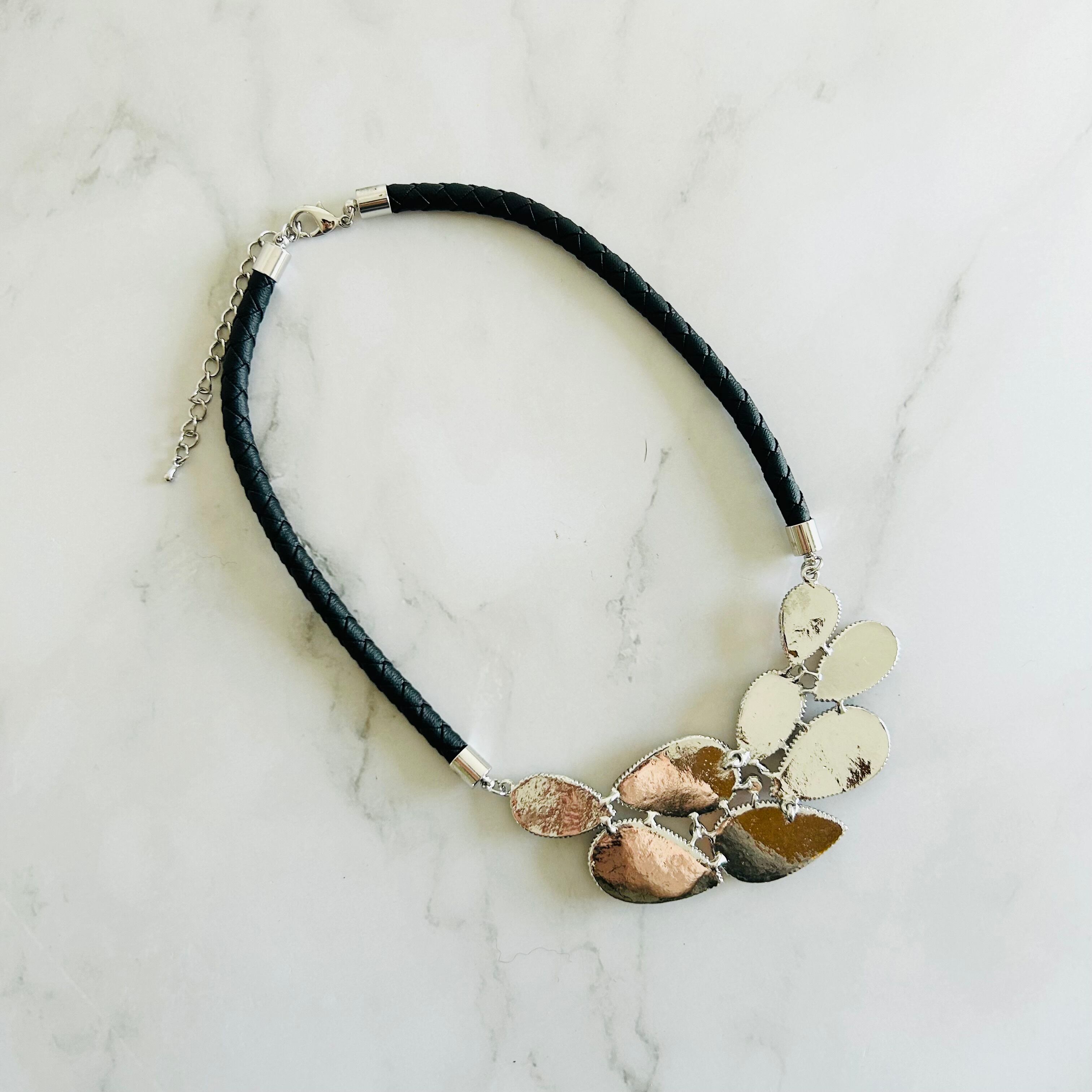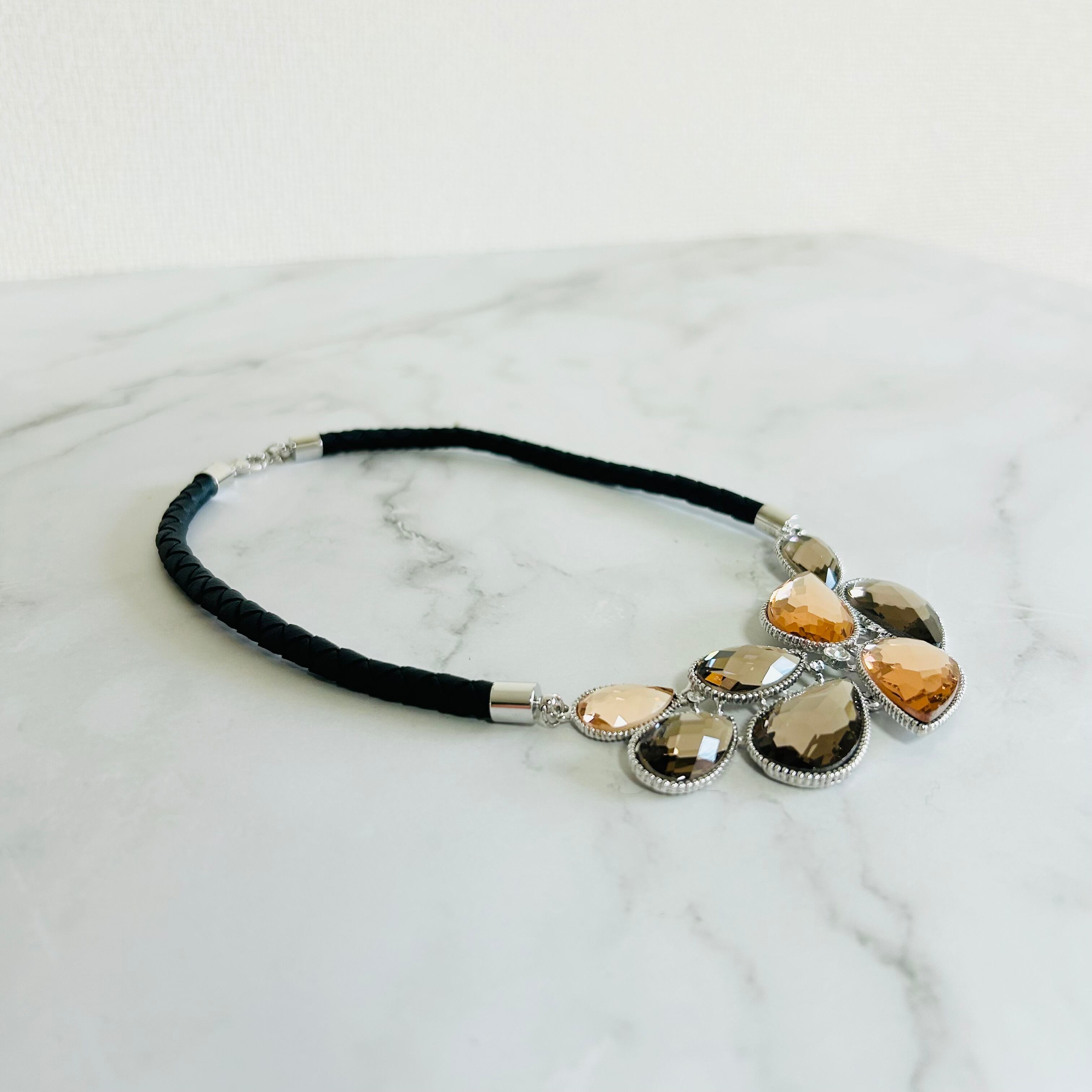 ピンクベージュ、グレージュ系、✖️シルバーカラー+ブラックのネックレスです。