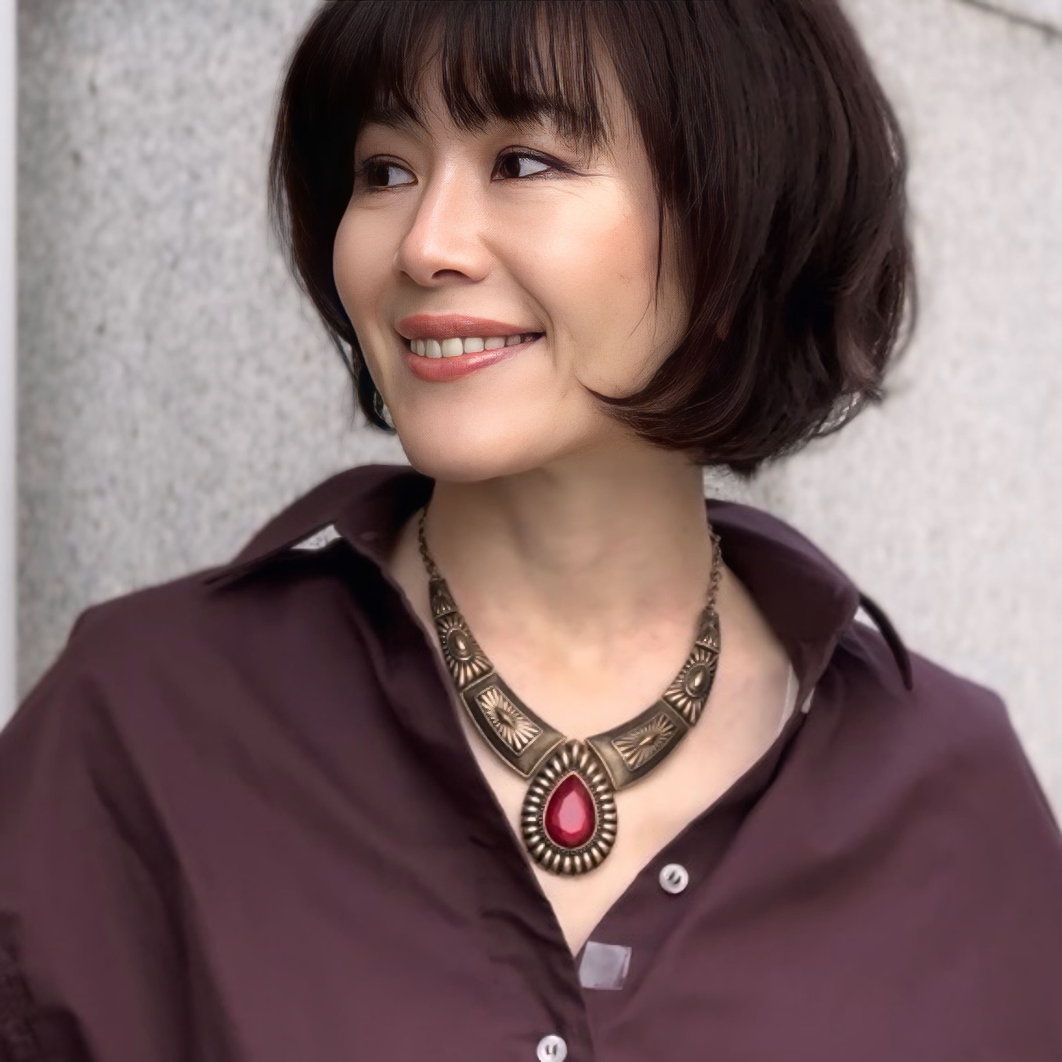 シンプルなトップスやニットの胸元に華を添える存在感は、つけるシーンを選ばず、カジュアルダウンからドレスアップまで幅広く活躍します。