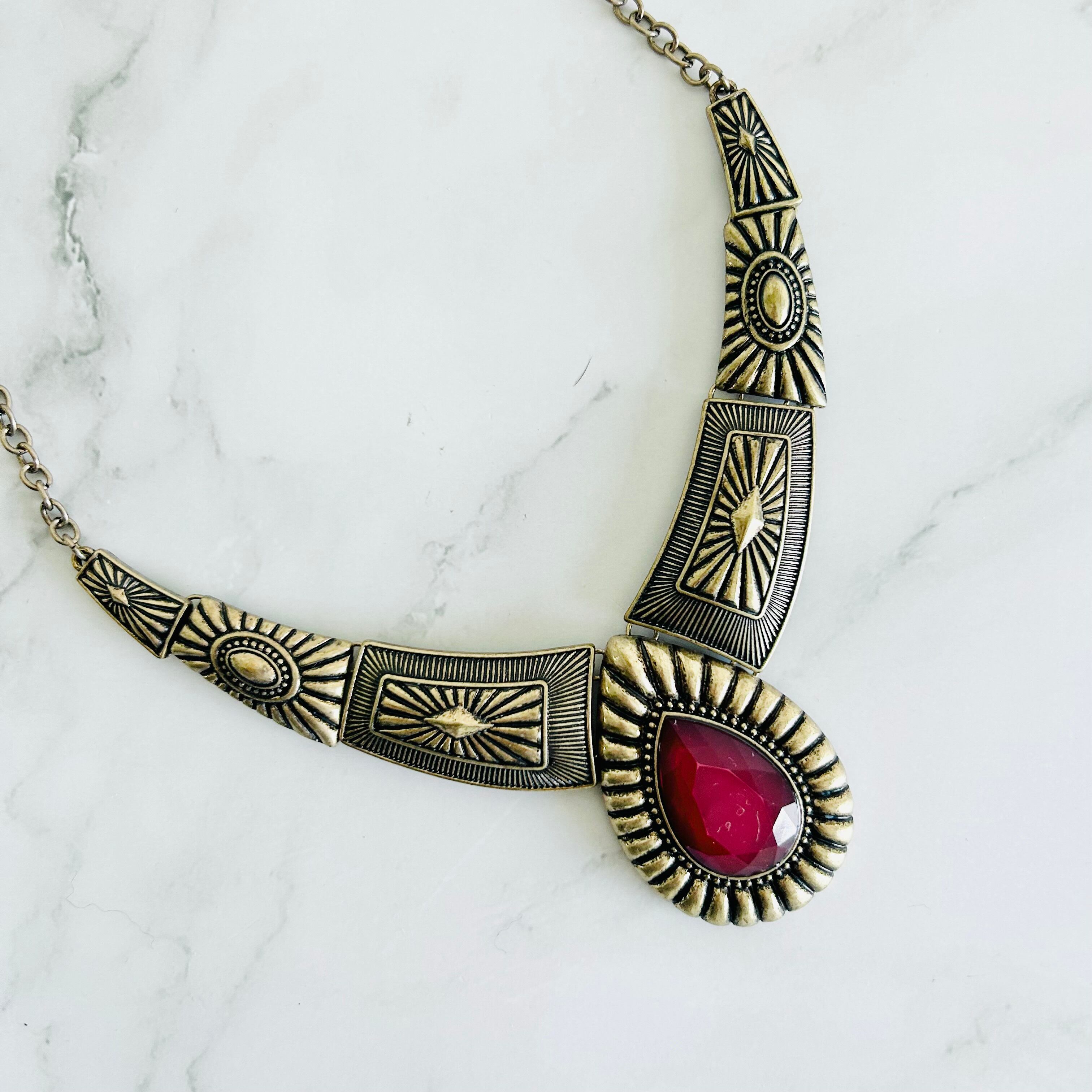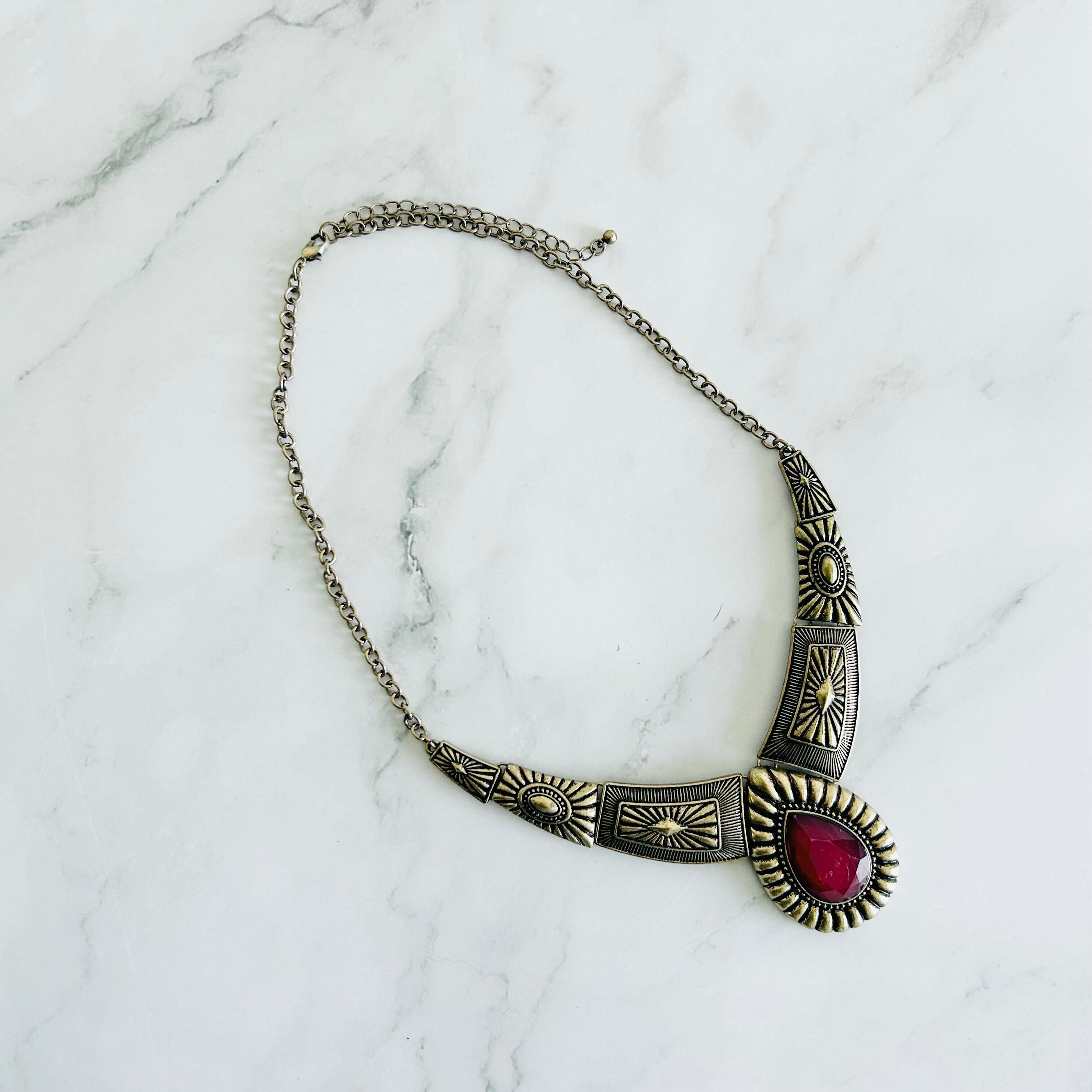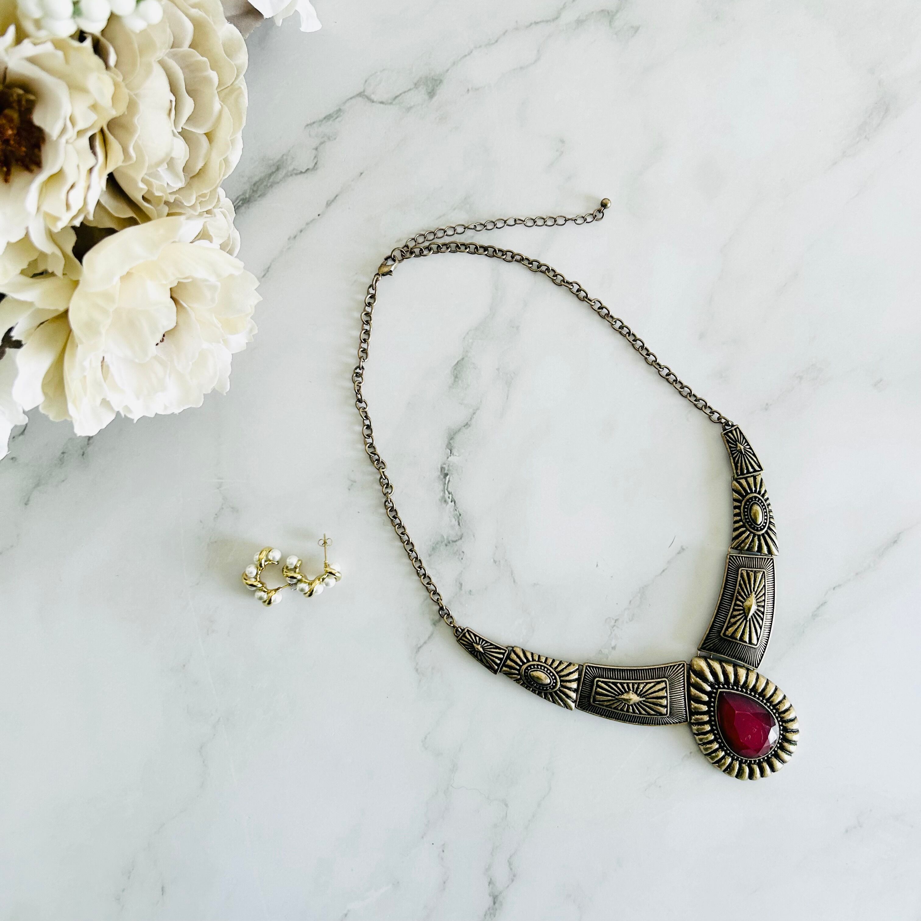 レッド✖️アンティークブロンズカラーのネックレスです。