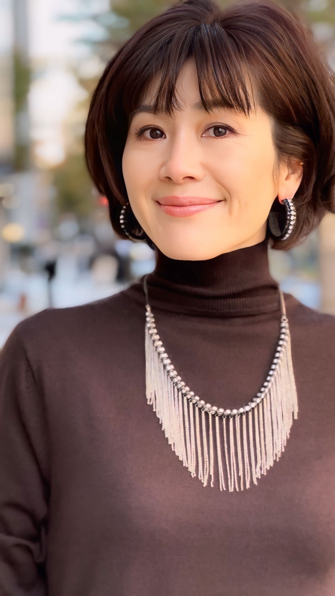丸襟やV襟に合わせるのはもちろん、シャツの襟の上からつけたり、シャツのインナーからチラッと覗かせるのもとても素敵です♪