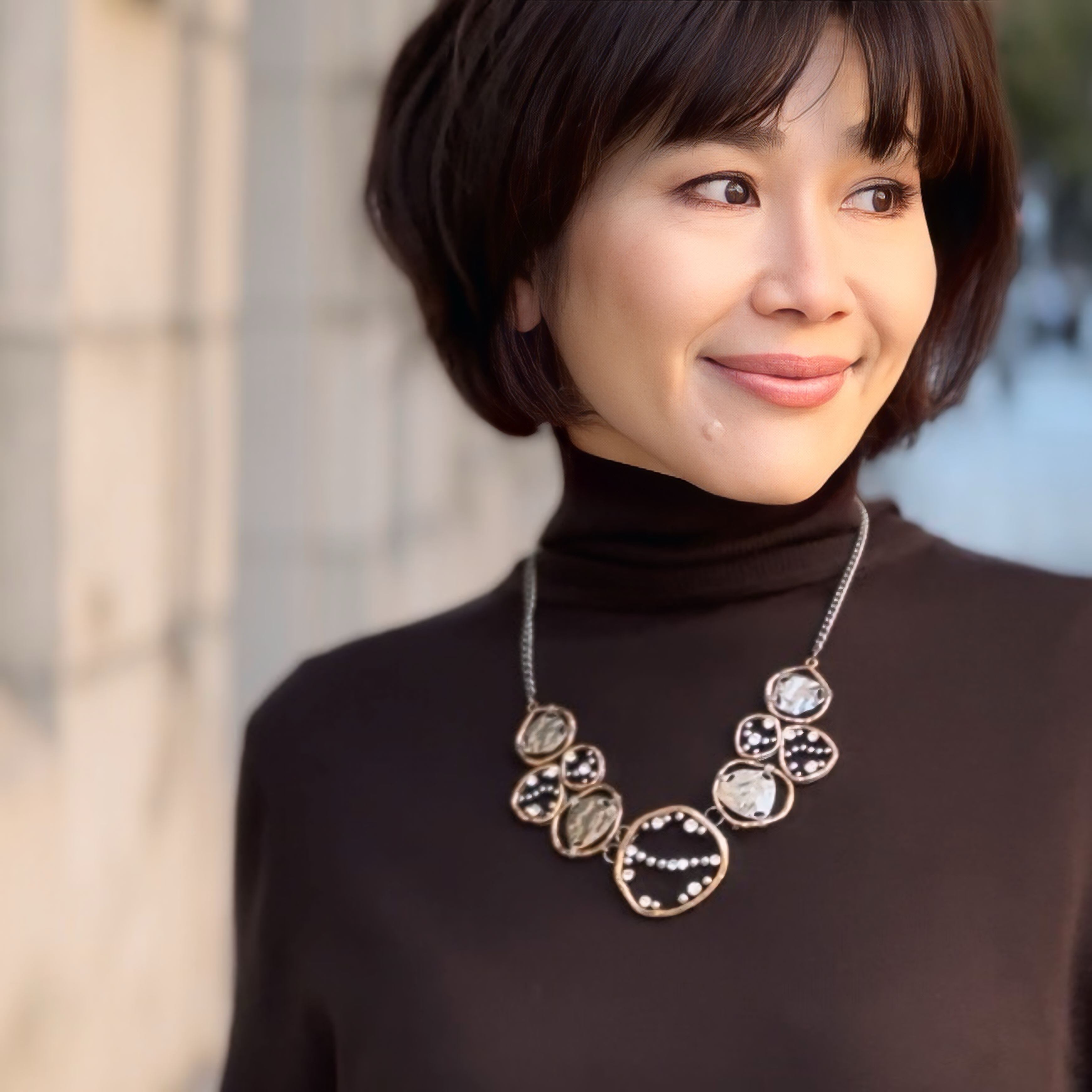 他にはないユニークなモチーフ達が首元を華やかに演出し、おしゃれな個性を演出してくれます☆