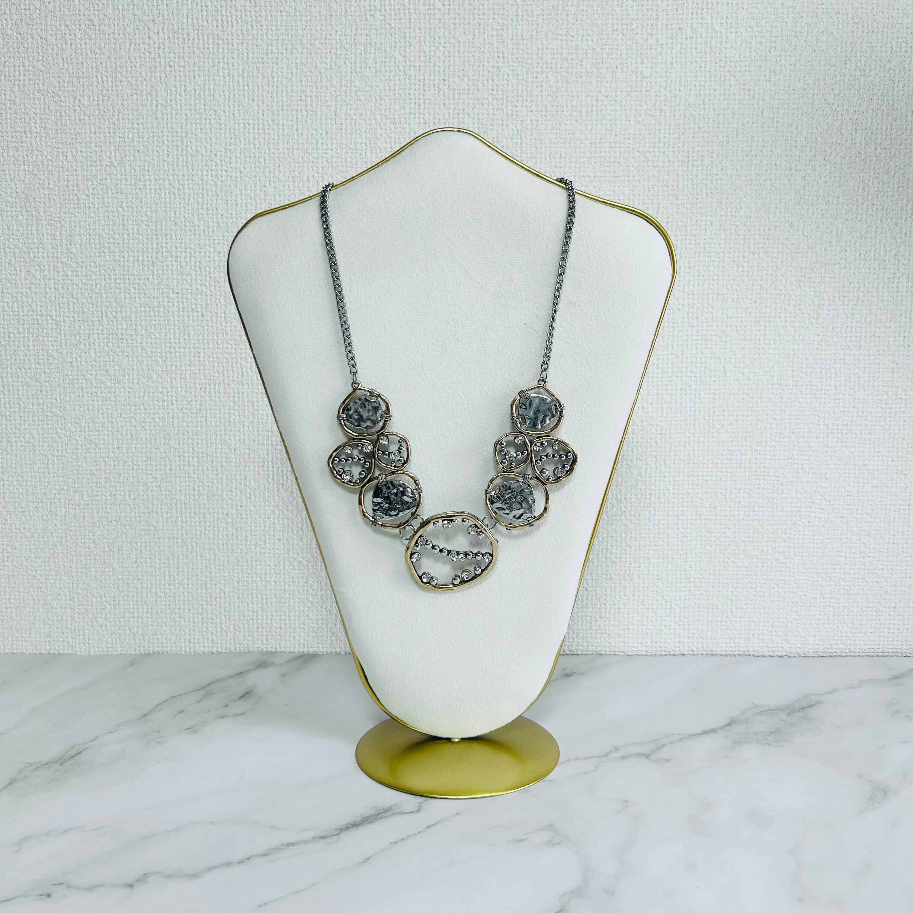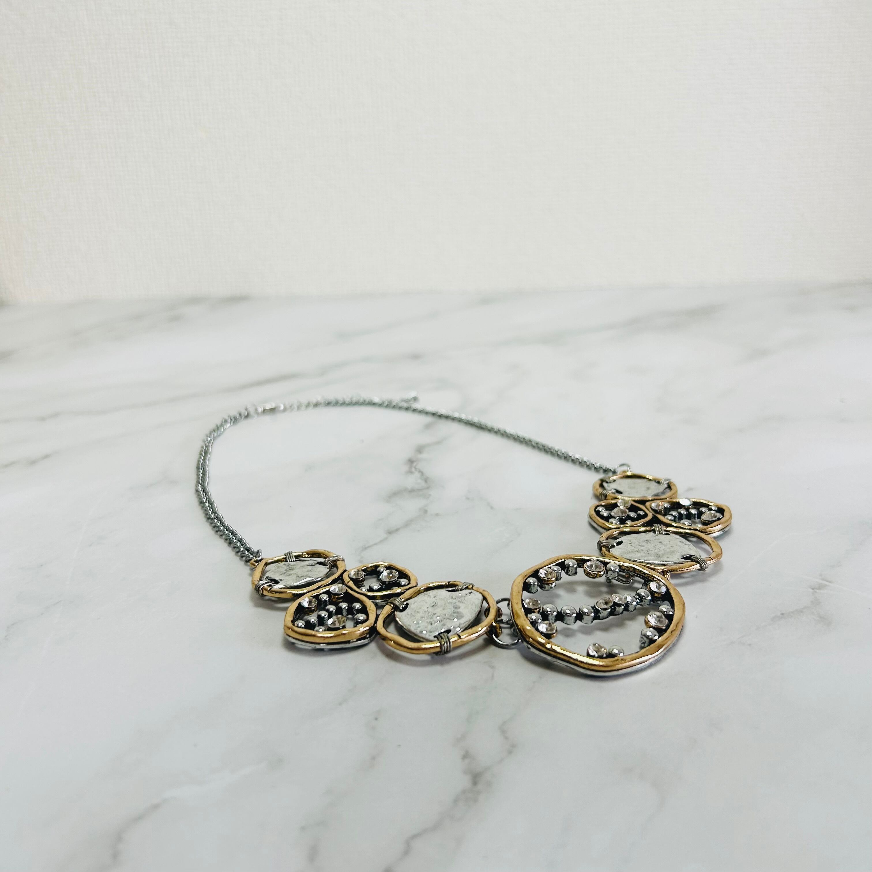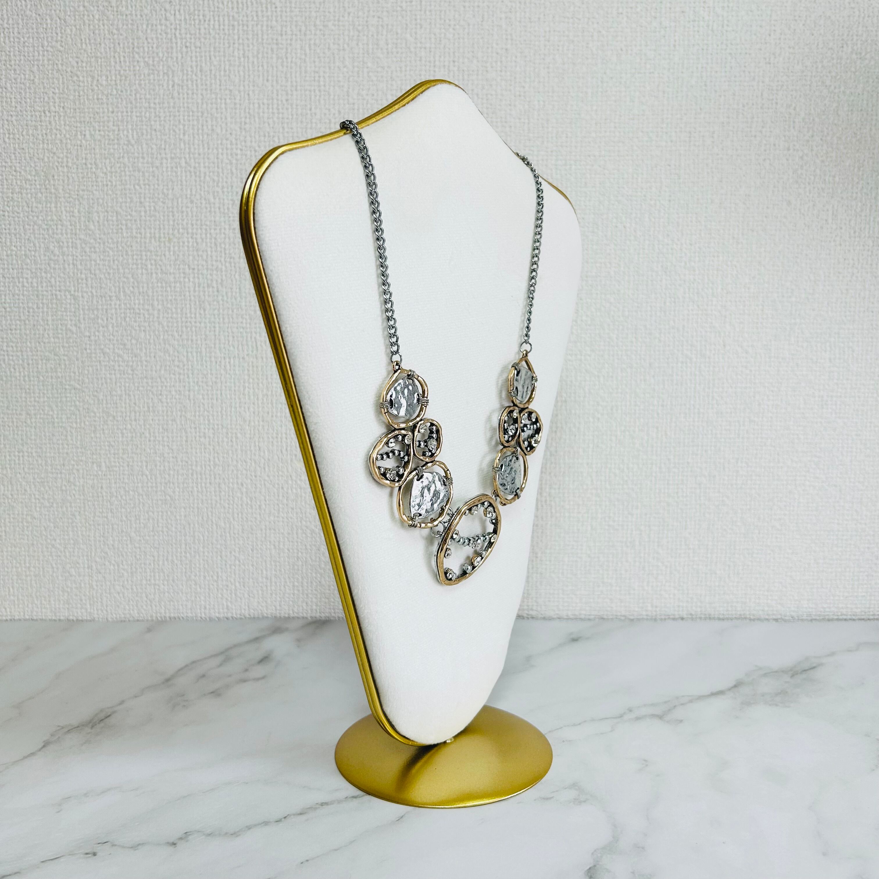 クリスタル、ゴールド、シルバーカラーのネックレスです。