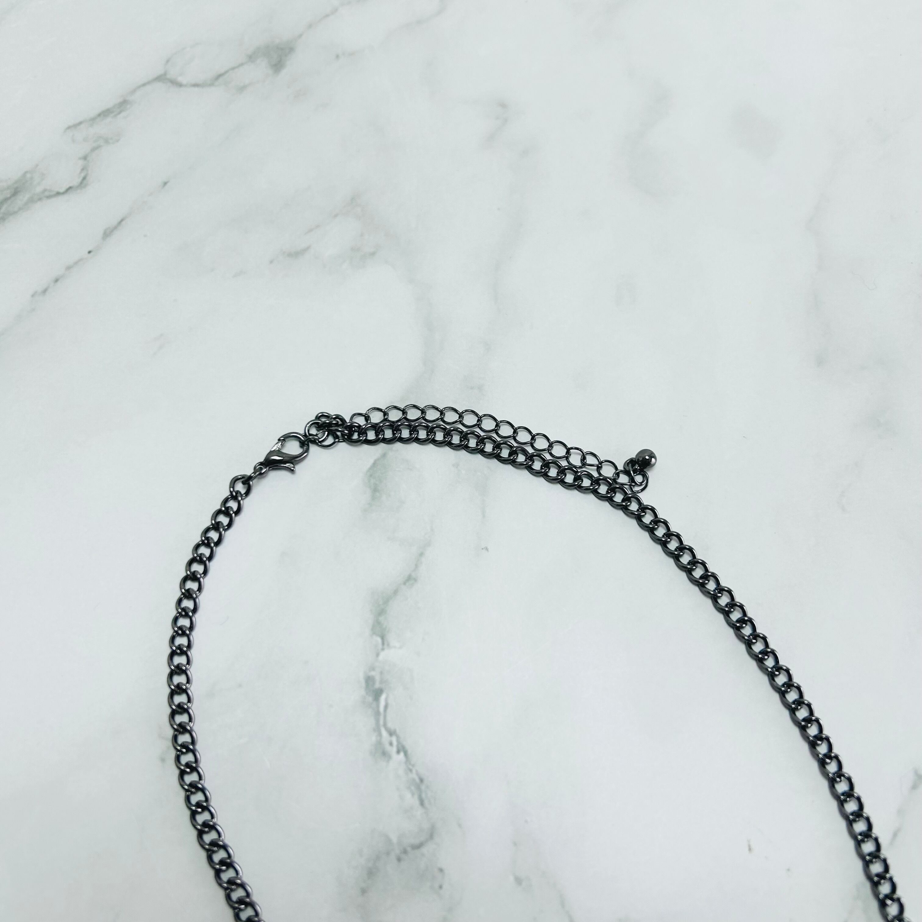 グレー、メタルカラー✖️ブラックメタルカラーのネックレスです。