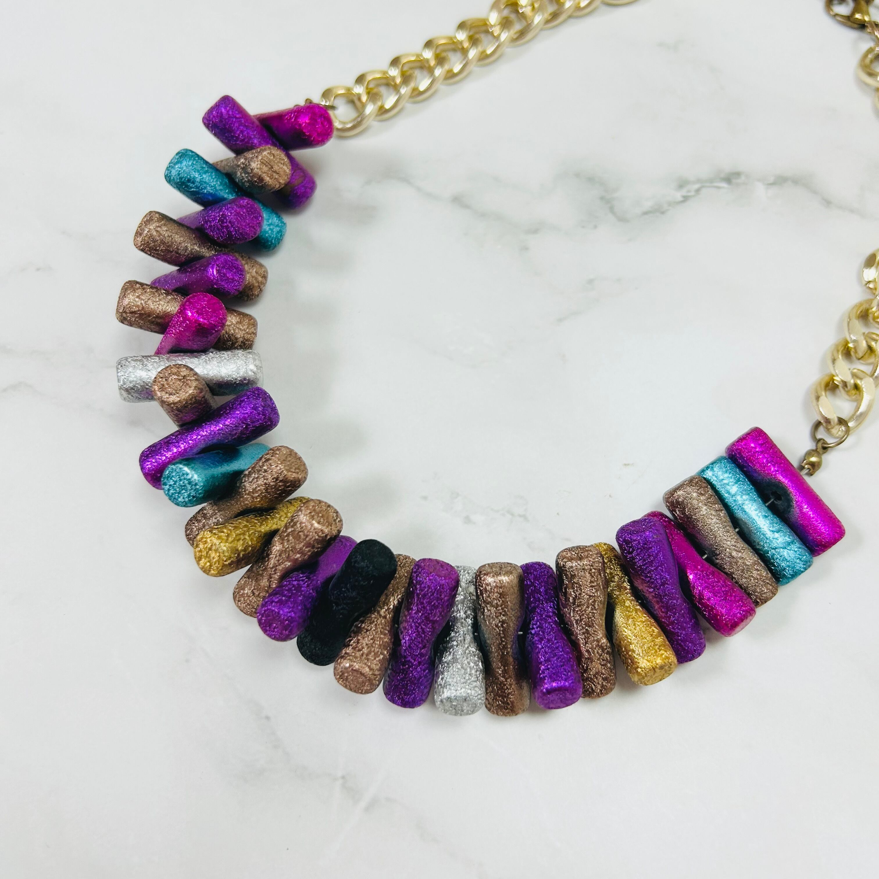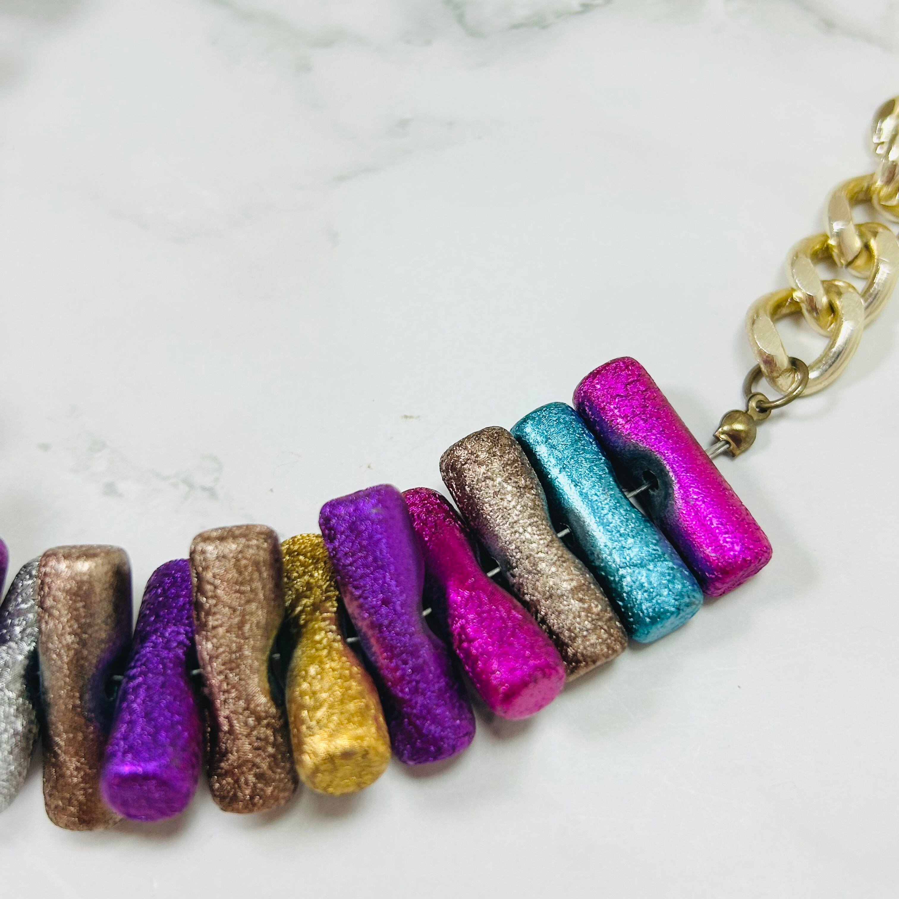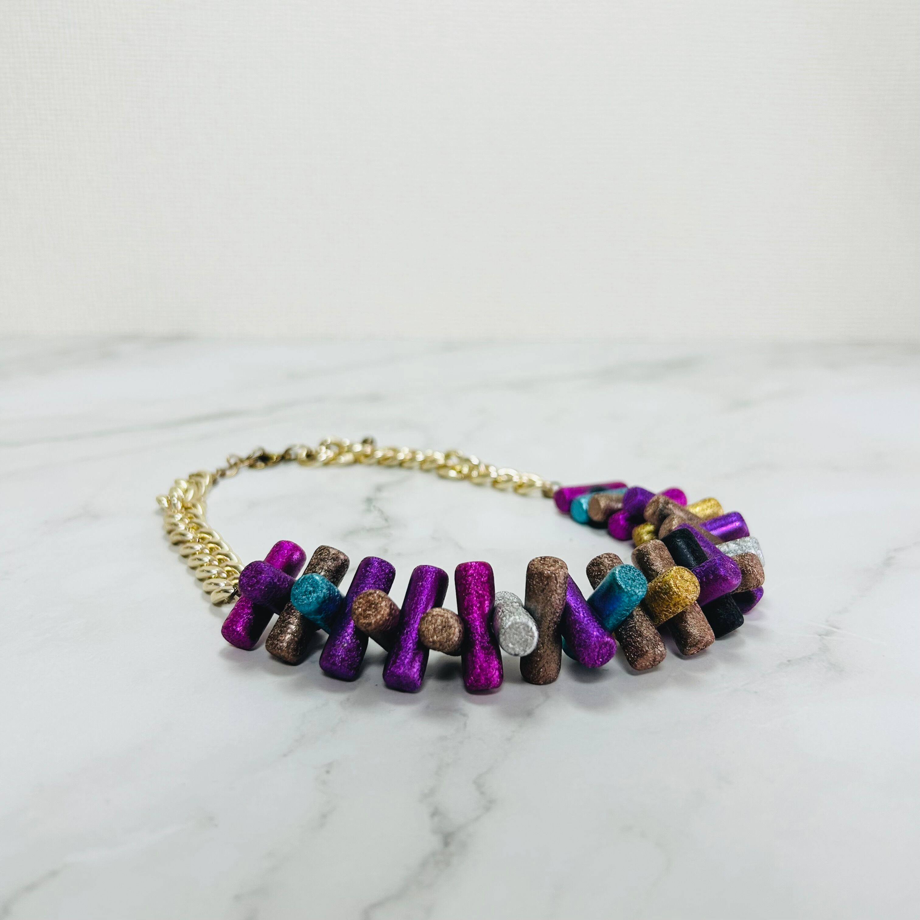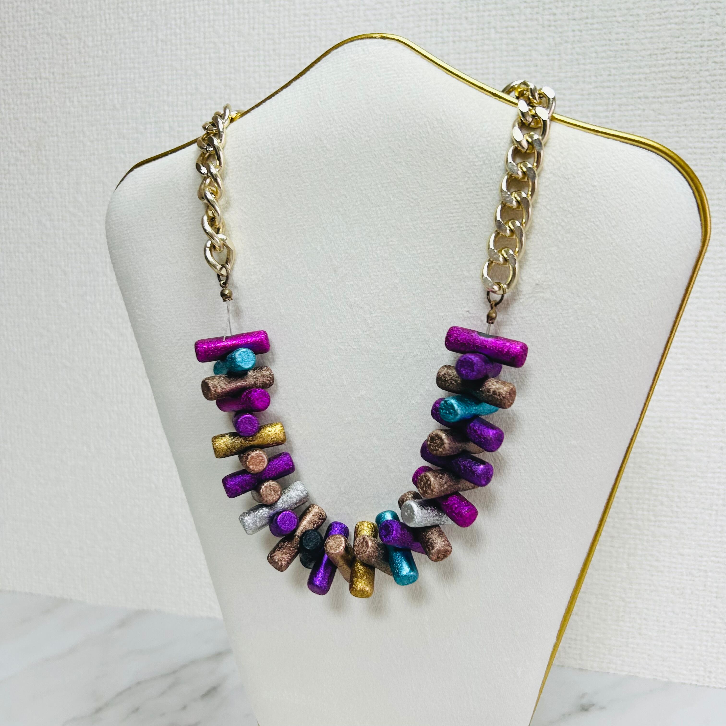 マルチカラー✖️アンティークゴールドカラーのネックレスです。