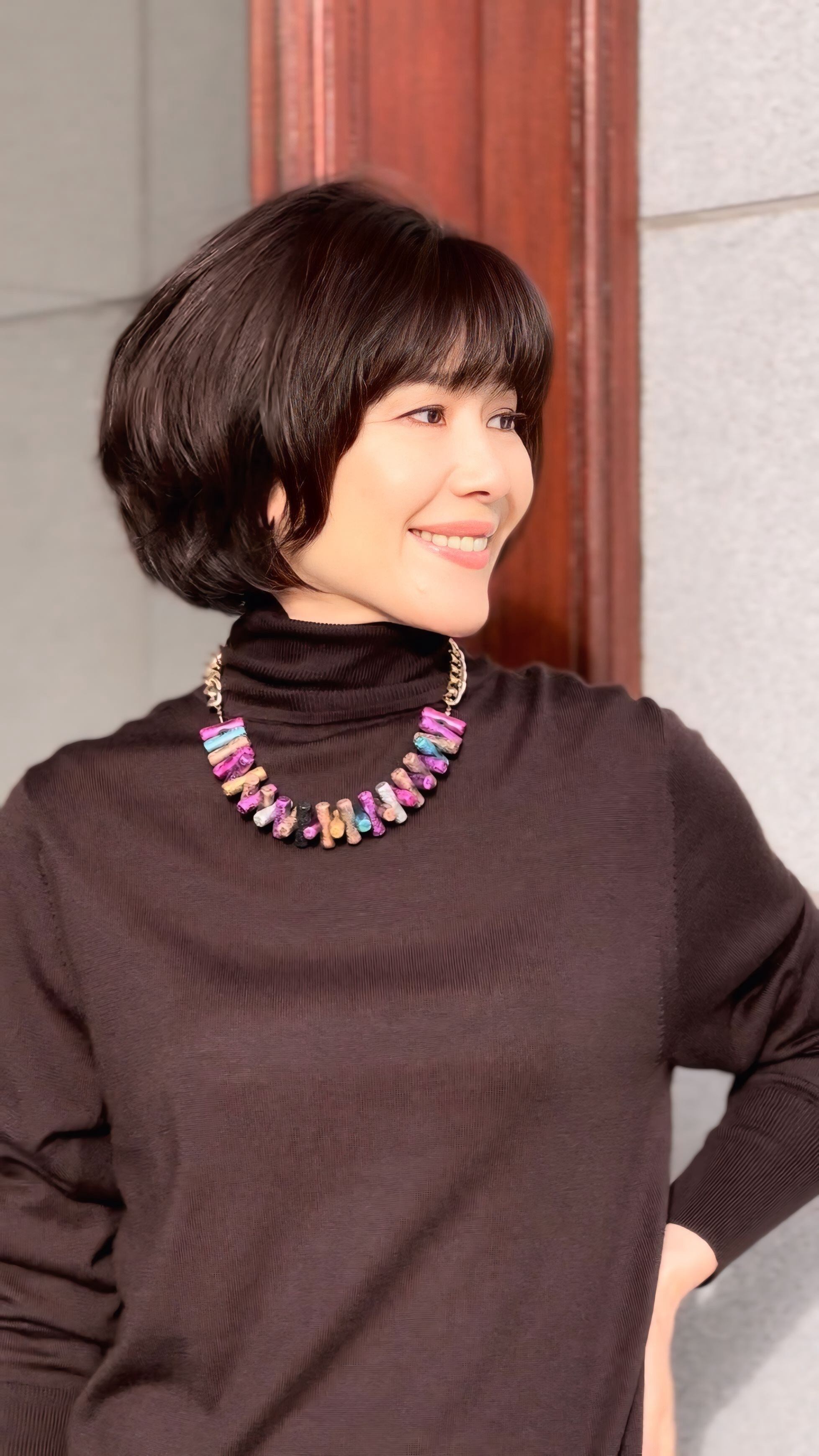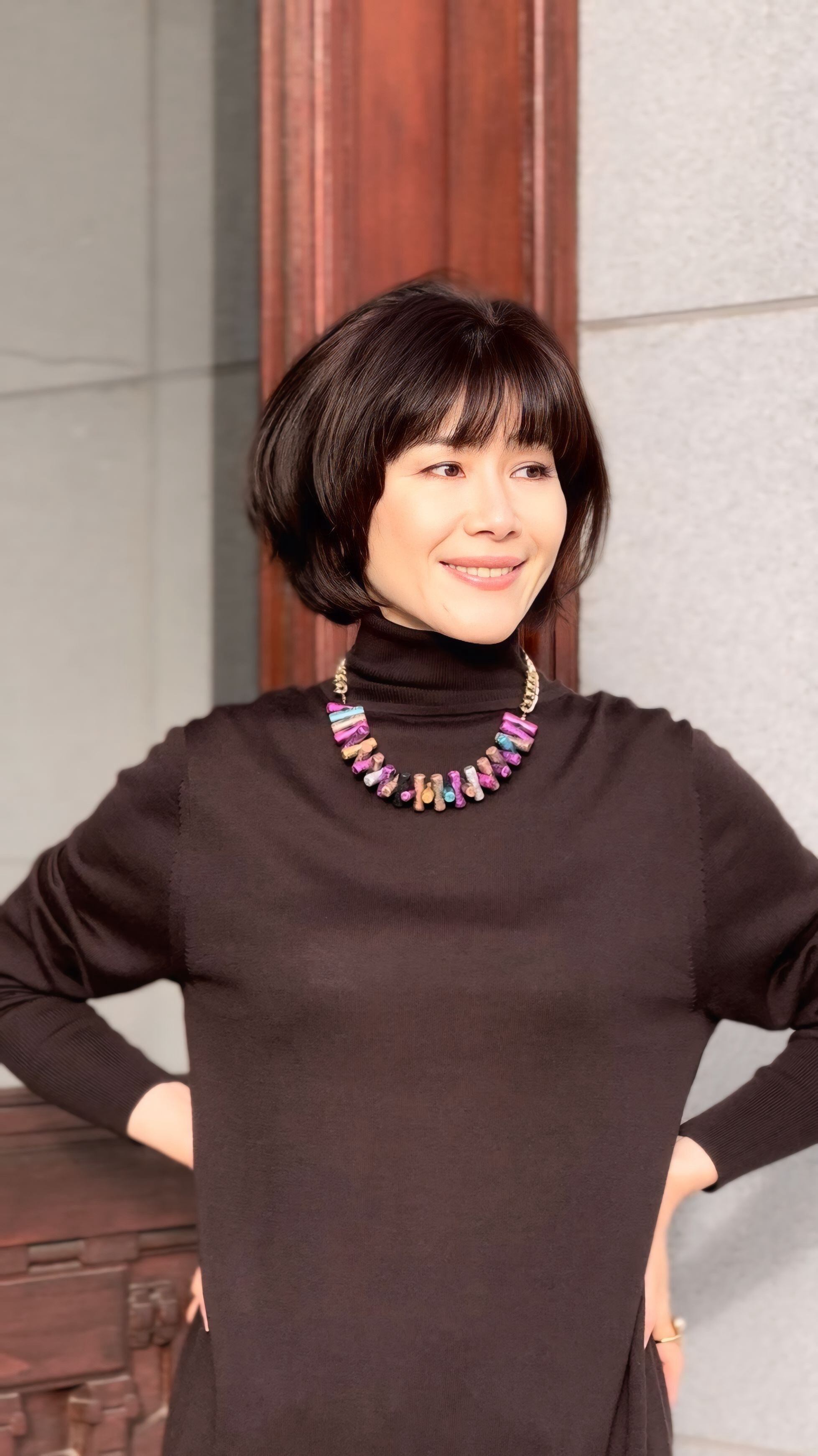 暗くなりがちな冬のスタイリングに色味をプラスしたい時におすすめしたいネックレスです!
