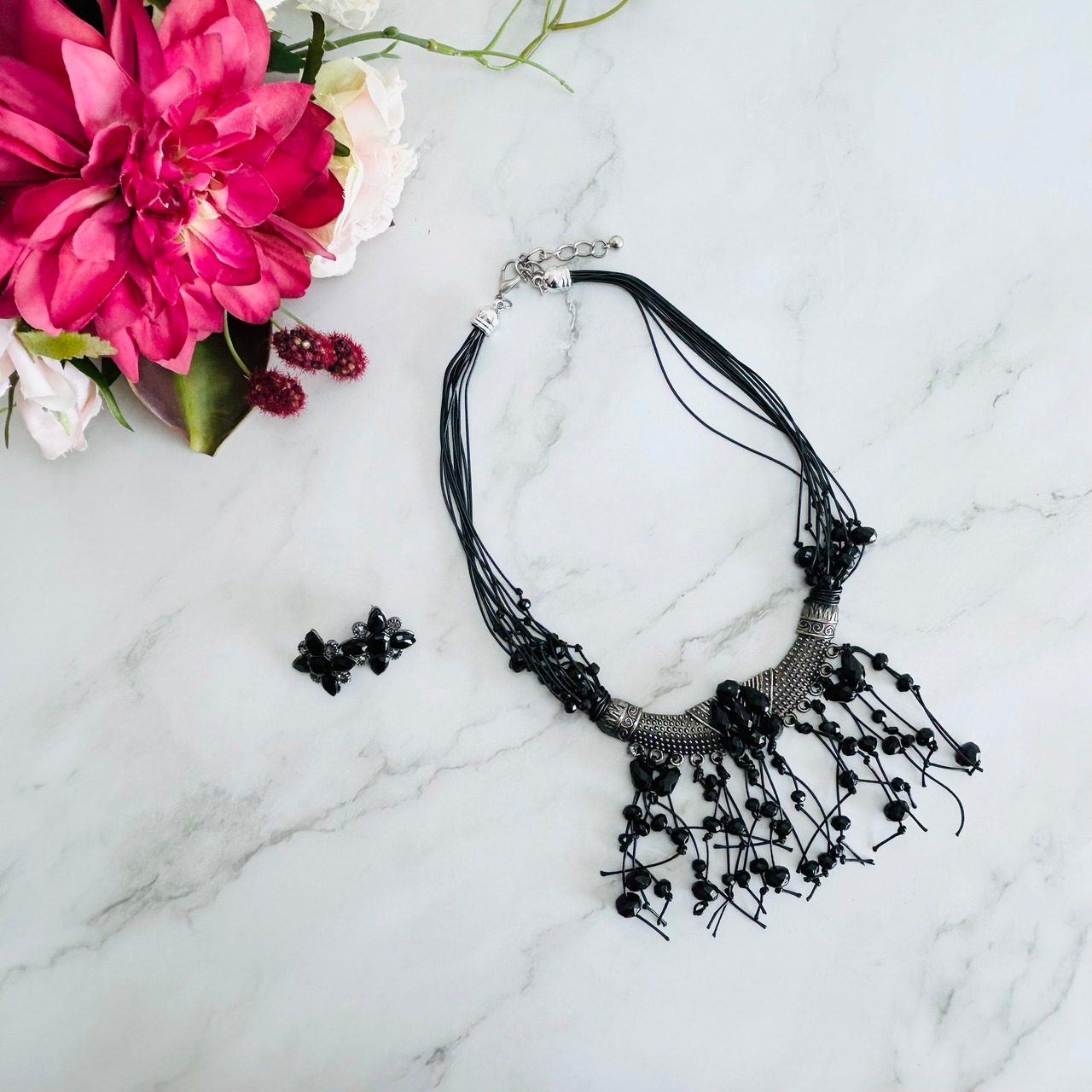 ブラックビーズのクールな煌きが沈みがちな冬のスタイルにも洗練されたシックな魅力をアップさせます✨
