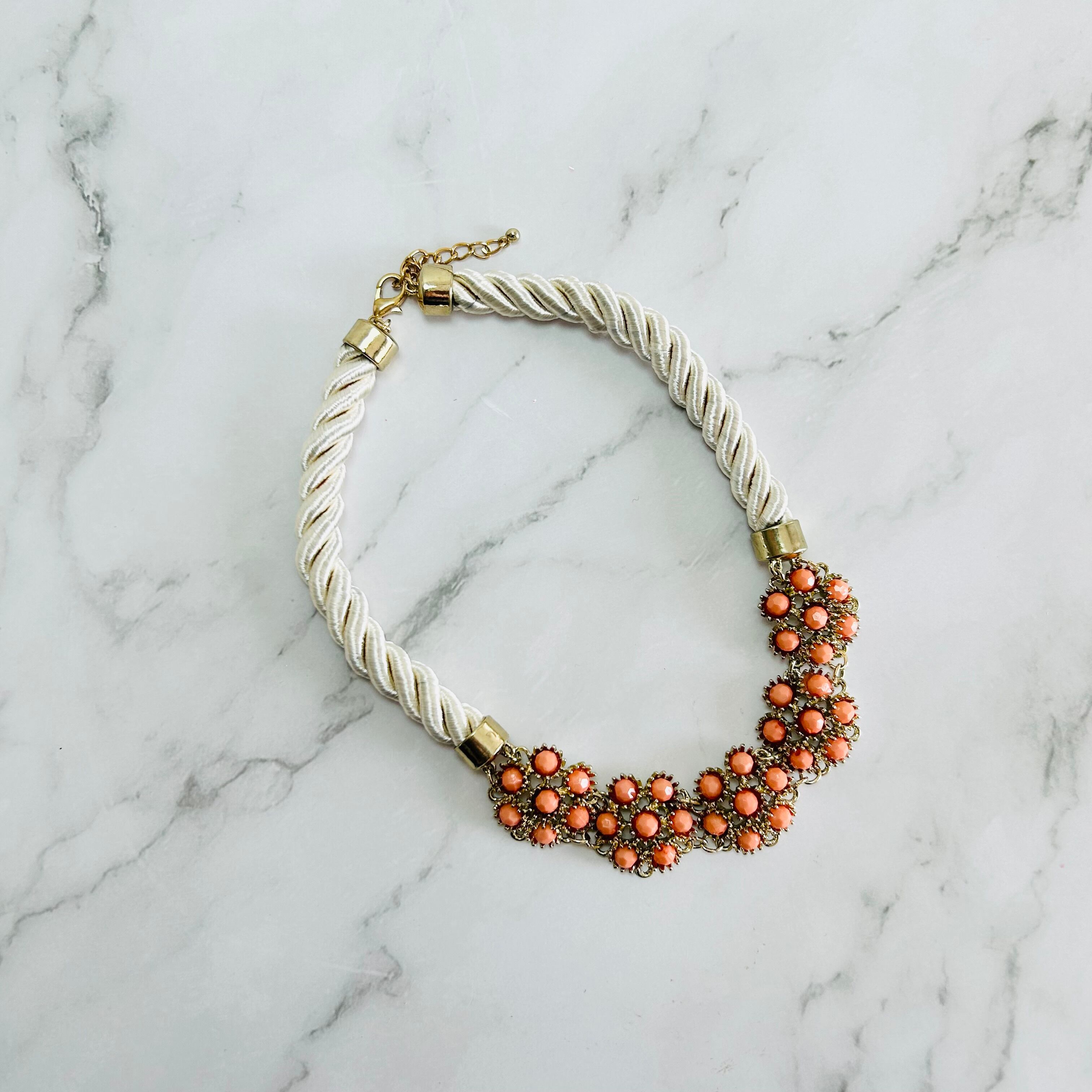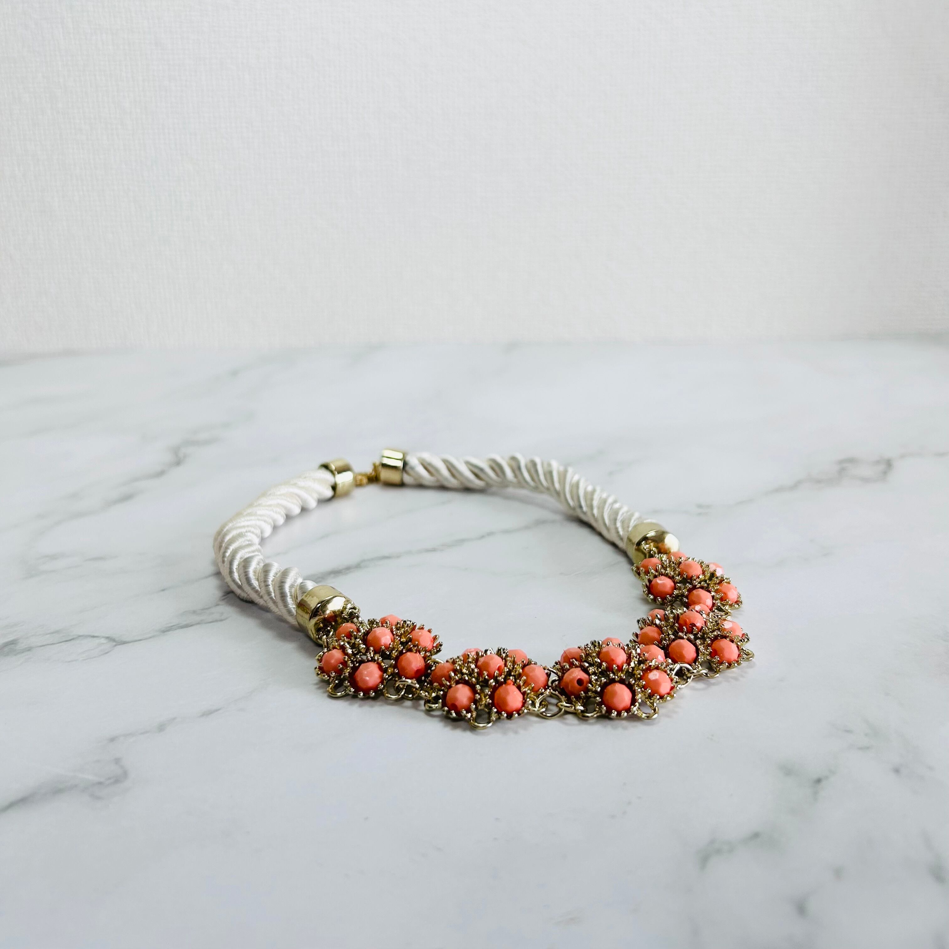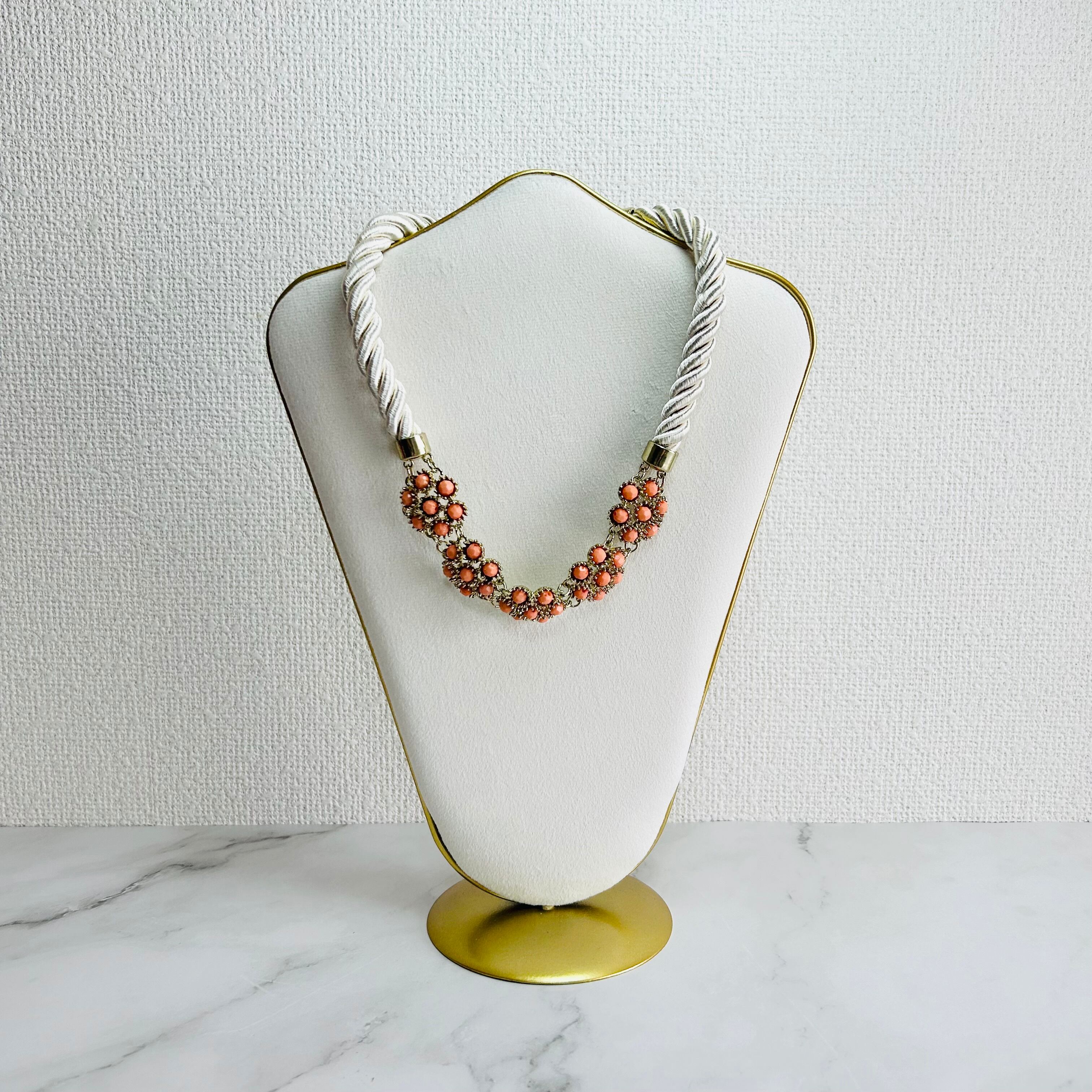 オレンジ、アイボリー✖️アンティークゴールドカラーのネックレスです。