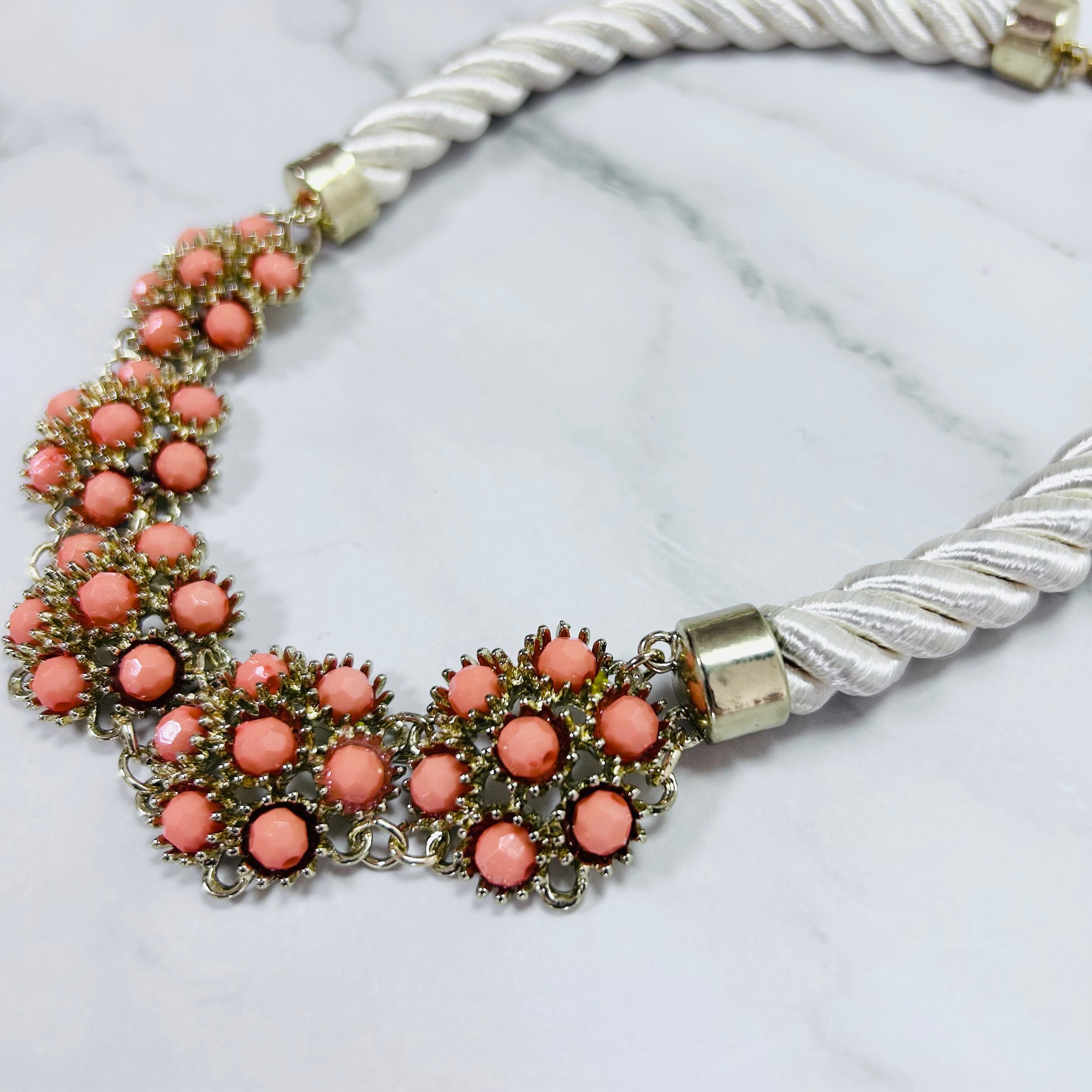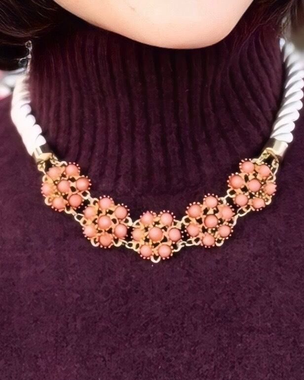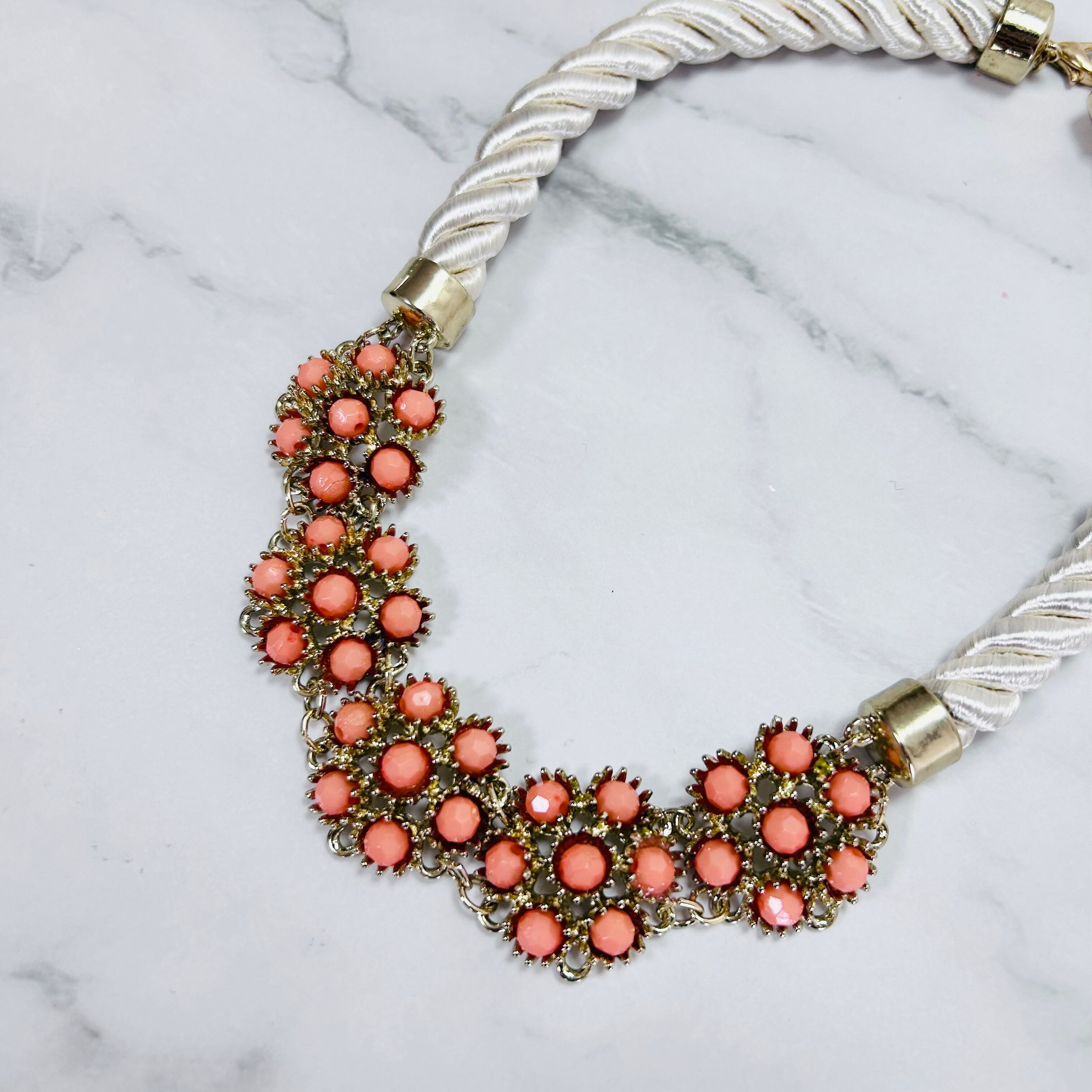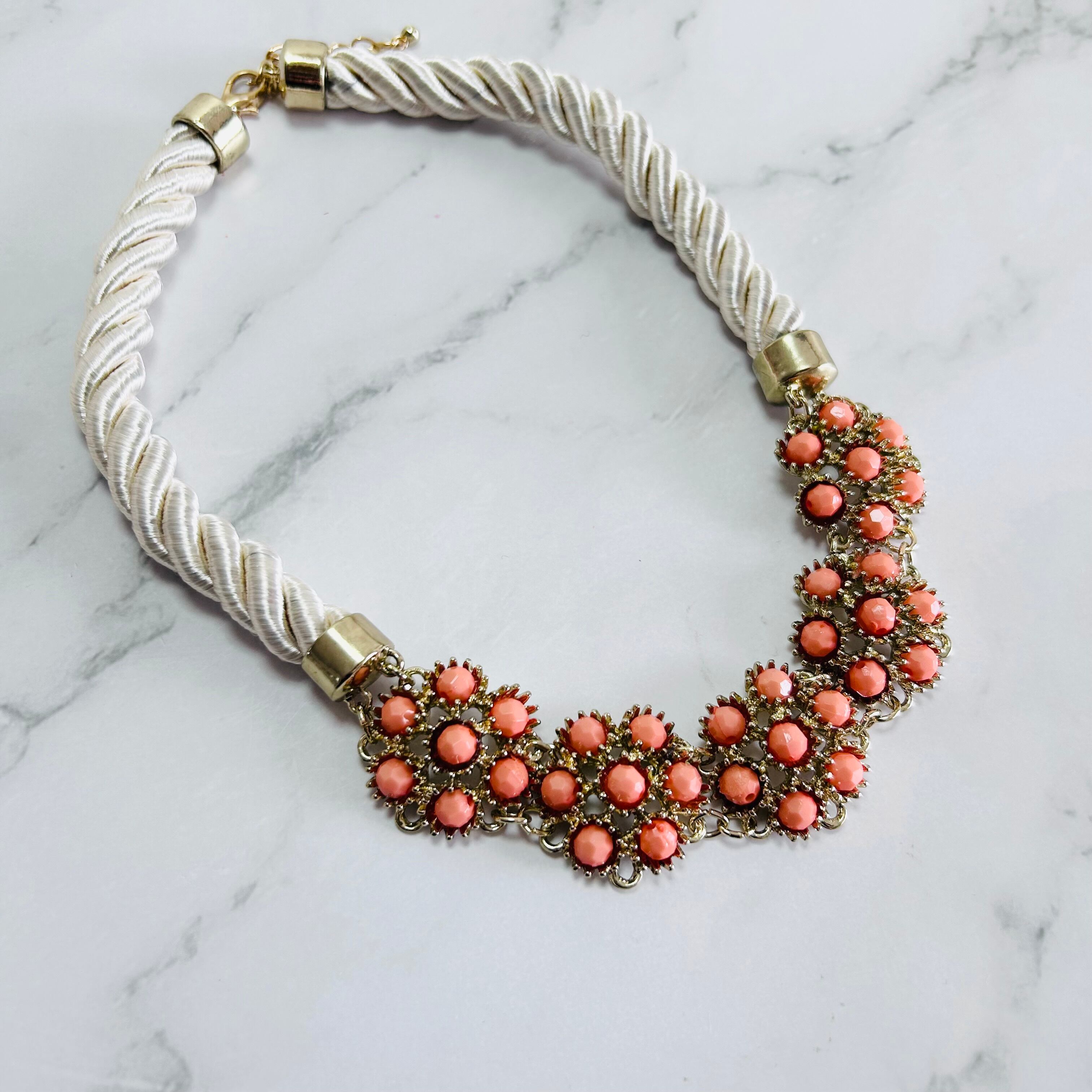 オレンジ、アイボリー✖️アンティークゴールドカラーのネックレスです。