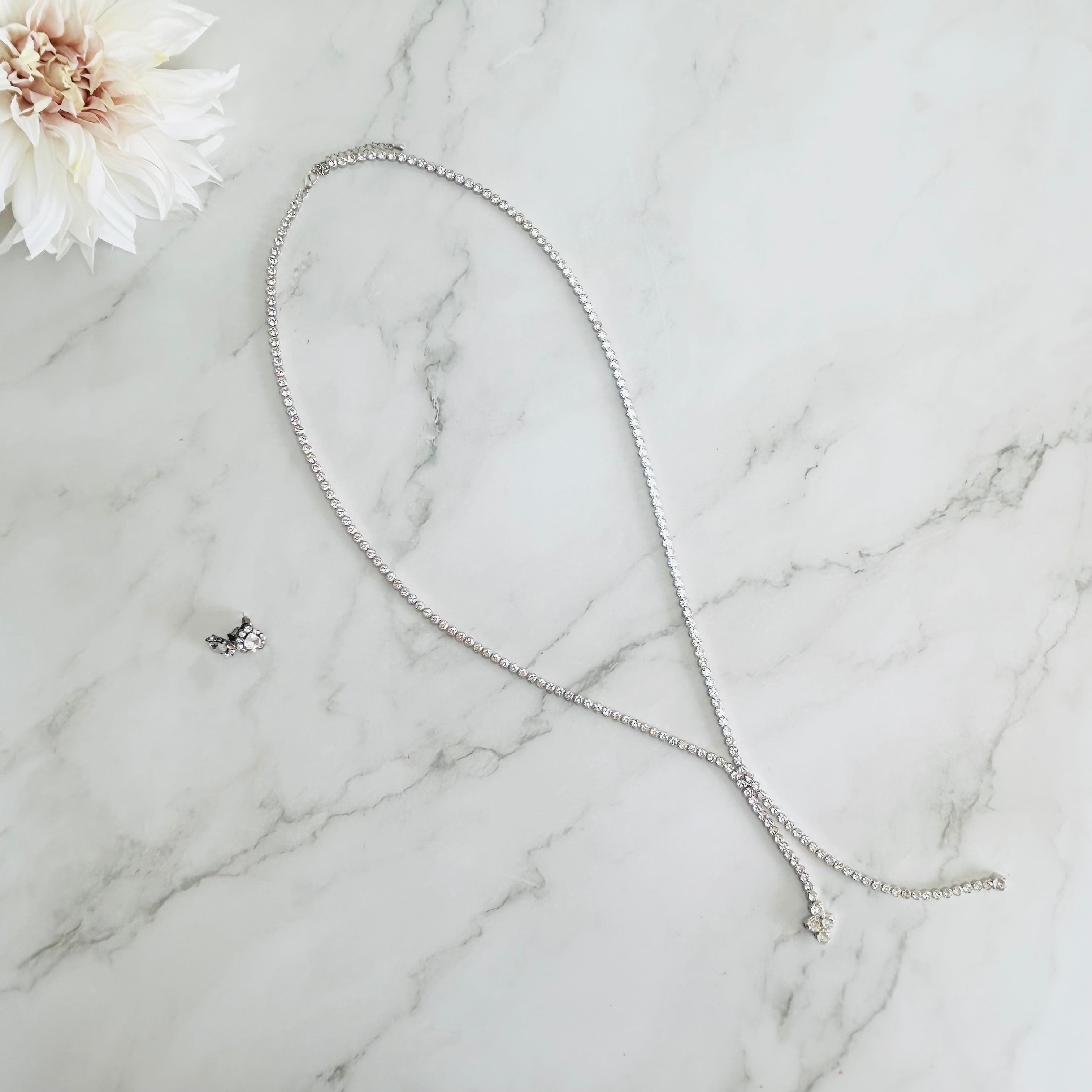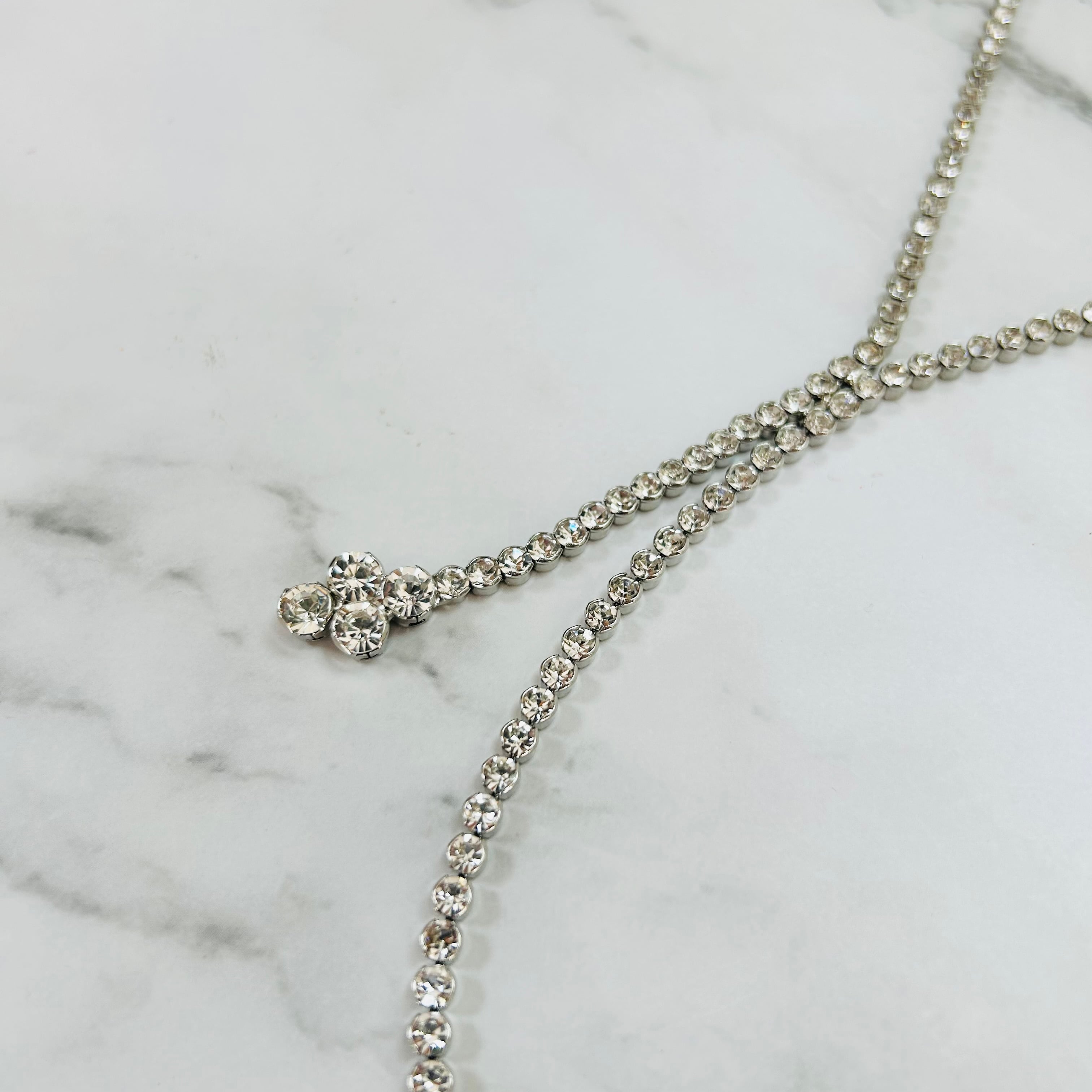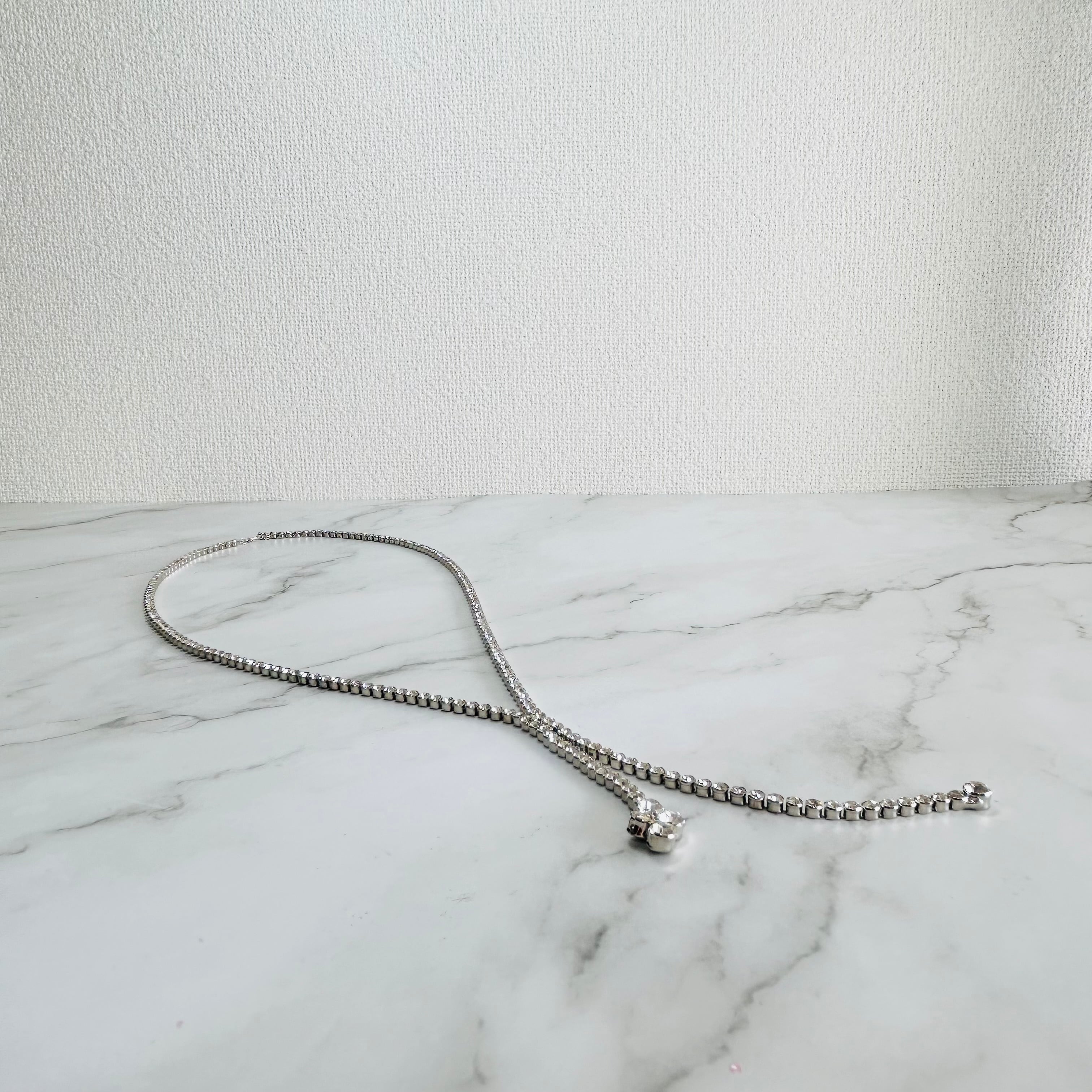 クリスタルのビジューのチェーンをラリエットタイプに仕上げたシンプルなデザインです。