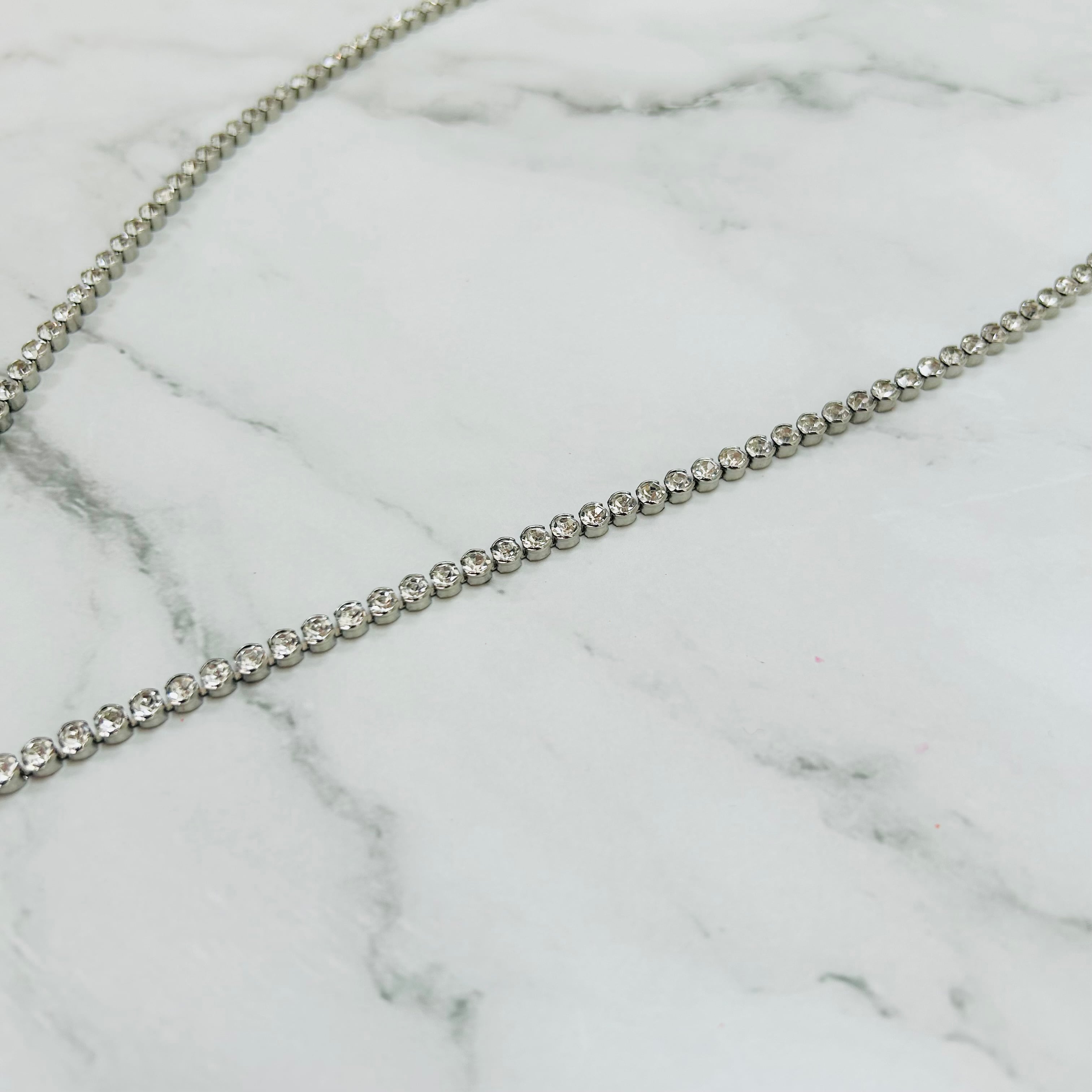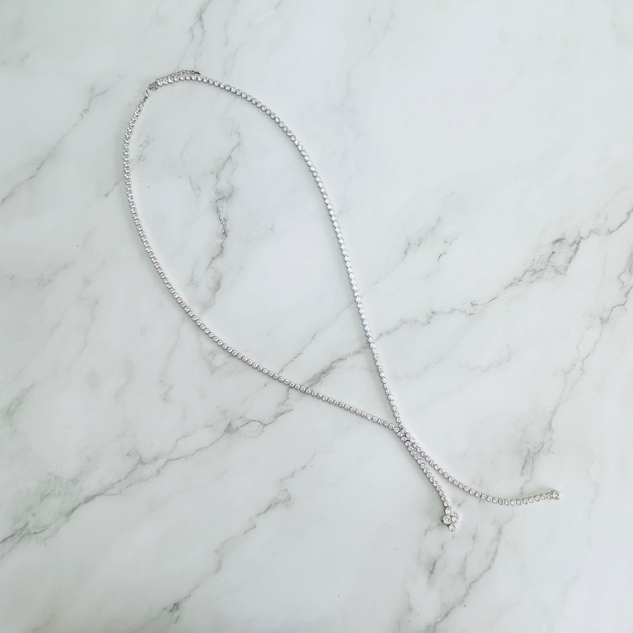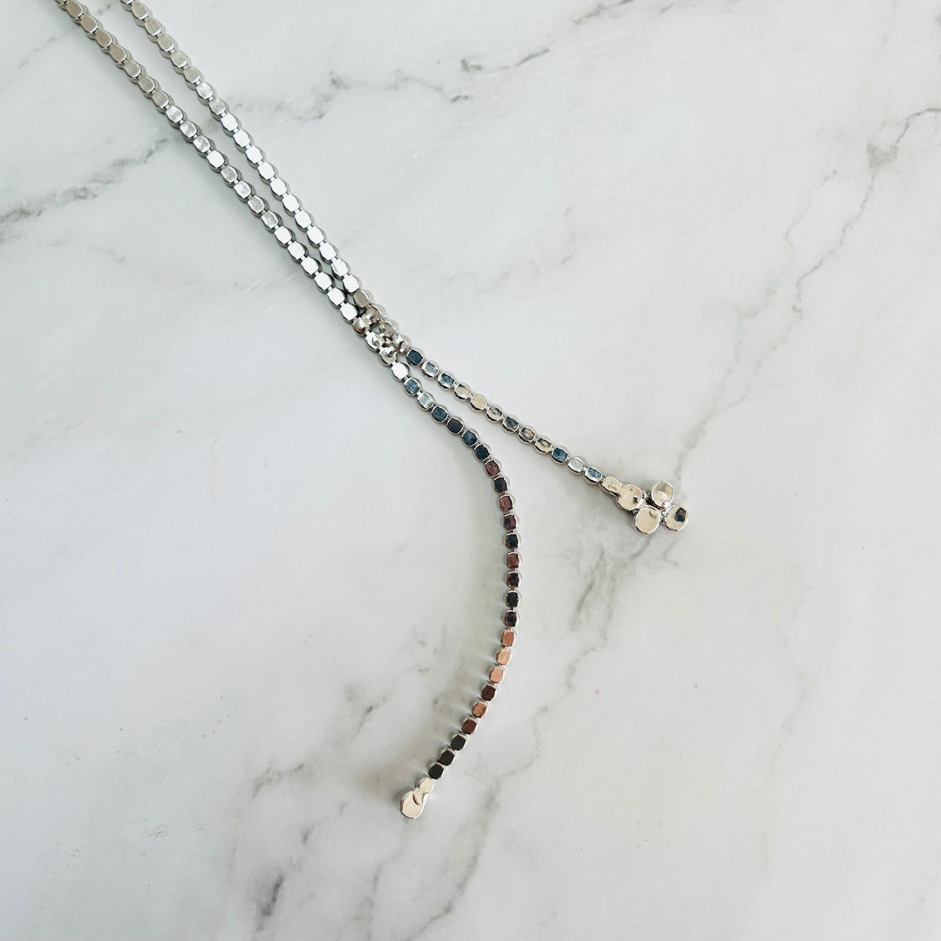 クリスタルのビジューのチェーンをラリエットタイプに仕上げたシンプルなデザインです。