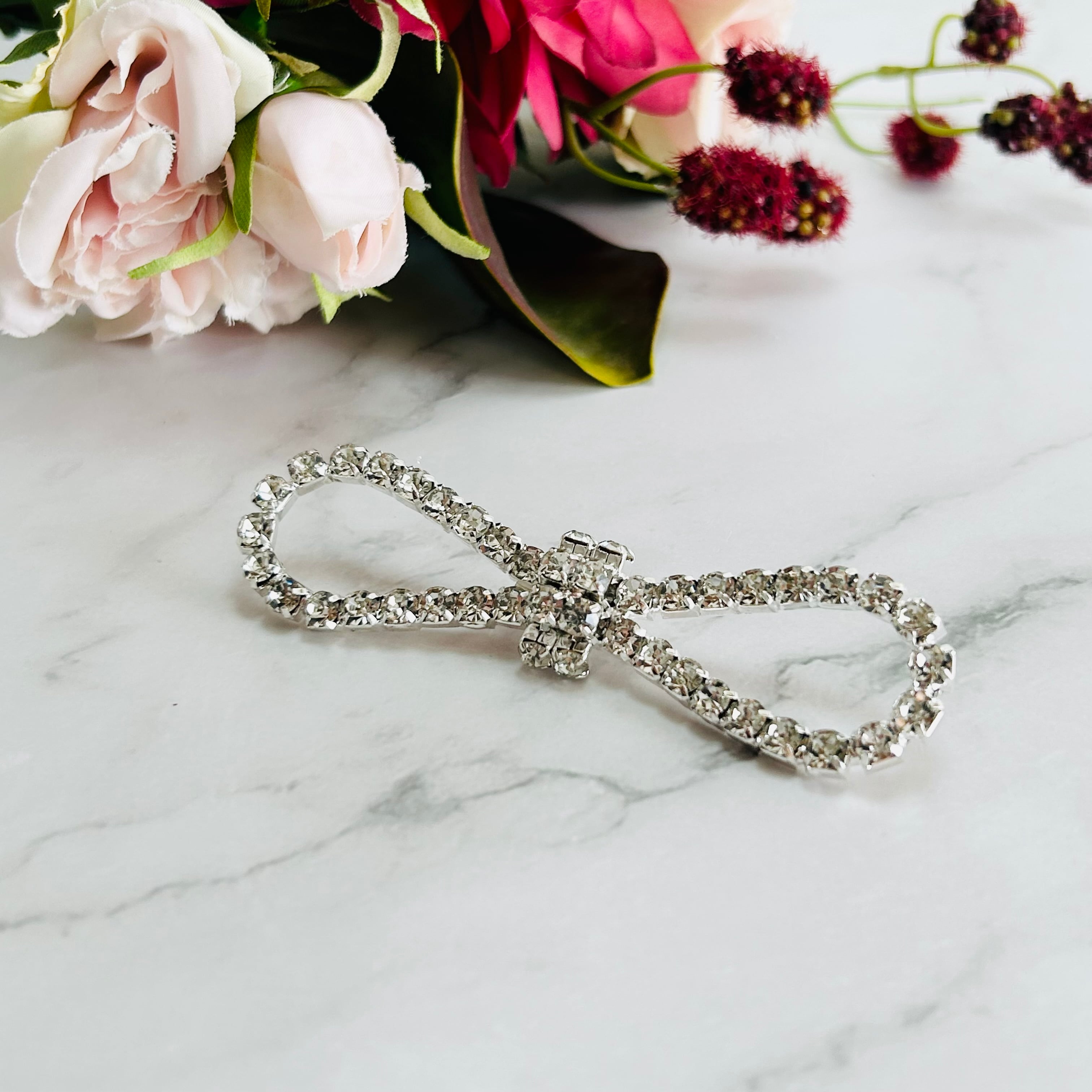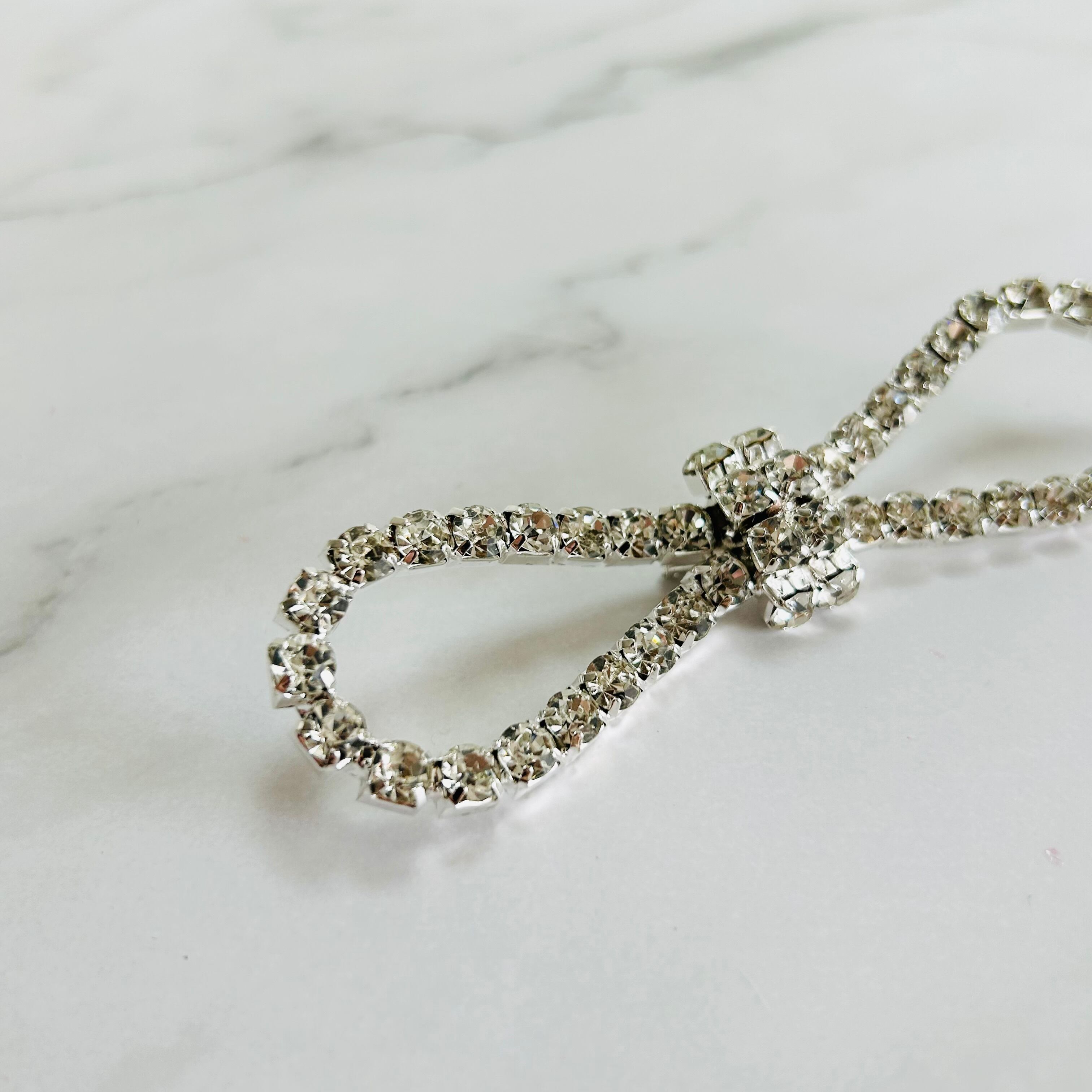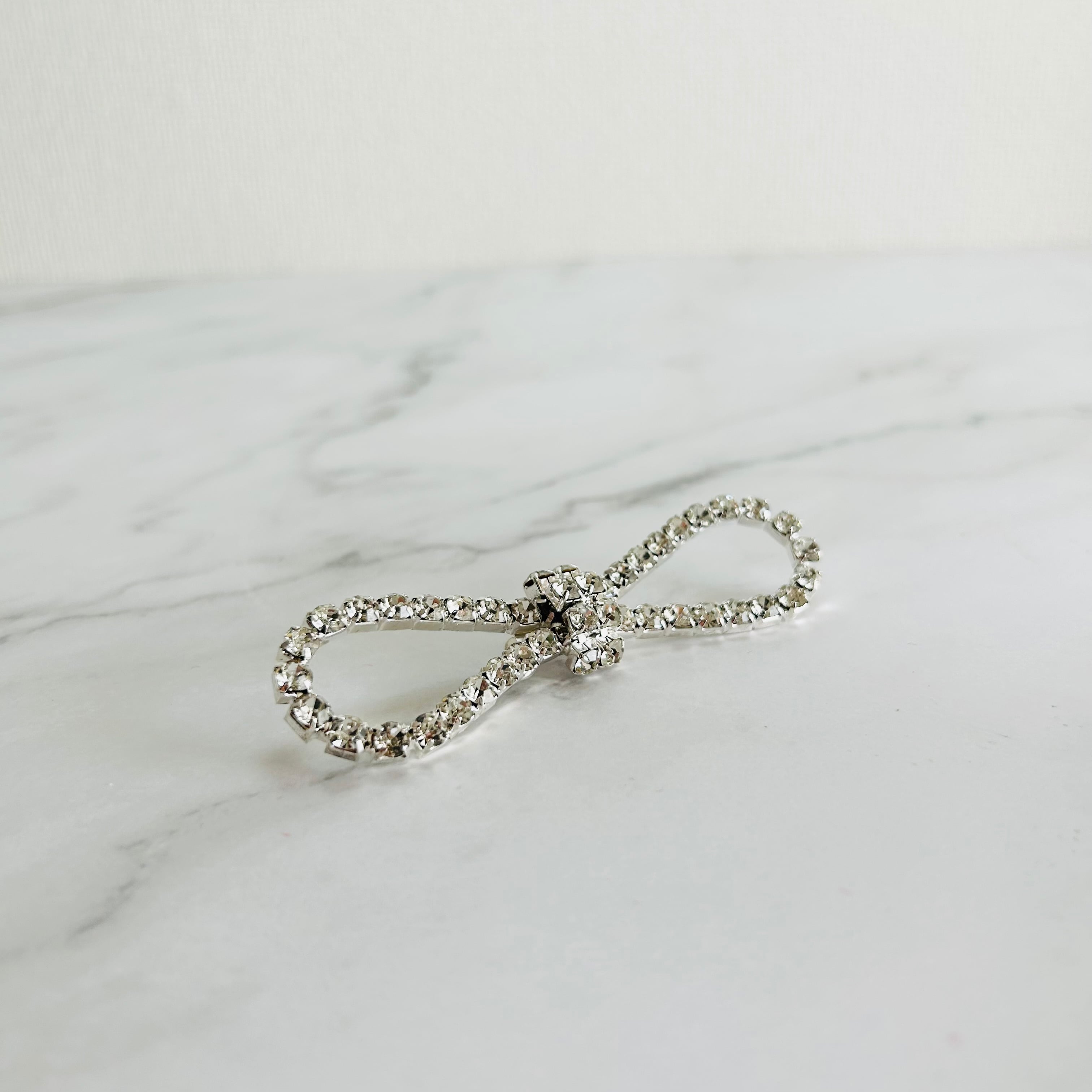 透明感のある輝きを放つクリスタルビジューをふんだんにあしらったリボンモチーフデザインです。