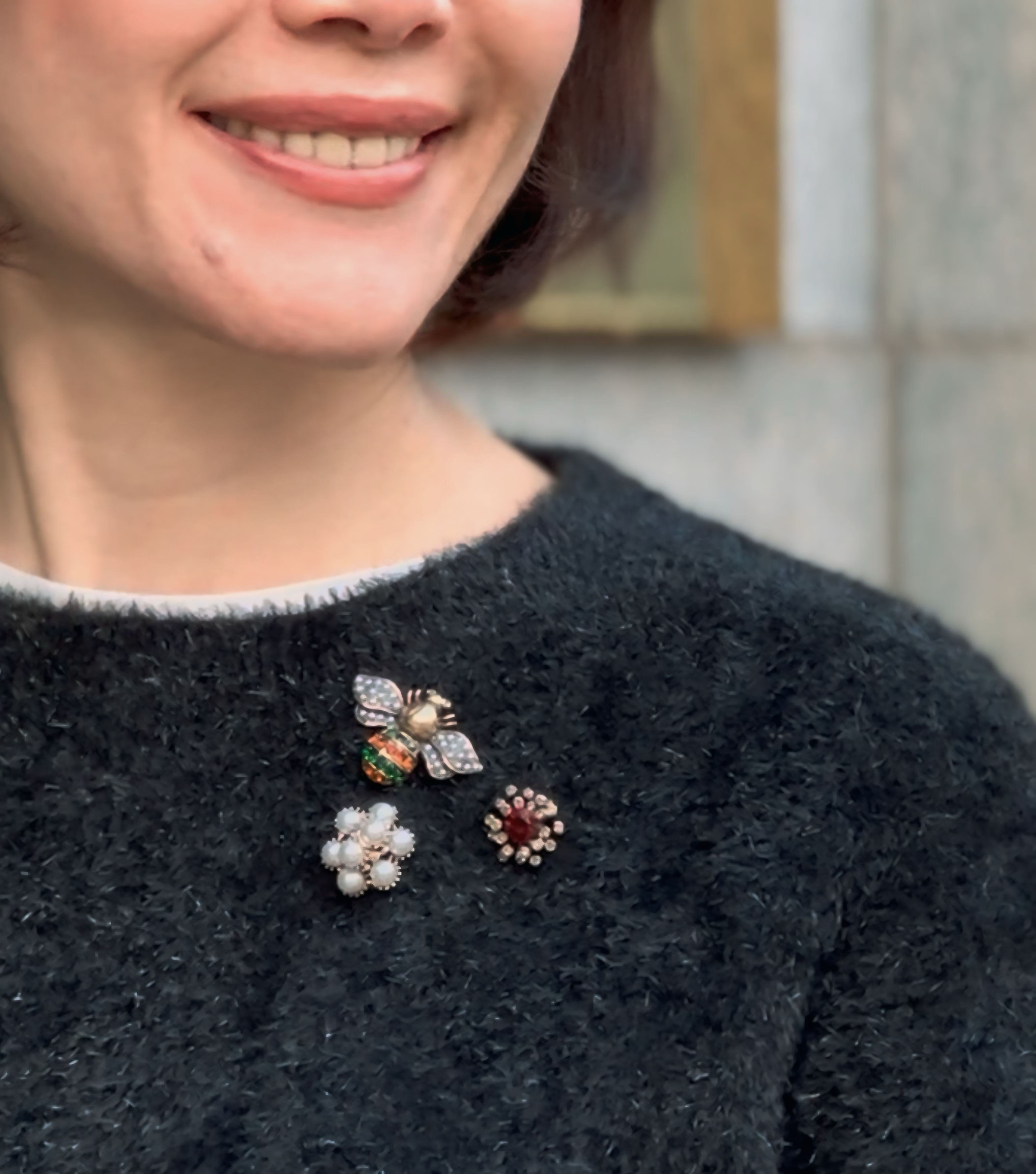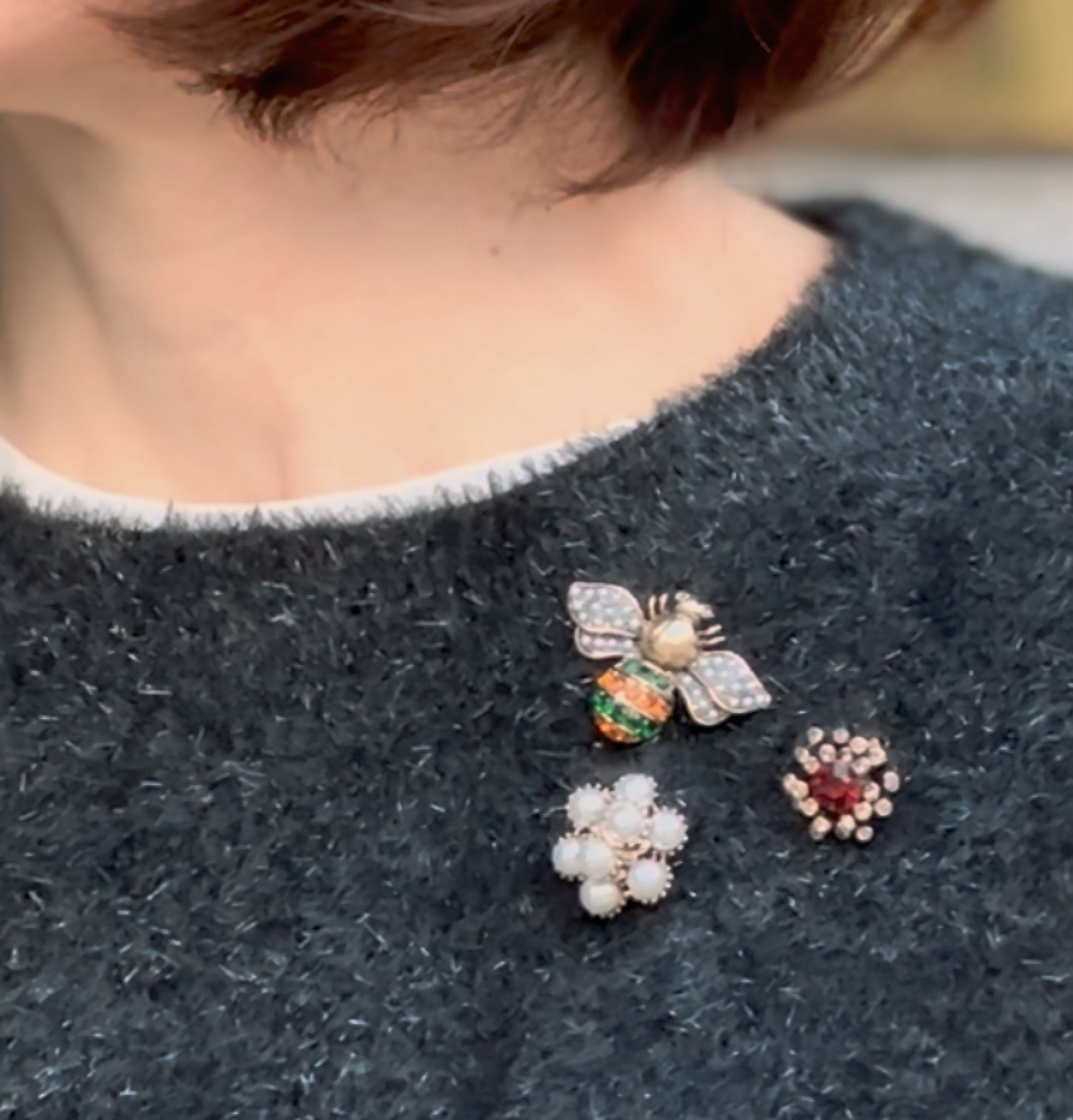 パールデザイン、蜂モチーフ、フラワーモチーフのミニサイズ、アンティーク調のブローチ達☆