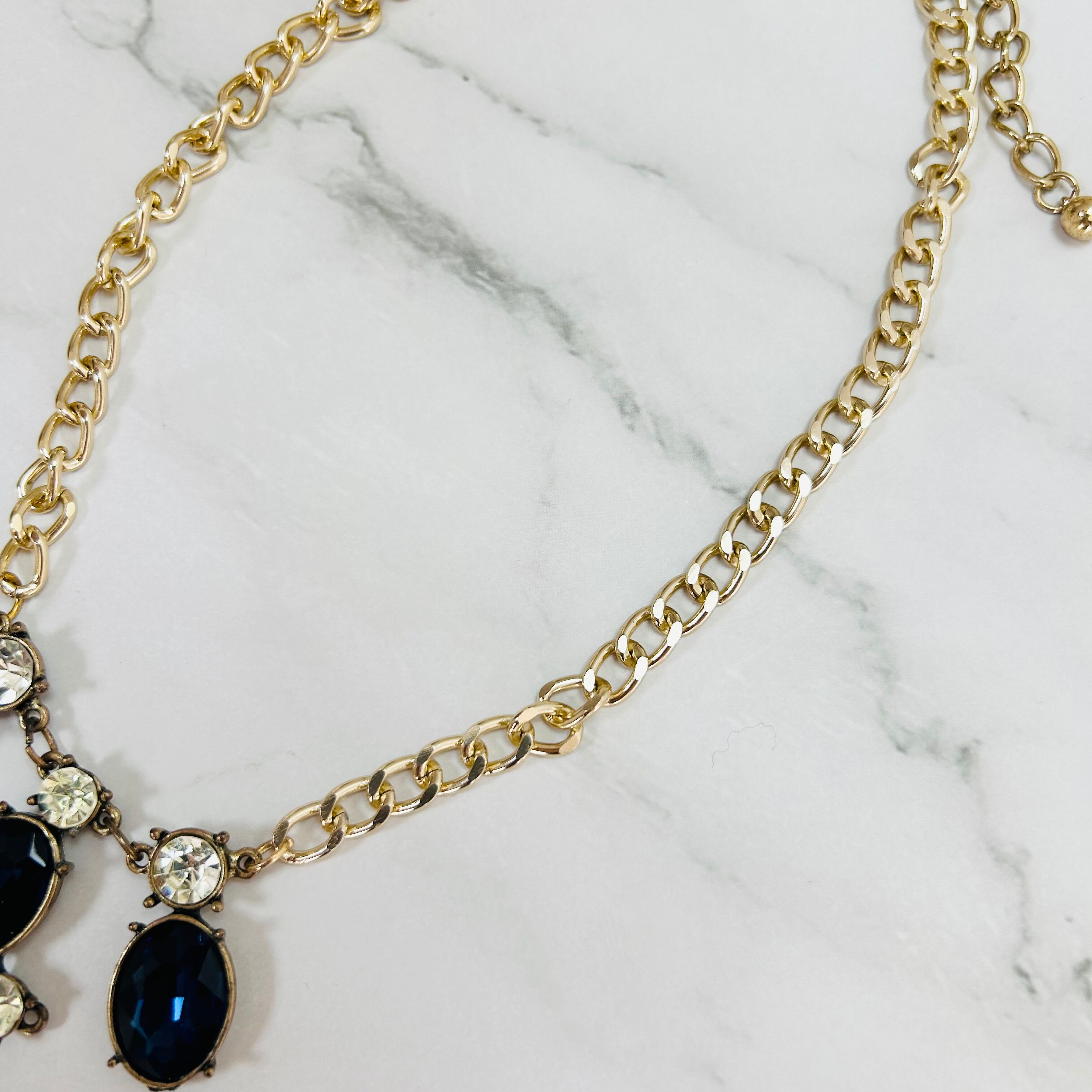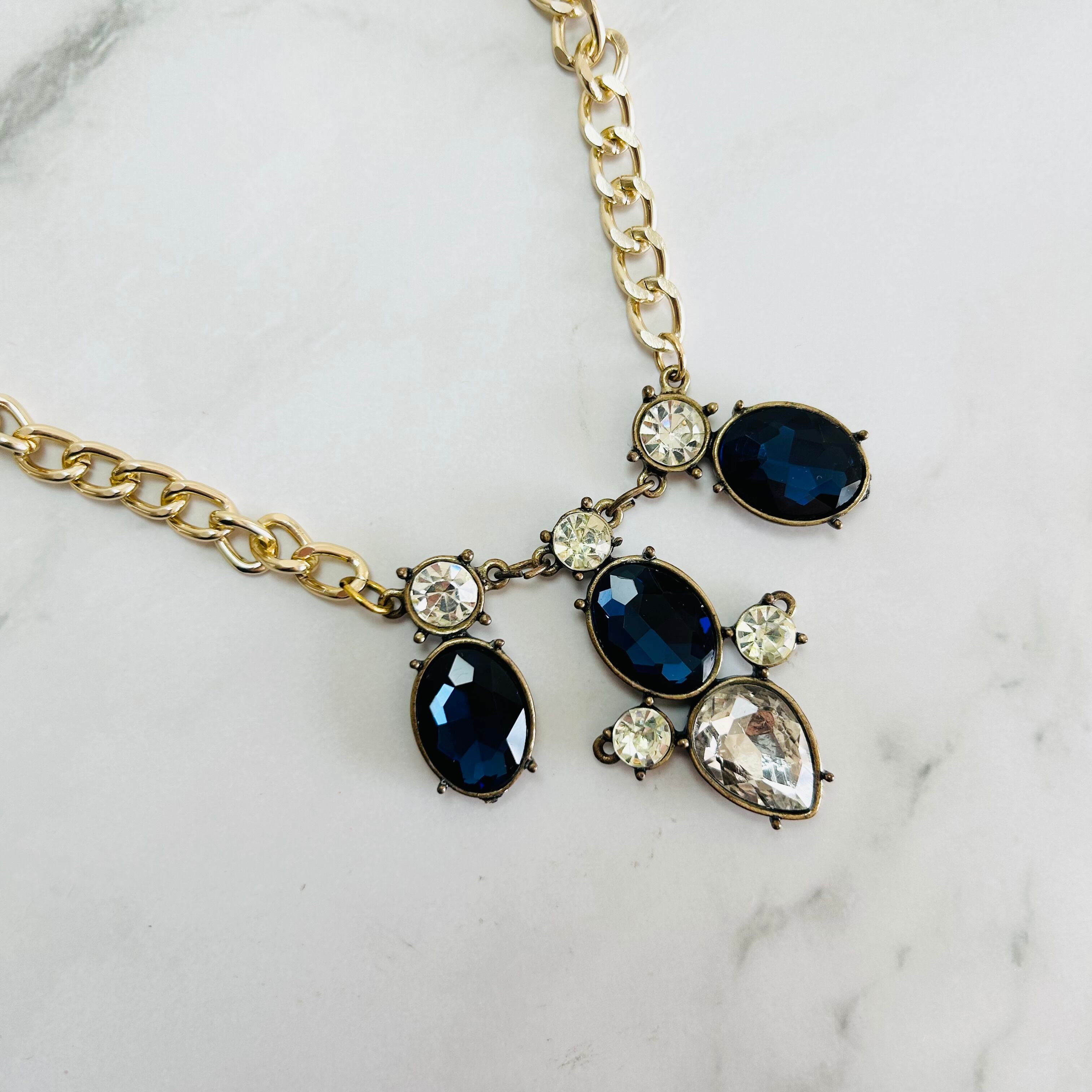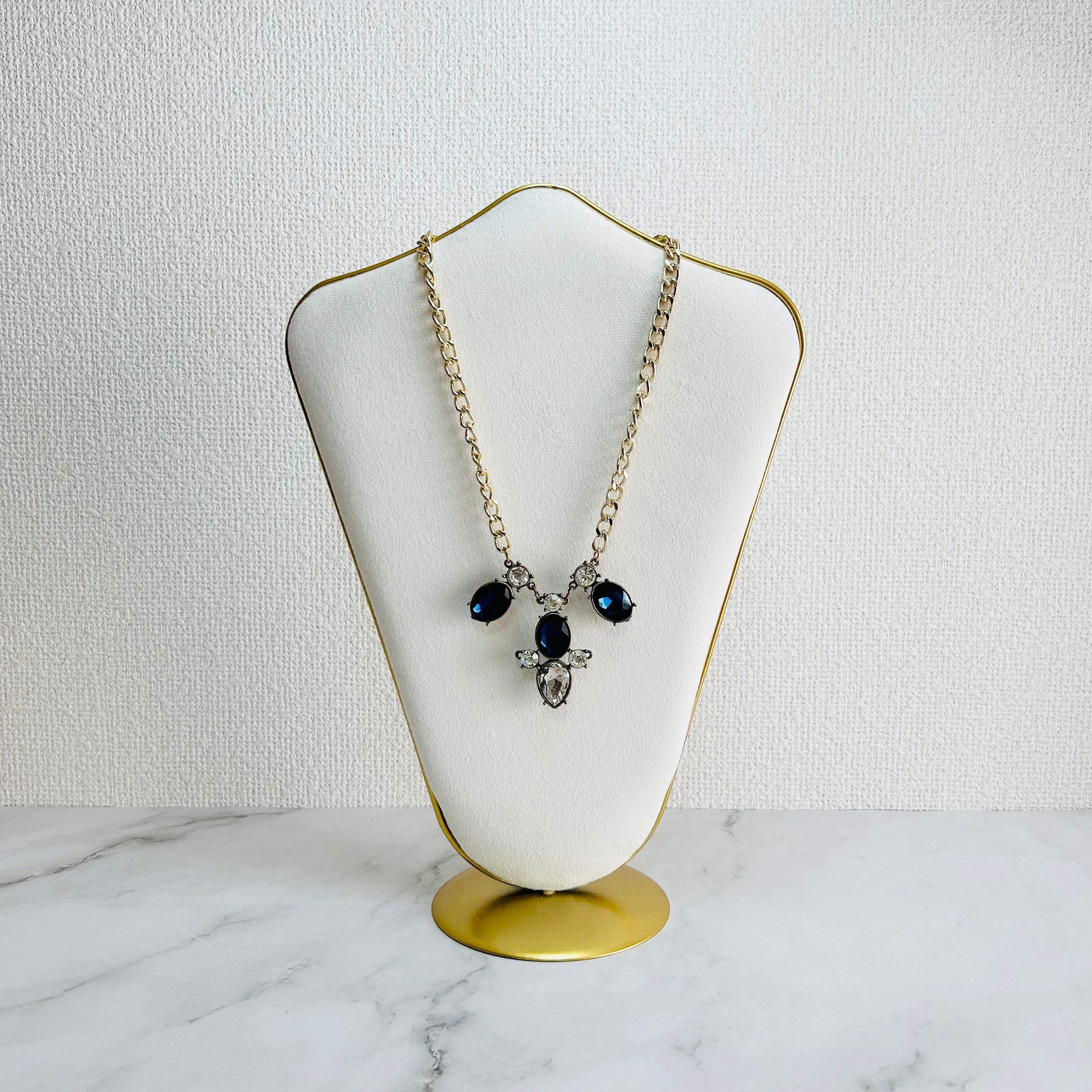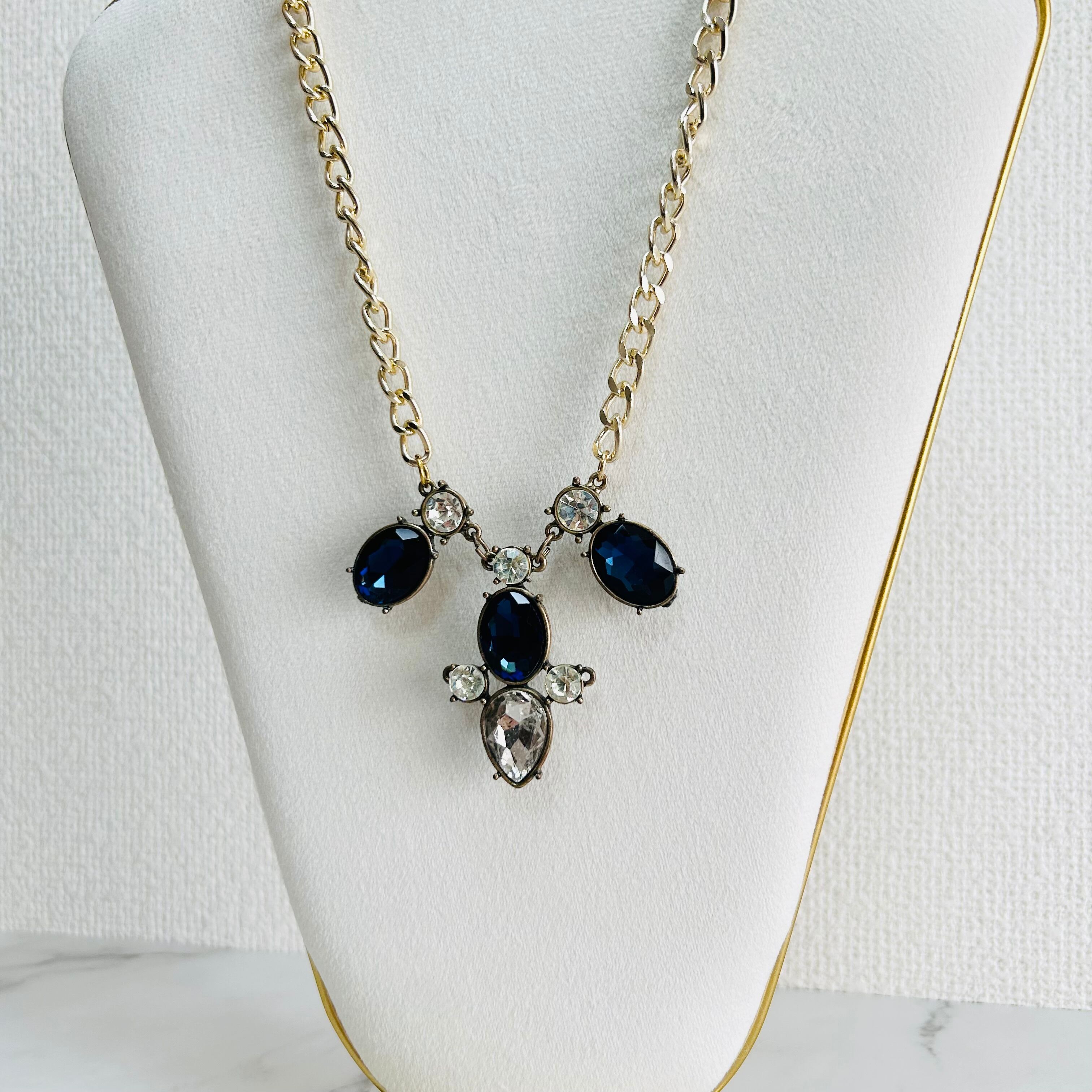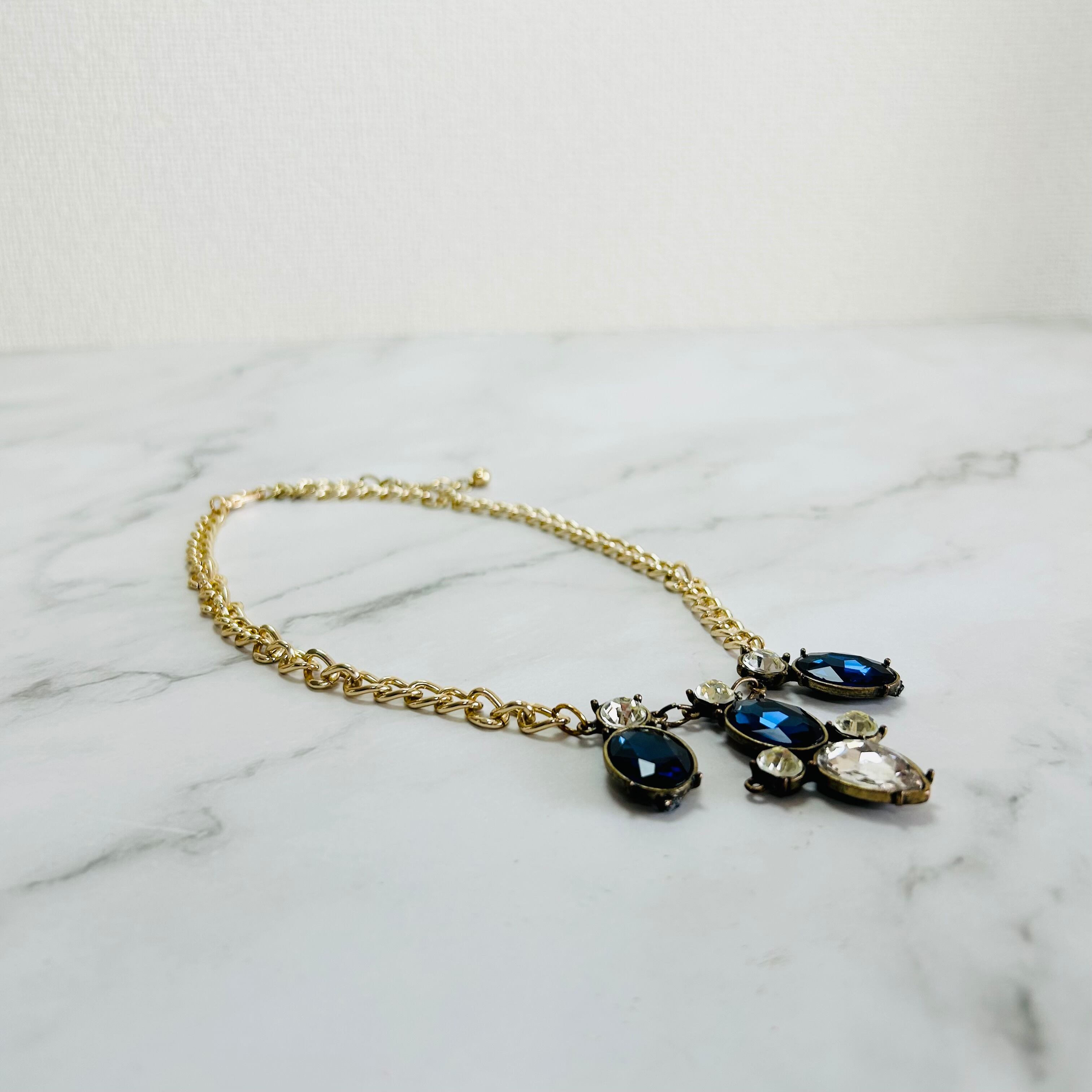ネイビーブルー、クリスタル系カラー✖️アンティークゴールドカラーのネックレスです。