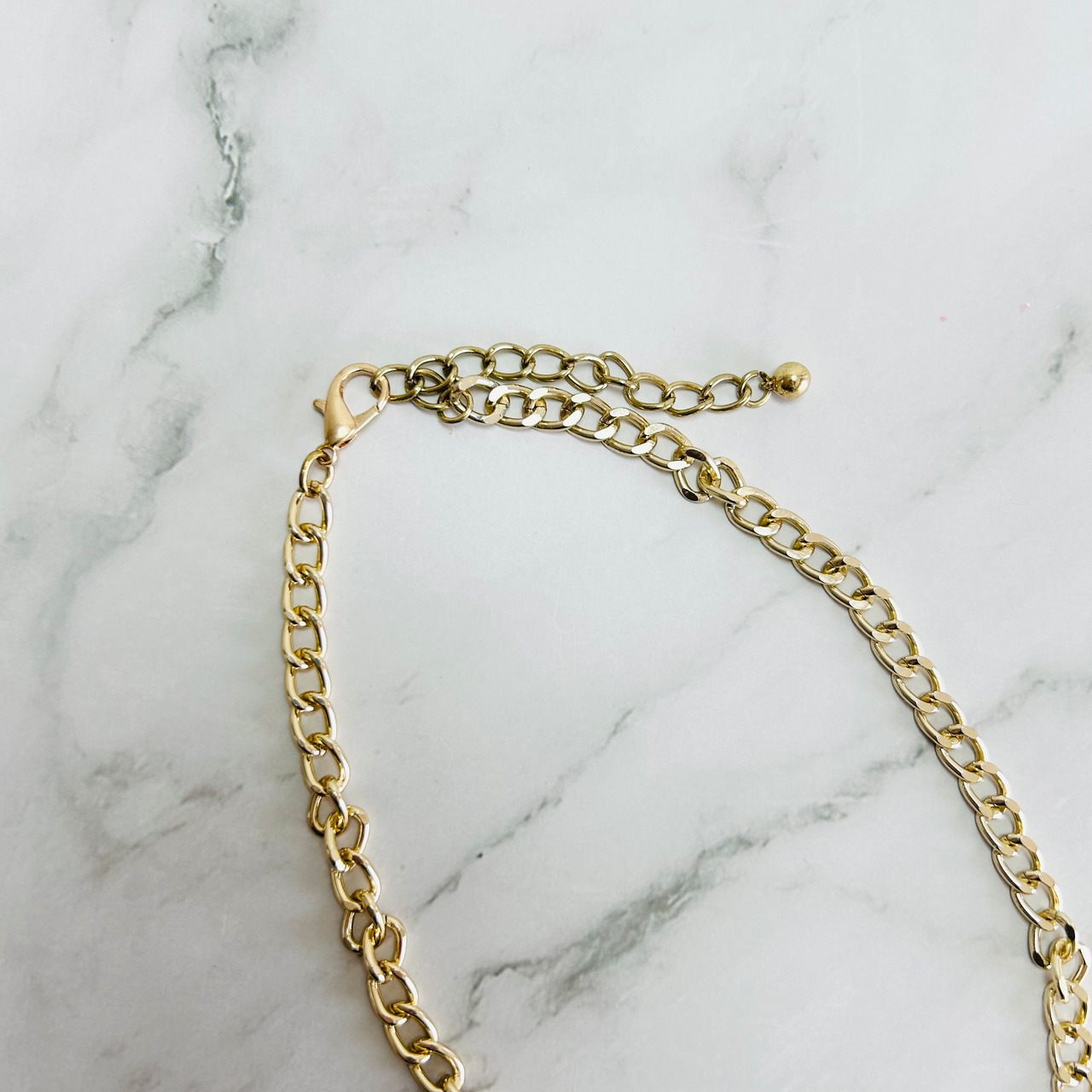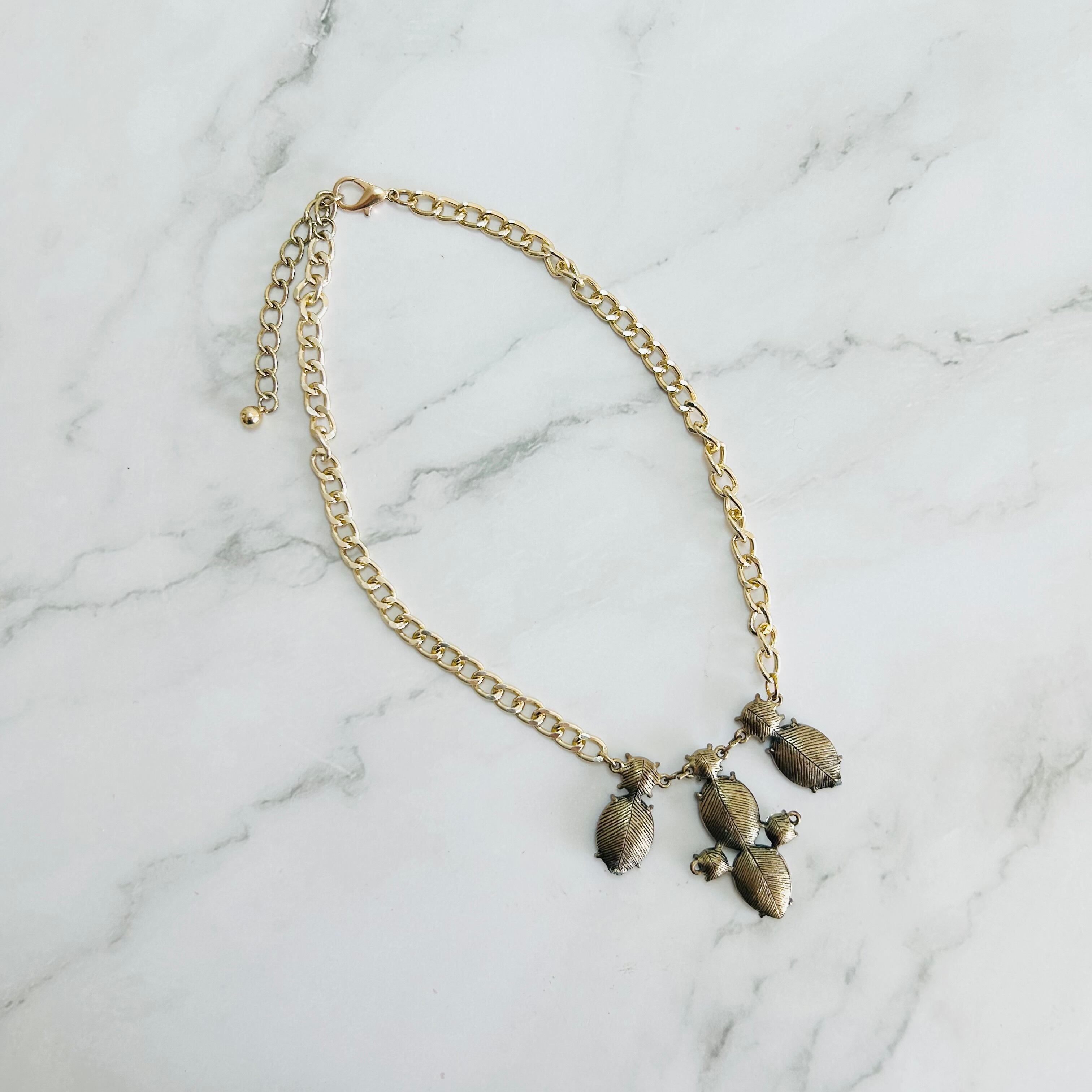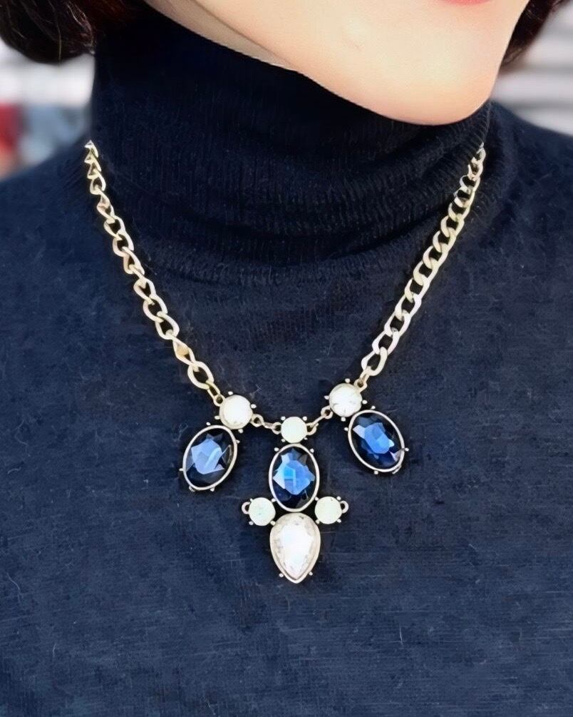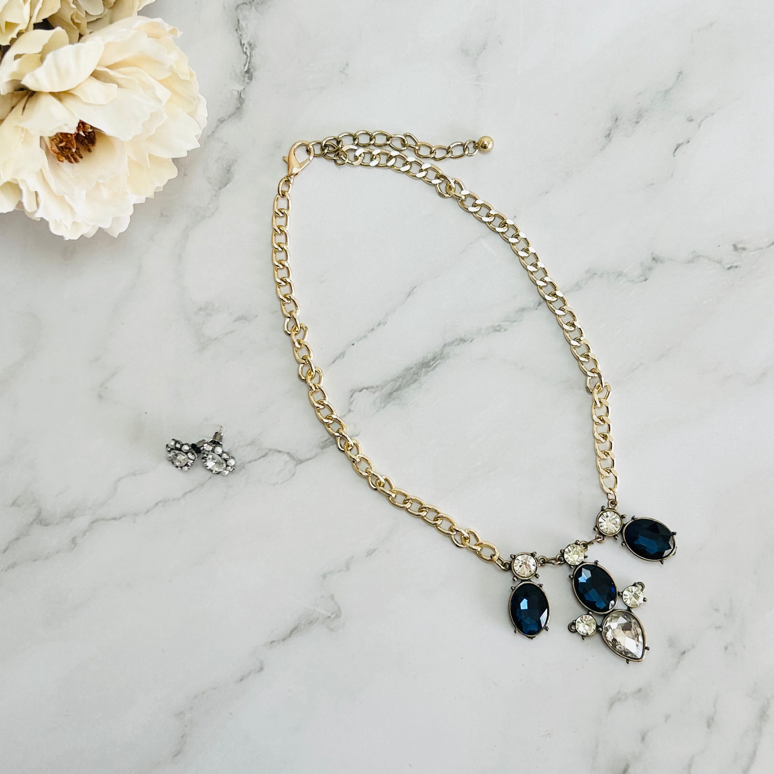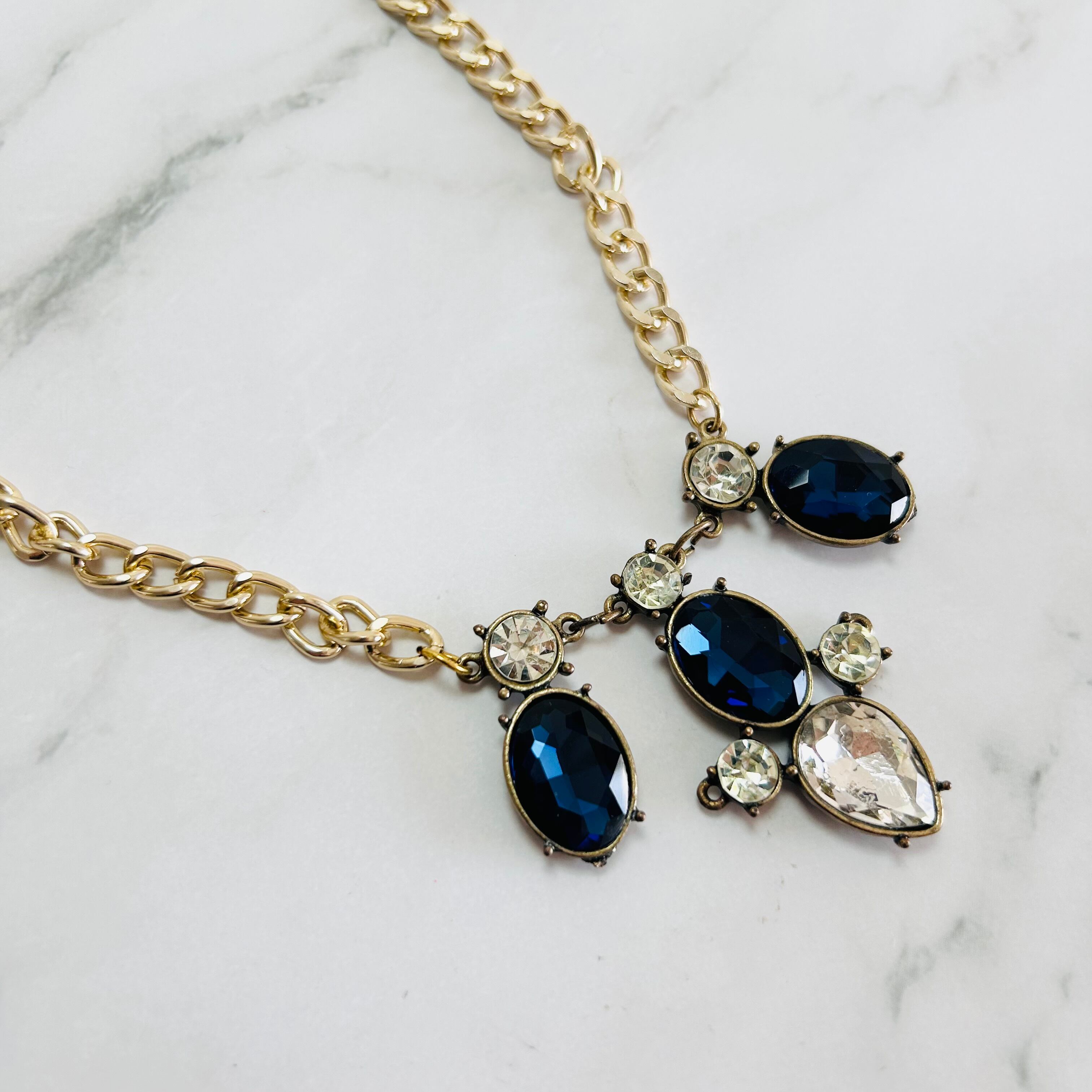 ネイビーブルー、クリスタル系カラー✖️アンティークゴールドカラーのネックレスです。