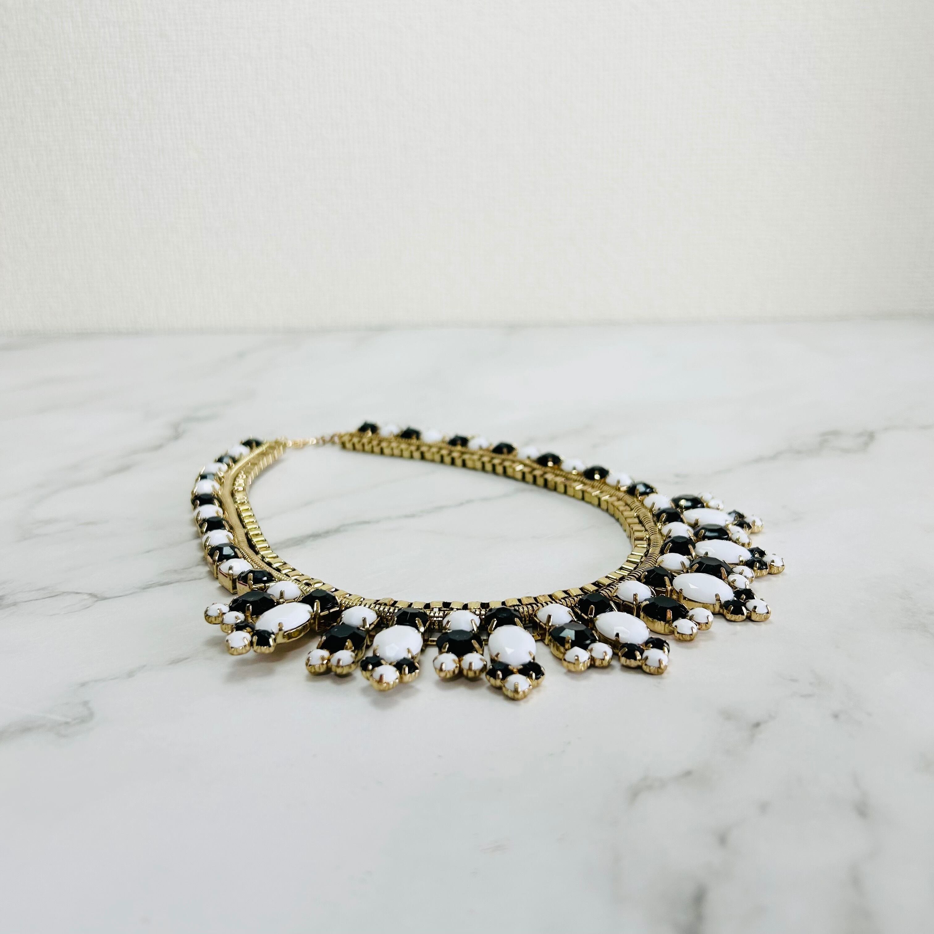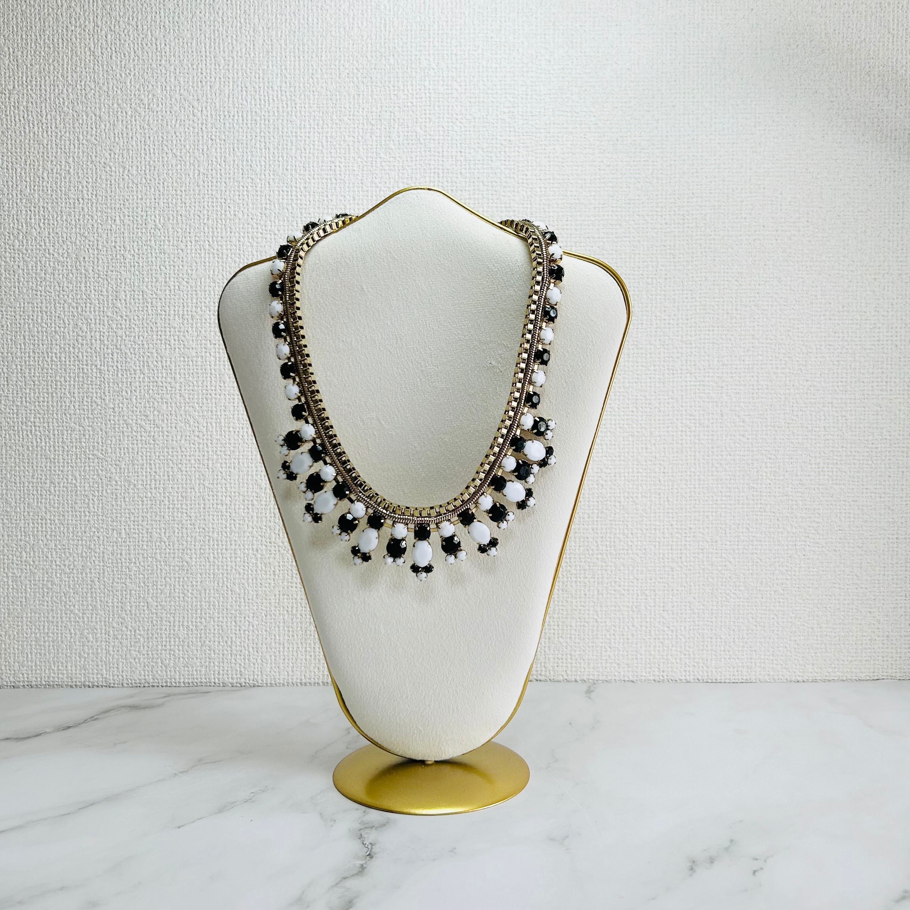 ホワイト、ブラック✖️アンティークゴールドカラーのネックレスです。
