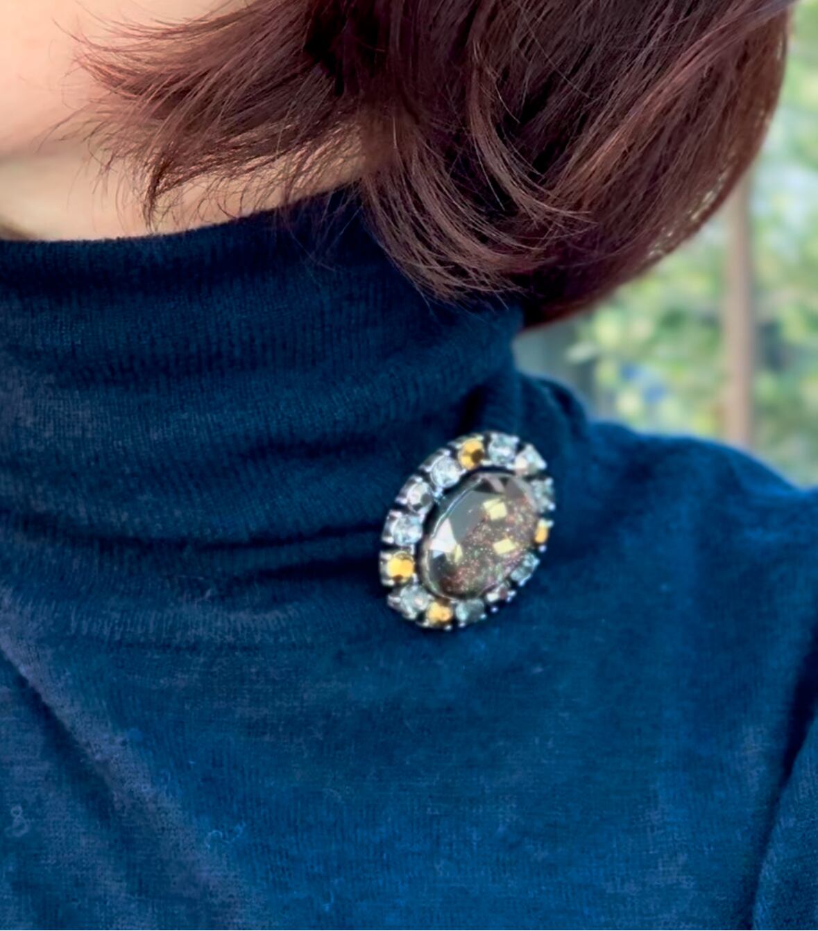 ストールを巻いた首もとや、カーディガンの襟元一つにつけただけでも、お洋服に立体感が生まれて、華やかさが格段にアップ!