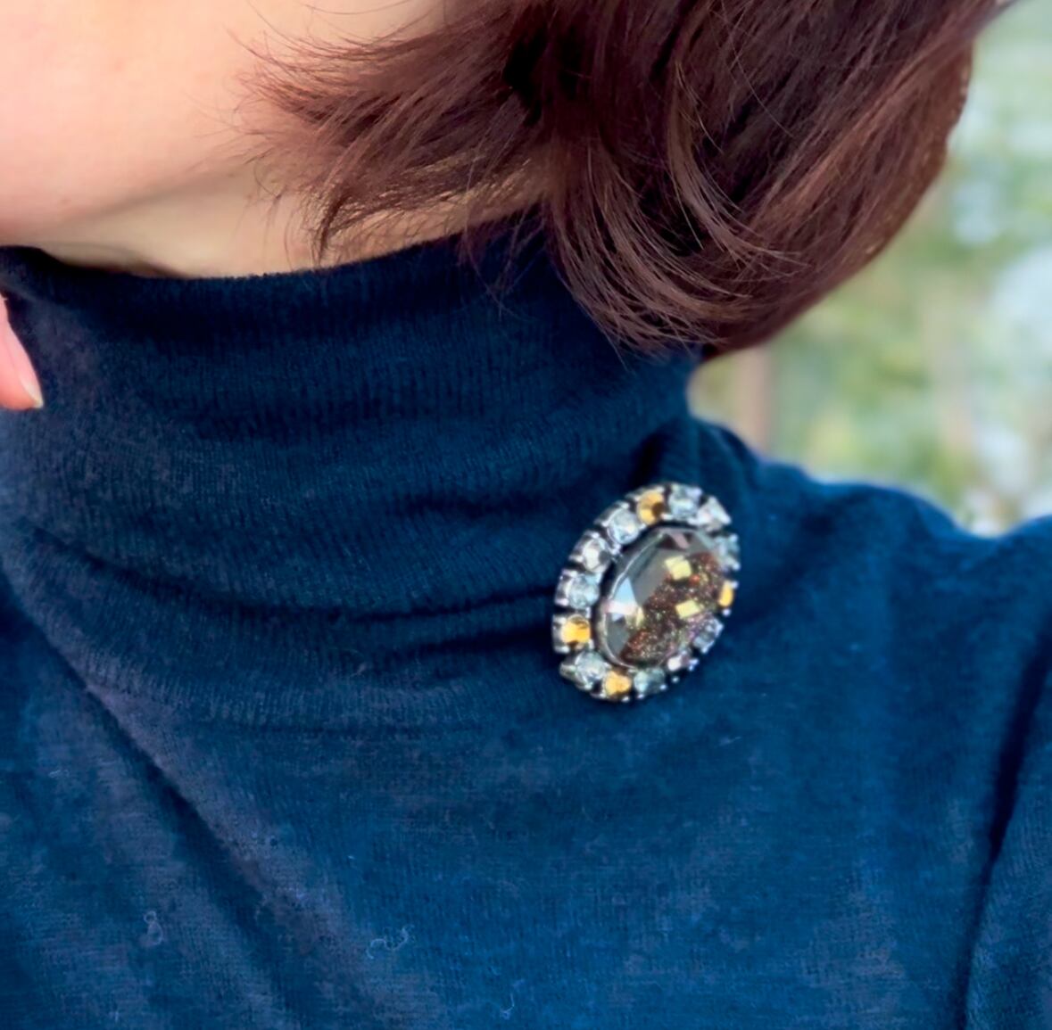 マルチカラー✖️アンティークシルバーカラーのブローチです。