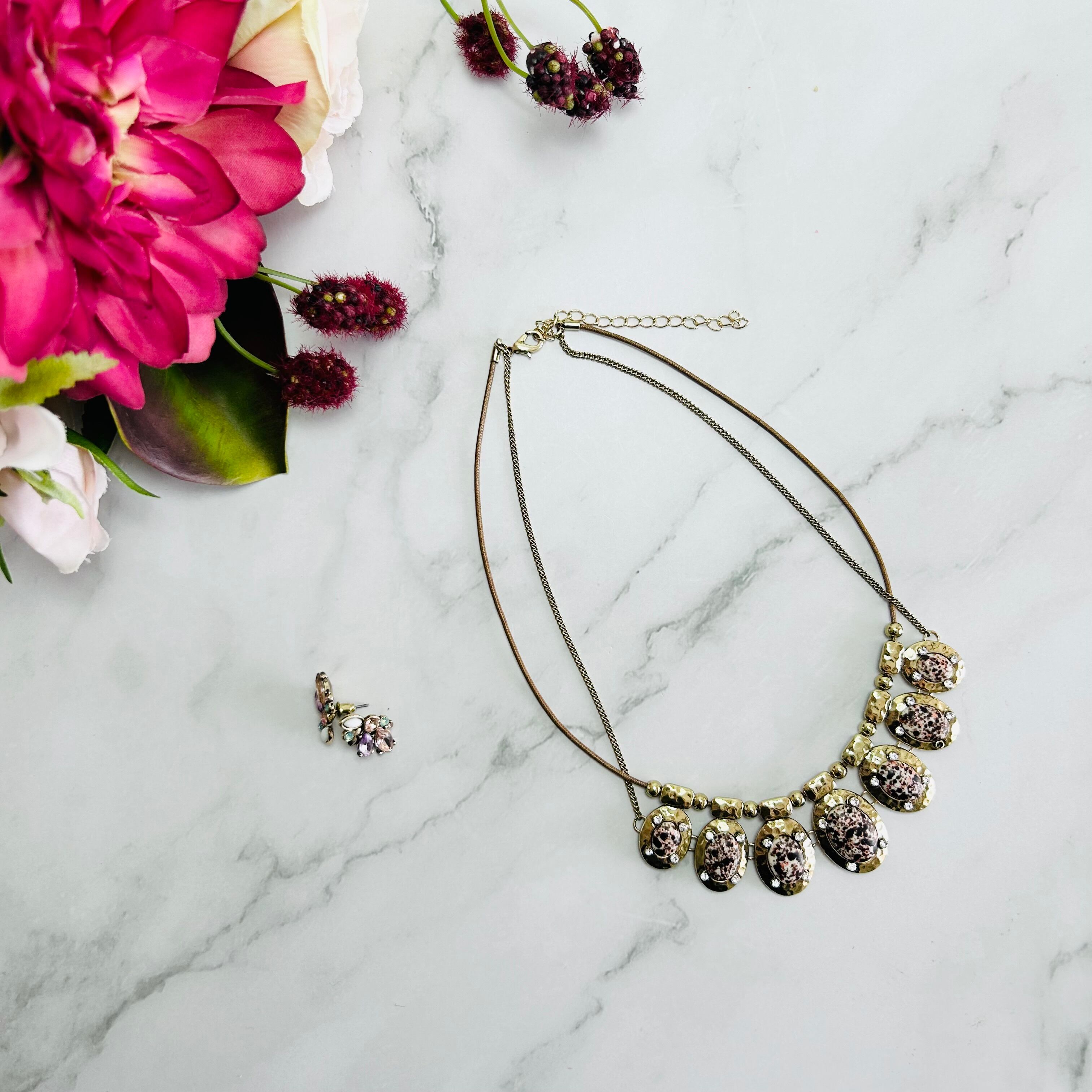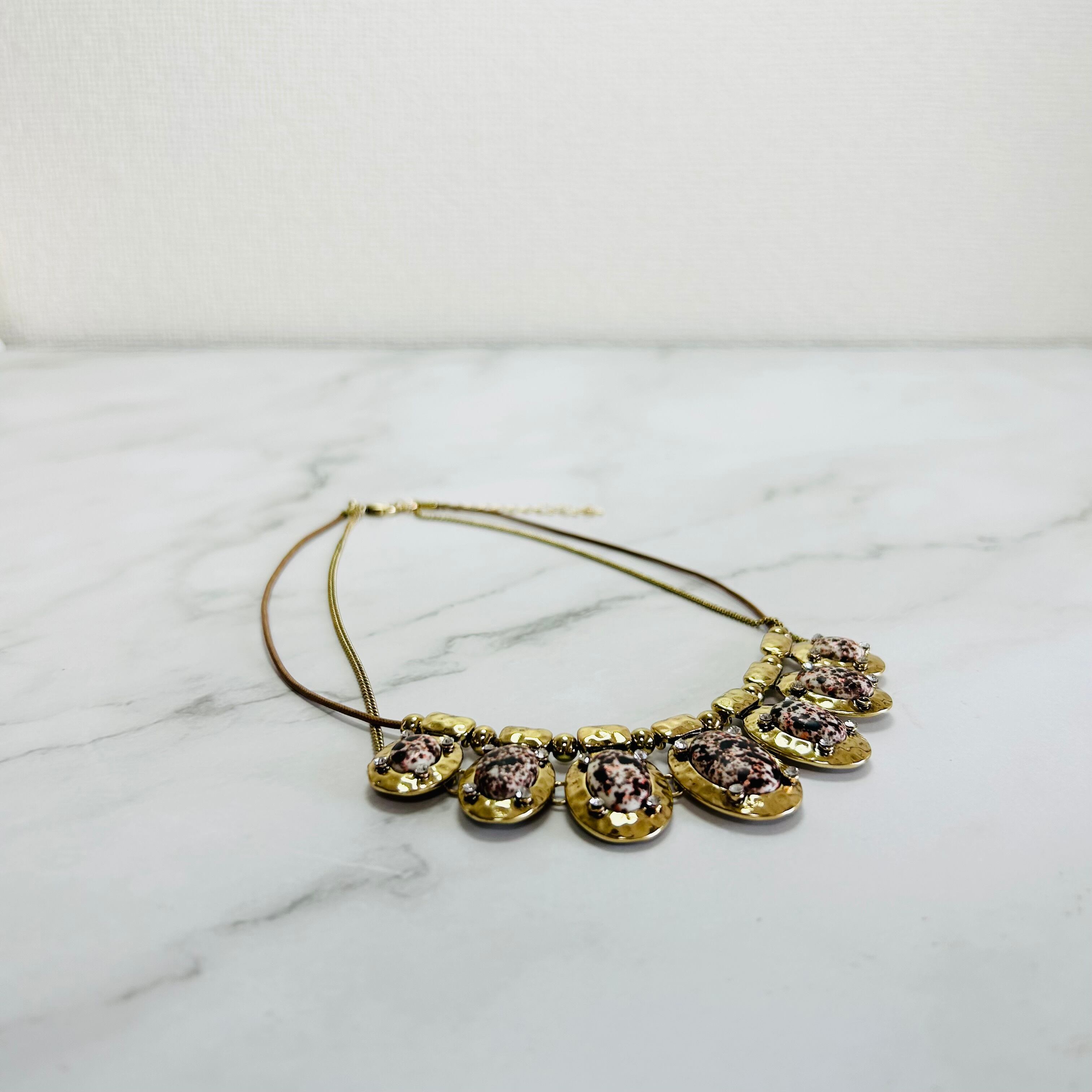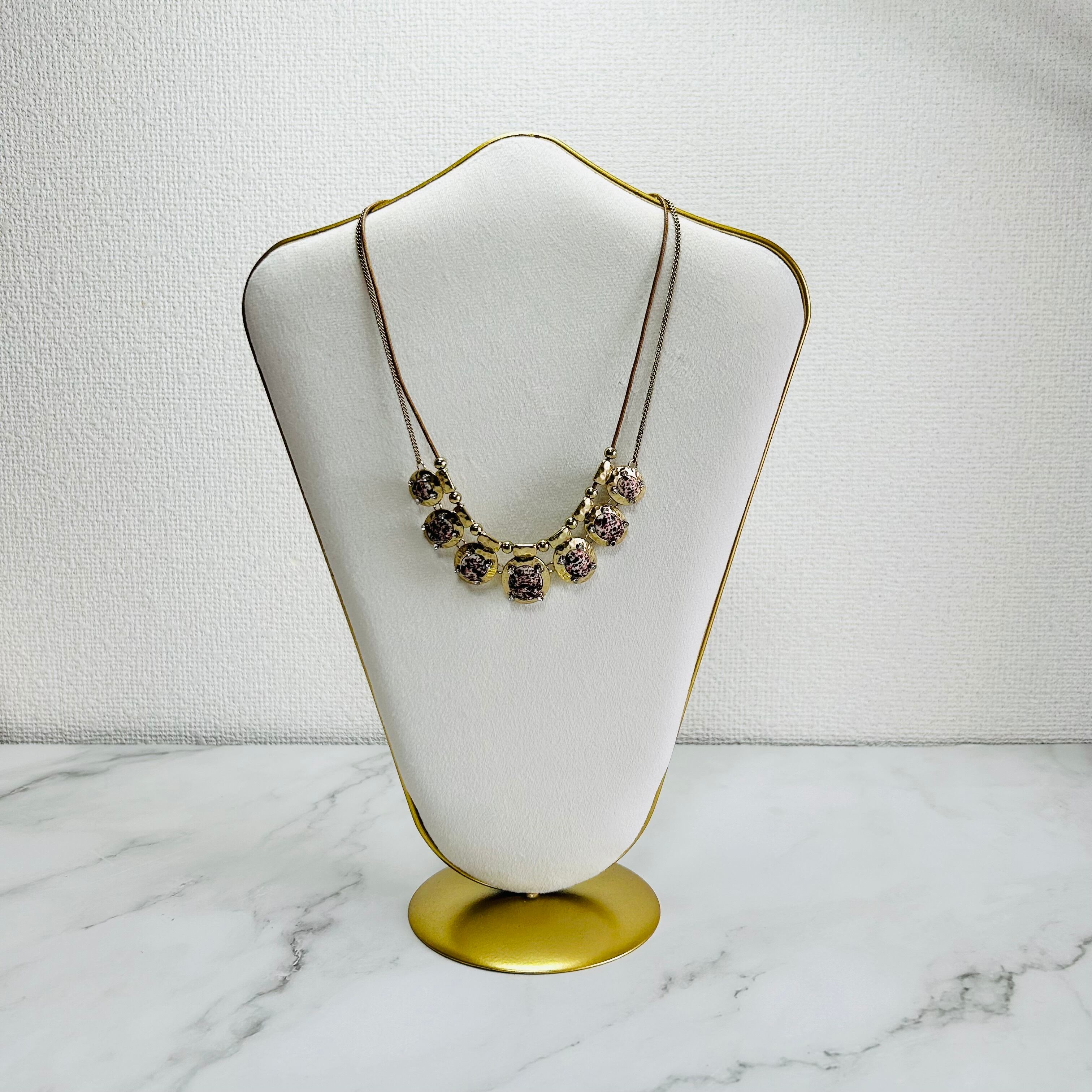 ピンク、ブラウン、クリスタルカラー✖️アンティークゴールドカラーのネックレスです。