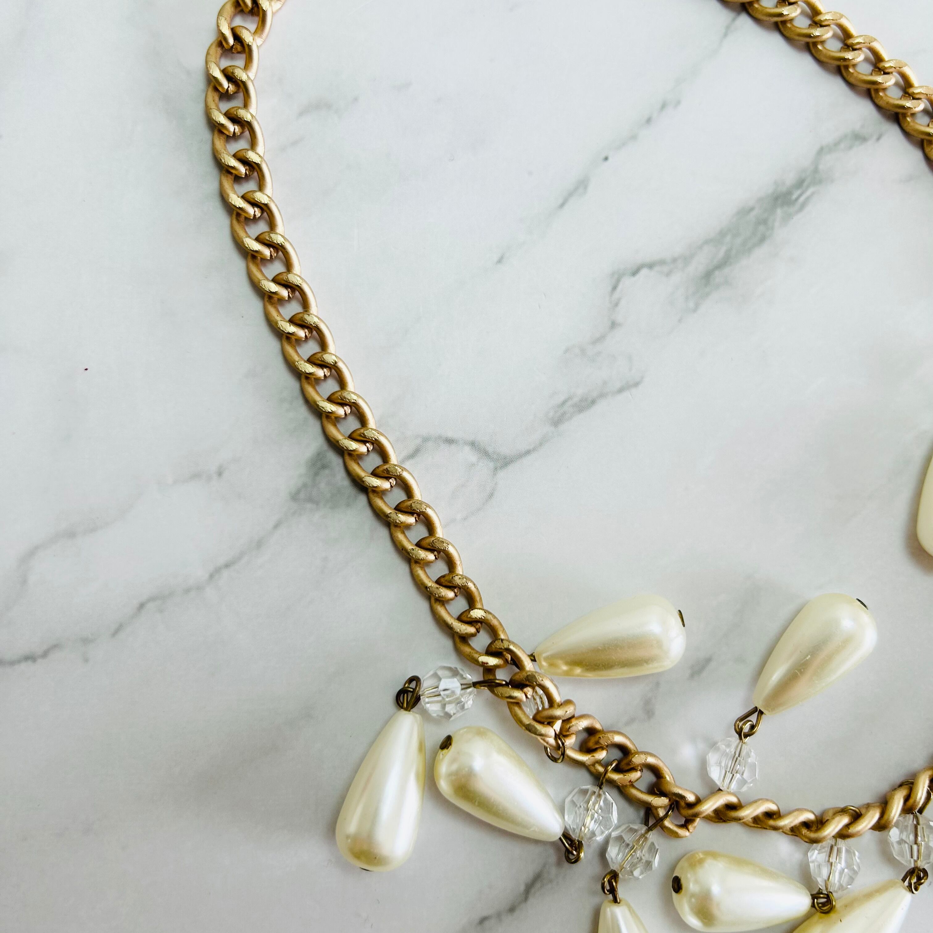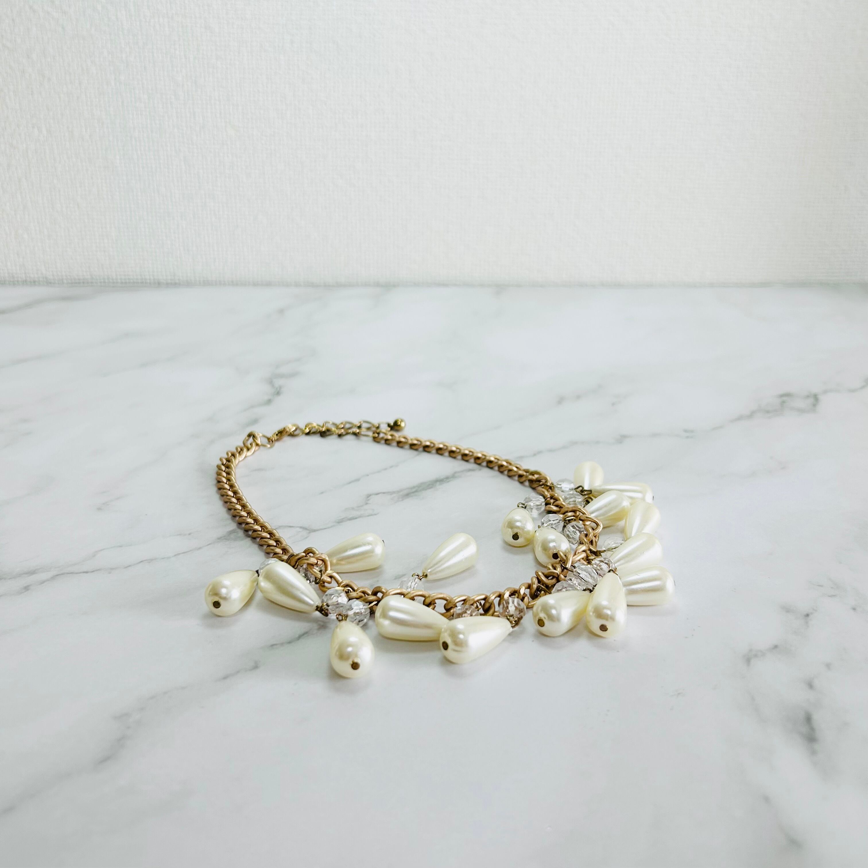 パール、クリスタルカラー✖️アンティークゴールドカラーネックレスです。