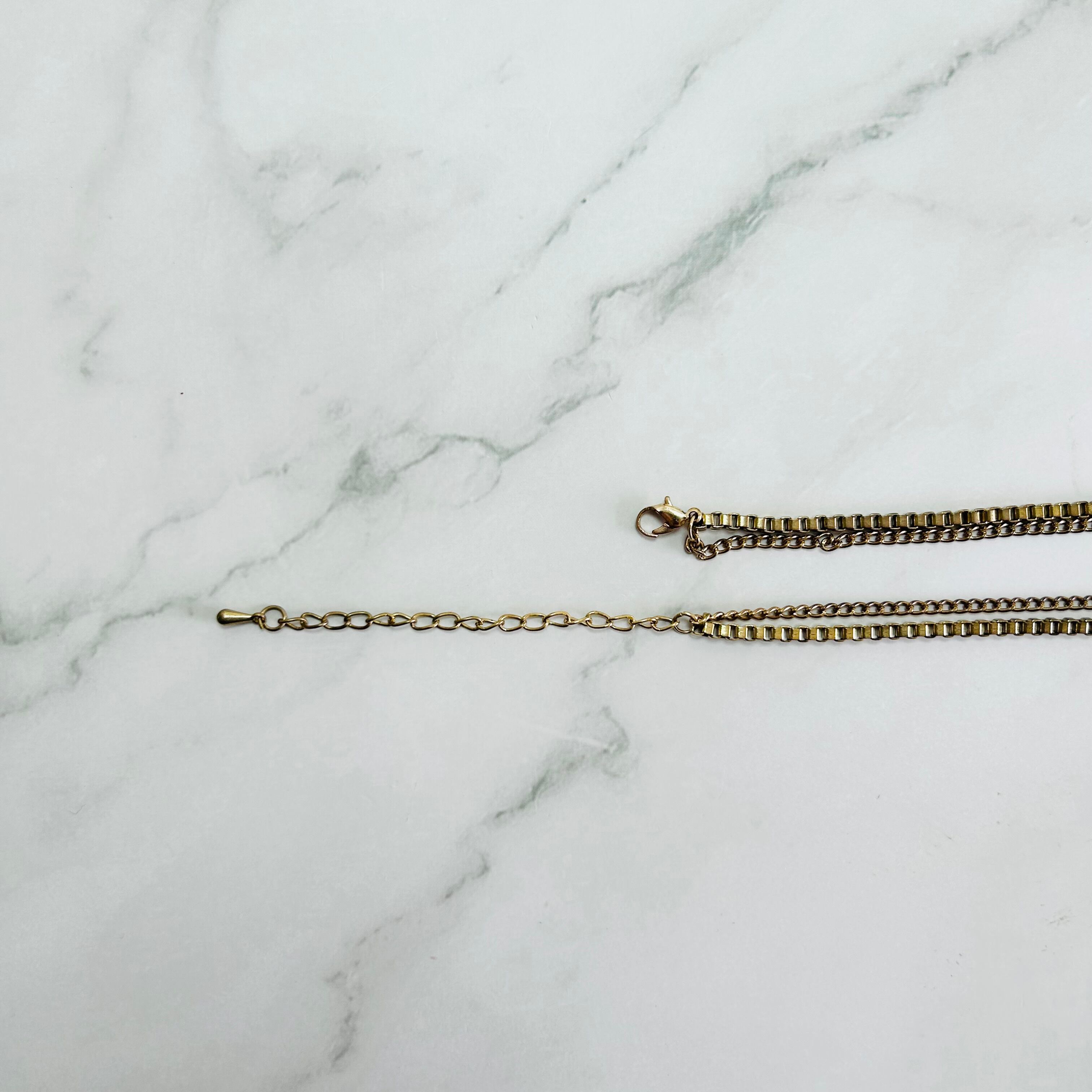 ブルー系✖️アンティークゴールドカラーのネックレスです。