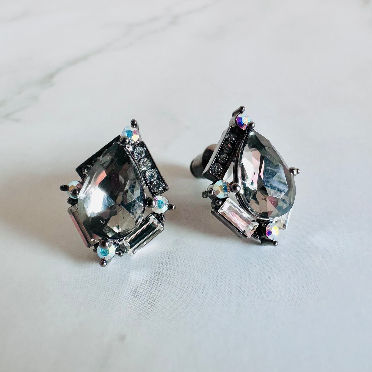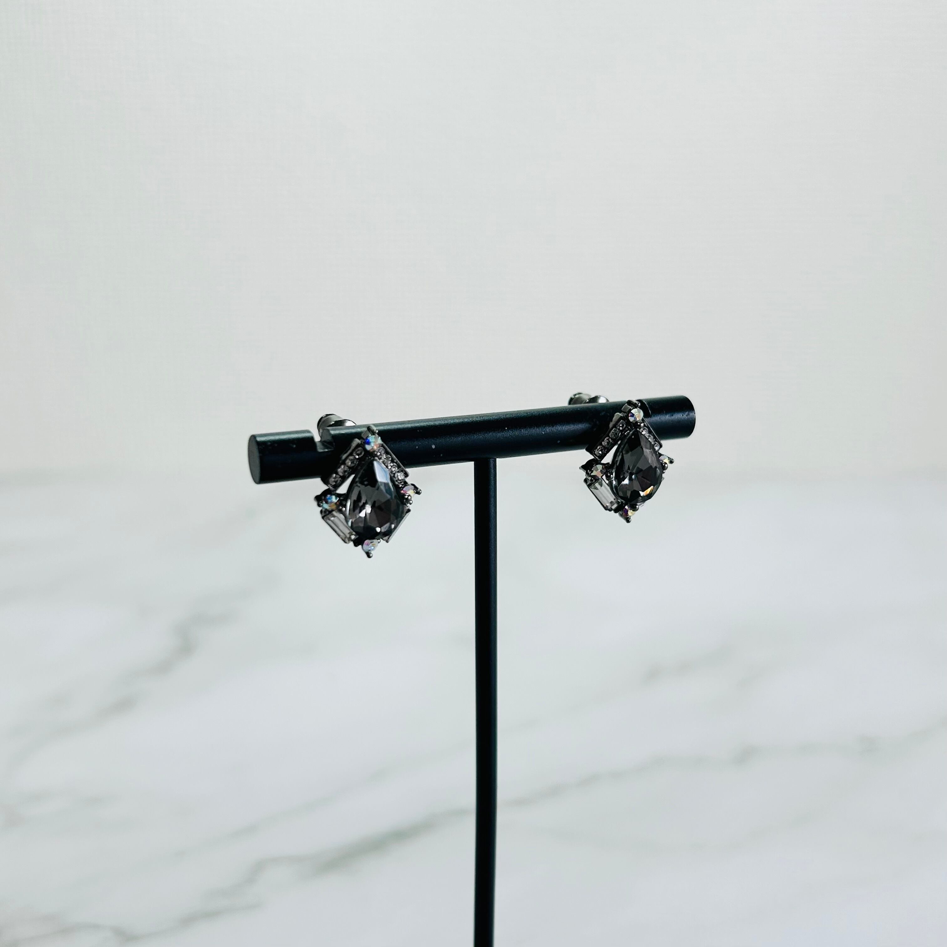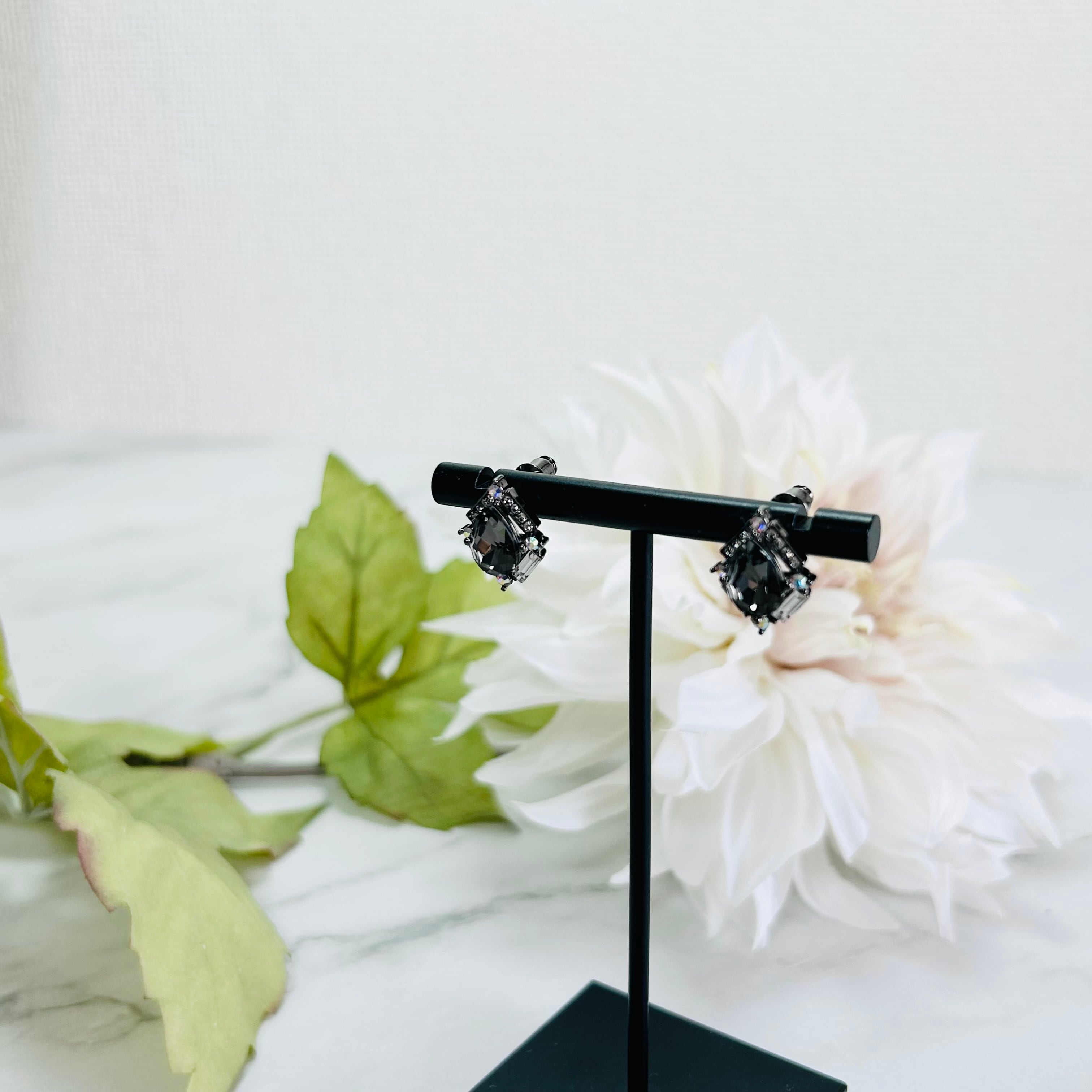 グレイッシュなスワロフスキークリスタルとシルバー925ポストを使用し、高級感のある美しい輝きが魅力のピアスです。