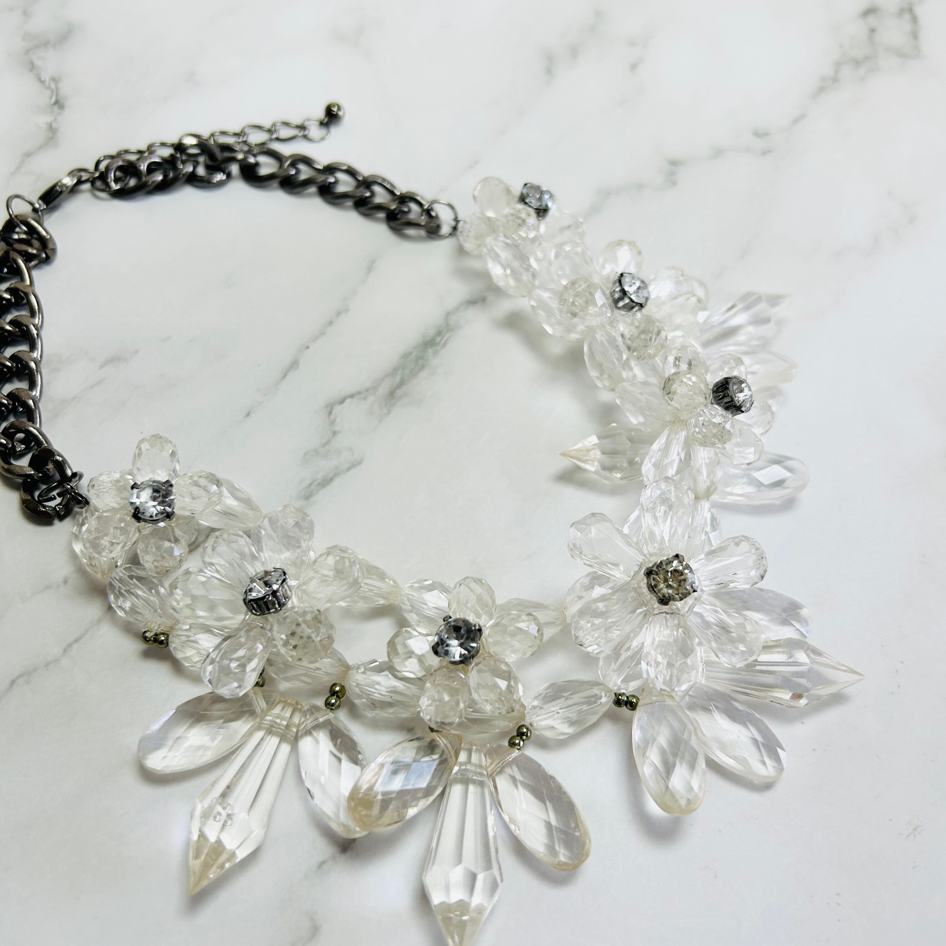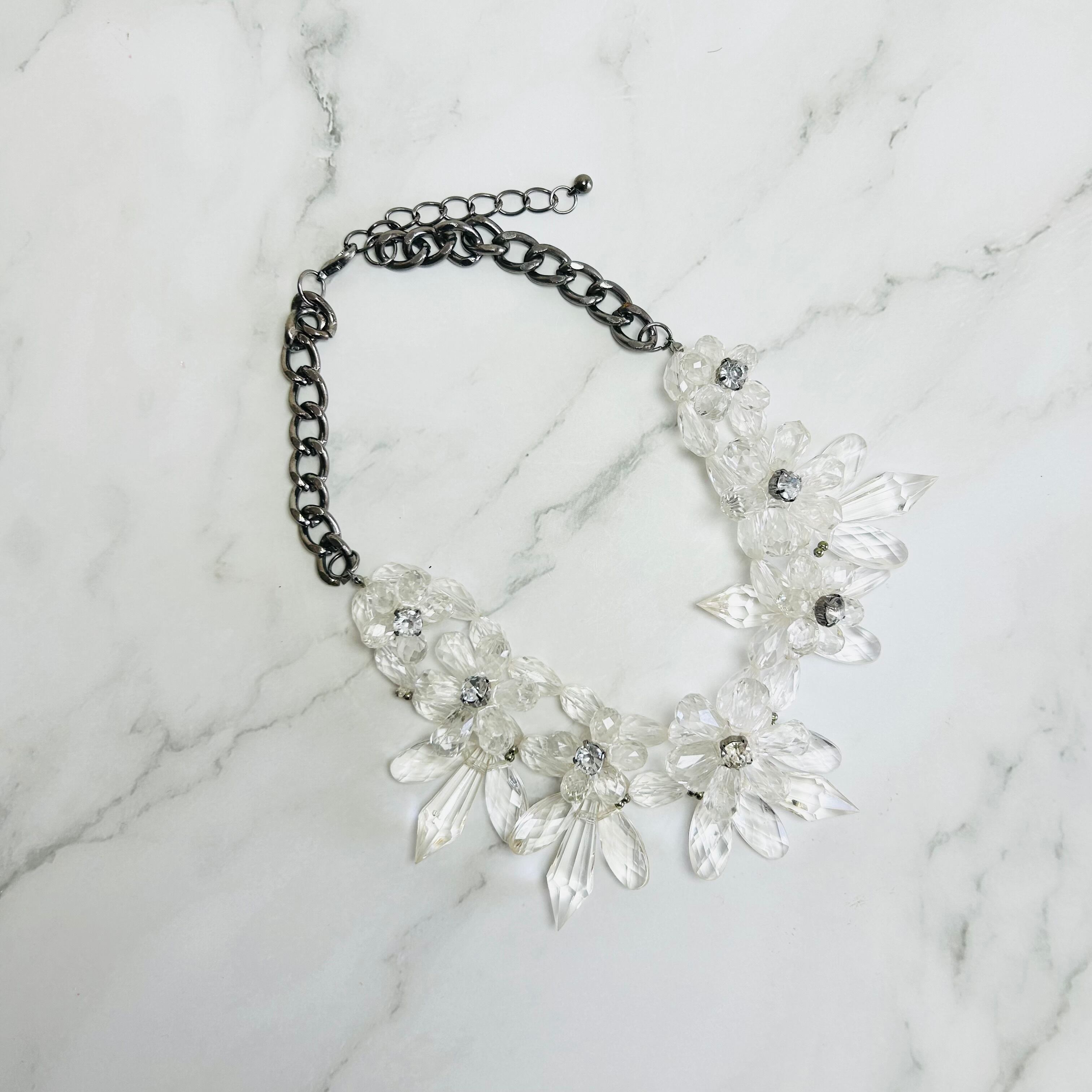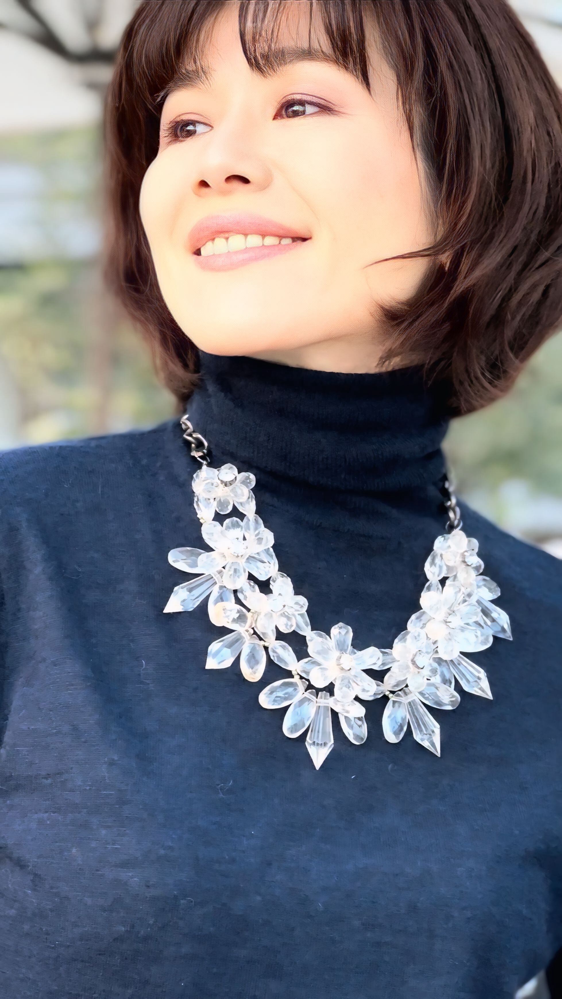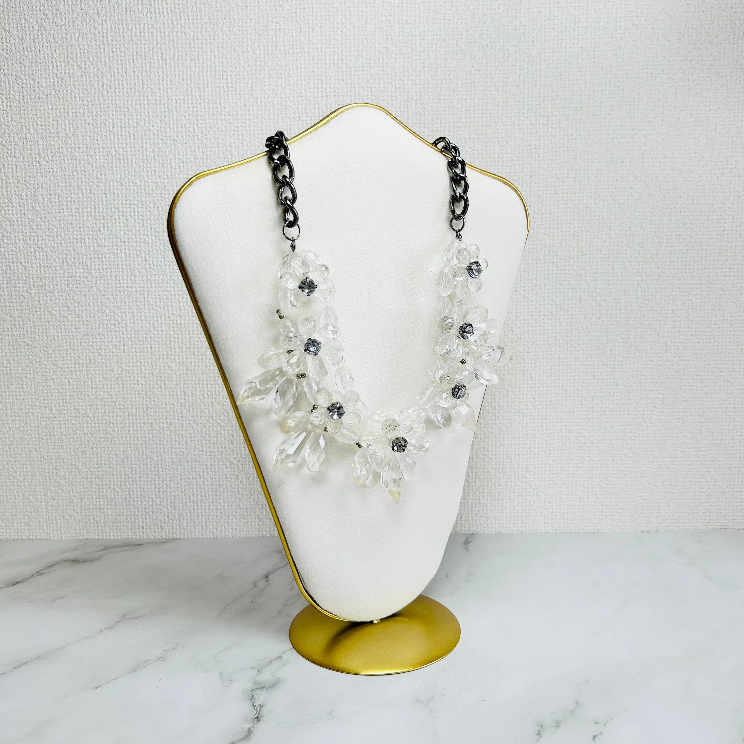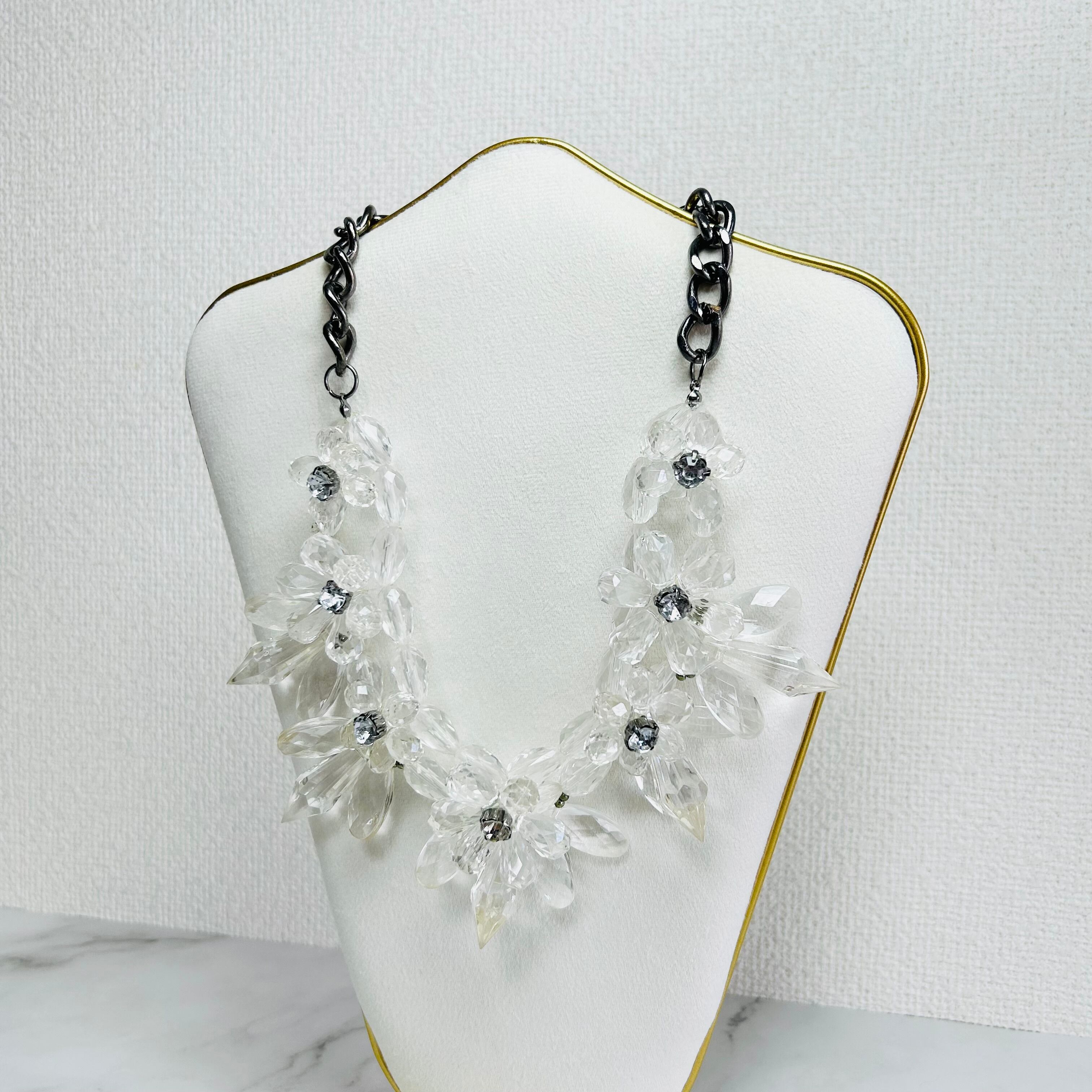 クリア、クリスタル✖️ブラックメタルカラーのネックレスです。