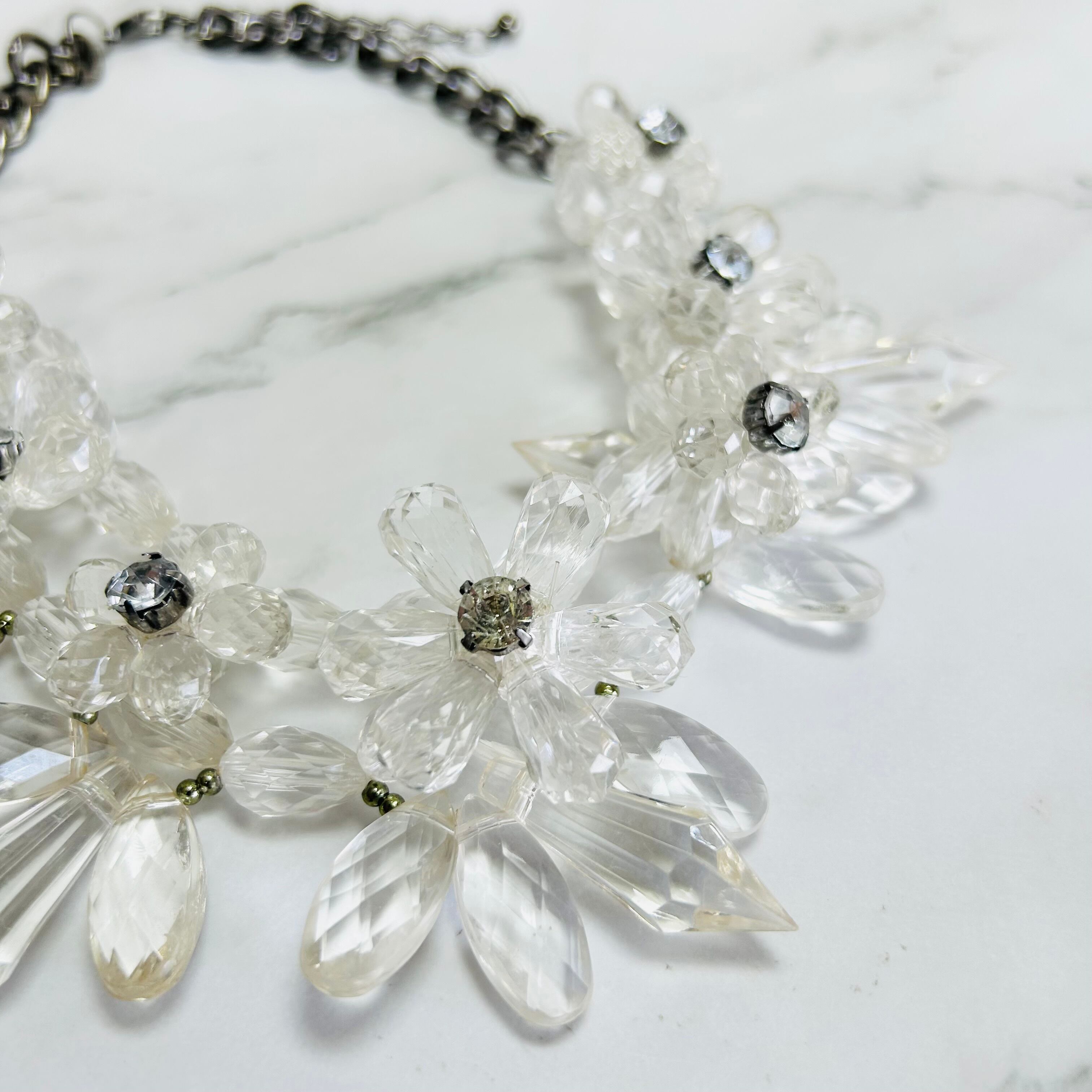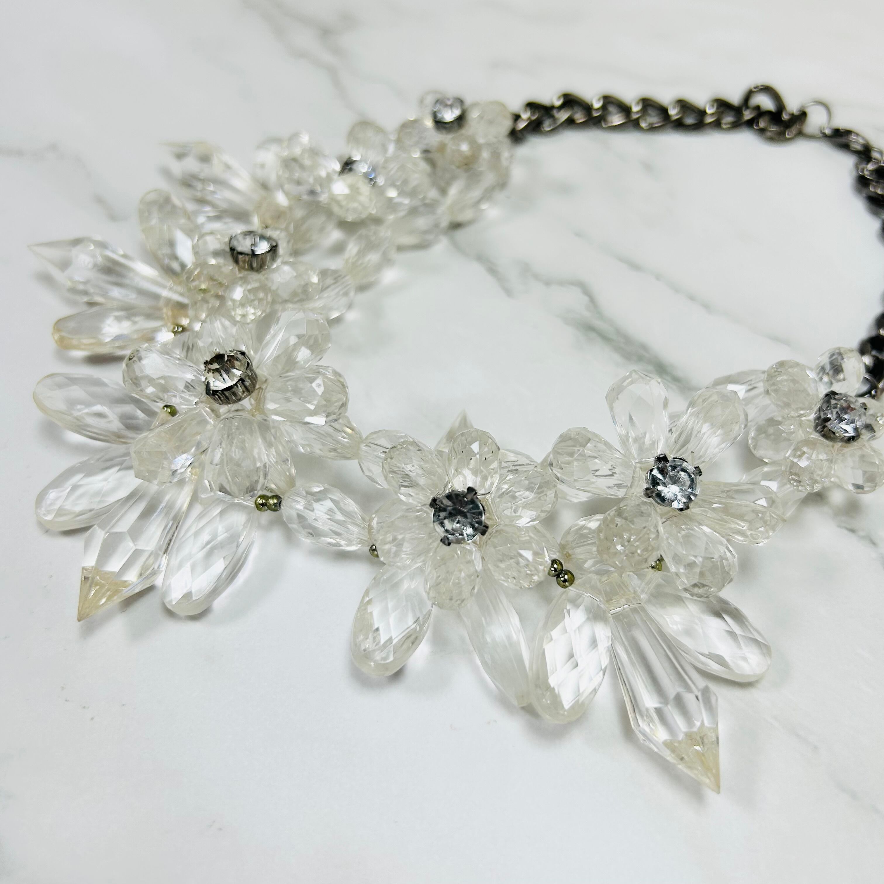 クリスタルカットされた大ぶりのアクリルパーツを組み合わせたフラワーモチーフをまるでシャンデリアのような華やかなデザインに仕上げました。